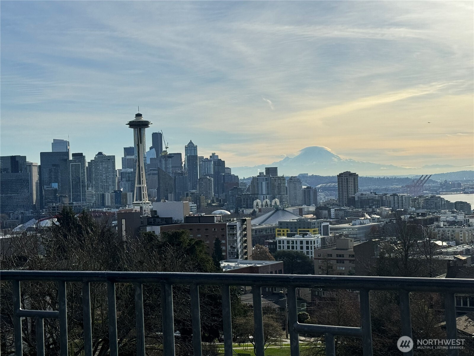 Your search is over- this condo was thoughtfully updated to enjoy for years to come! Not a typical first floor unit- it’s perched with stunning Elliott Bay views from an elevated deck! Sought after Queen Anne high-rise adjacent to the Consulate & 1 flat block to Kerry Park ~ ICONIC views ~while centrally located near retail & dining!! Unit underwent a $100k remodel in 2021! Boasting all new LVP flooring, Hunter Douglas Duolite cellular shades, solid 5 panel doors, modern lighting, polished chrome fixtures/hardware & much more! 2 Spacious bedrooms with custom closet organizers! Only one bathroom, but it’s truly EXTRAORDINARY!! Daltile porcelain microban tilework, Jacuzzi Tub, TOTO toilet (IYKYK), Spacious vanity with Pental quartz & Ultra premium oversized LED mirror! Sunny & bright corner-unit has an open "great room" flow, but the Kitchen…YES please! Open shelving, custom cobalt tile backsplash, SS appliances, pantry & quartz breakfast bar! Convenient in-unit laundry room and A/C!! Secure building has radiant heat, storage & 1 deeded carport. Meticulously maintained! Prime location! Don't wait!