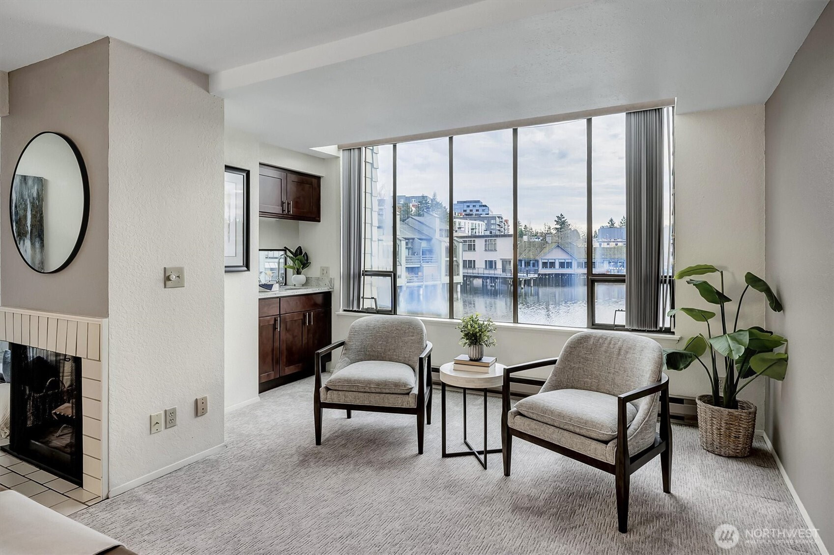 Enjoy the finest in urban living in this lovely sun-drenched property in popular Lake Bellevue Village, just blocks to the Spring District, and the Wilburton Light Rail Station. Stroll to area restaurants, take a dip in the community outdoor pool, relax in the sauna or the hot tub, walk your pup to the neighborhood dog park and love life on the charming lake. The remodel included new carpeting, gorgeous quartz counters, new laminate flooring, a beverage fridge and more. In unit laundry with washer and dryer, carport with one spot and an additional designated space outside. This is the perfect location to live without a car. Only internet and electricity are the homeowners responsibility. The HOA cover the rest! Don't miss it!