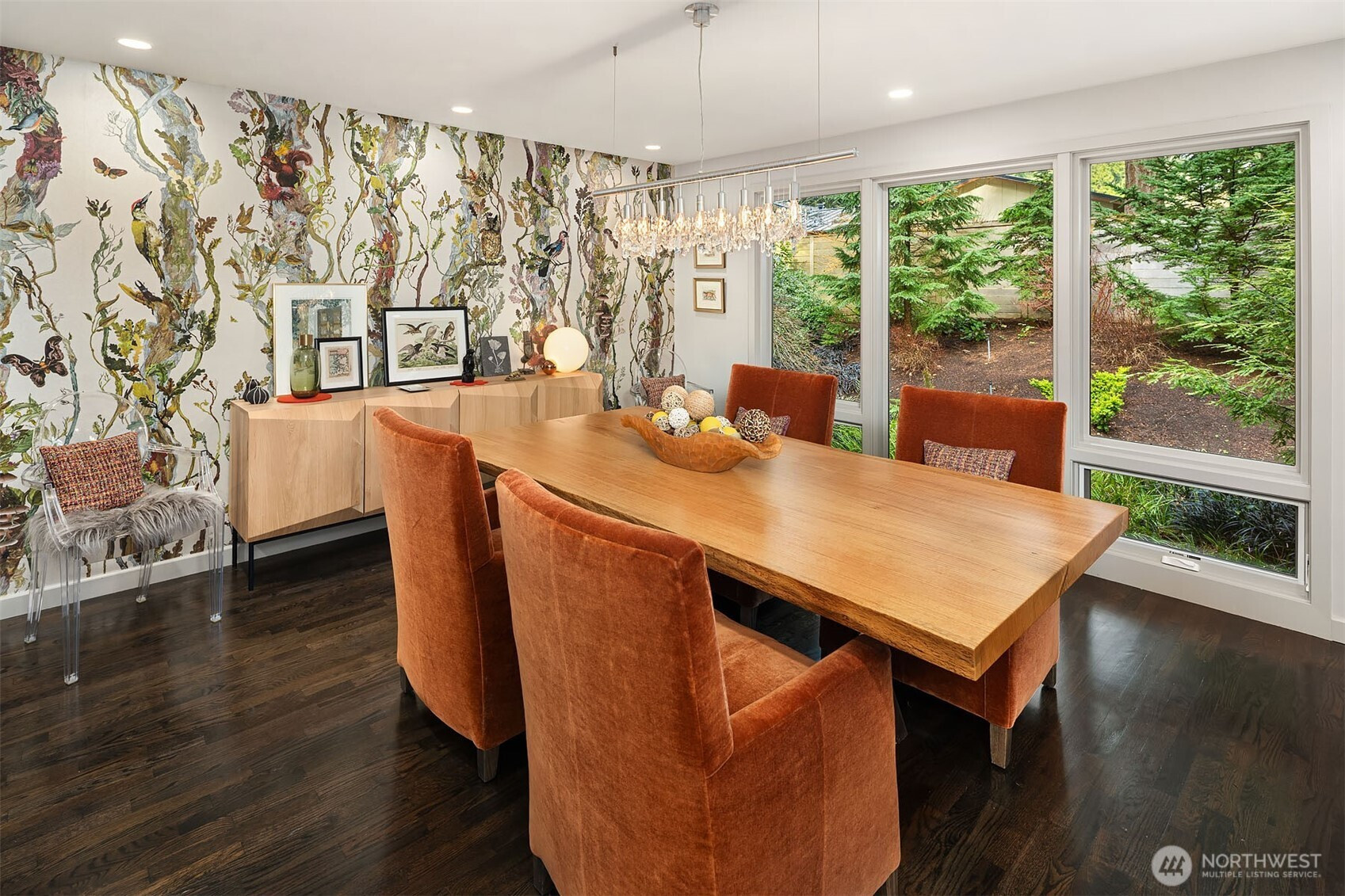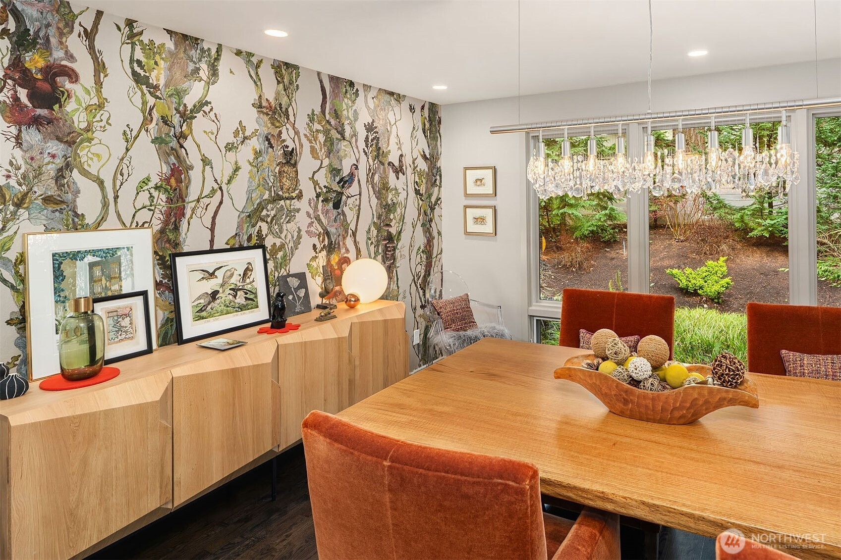 An Island Sanctuary: Mid-century modern with a twist. Sophisticated one-story living inspired and reimagined for comfort & entertaining. Light & airy interior welcomes you to a generous living room with hardwood floors, modern fireplace & garden views. Clean lines compliment the Chef’s kitchen: white oak cabinets, lighted stainless steel floating shelves, stone surfaces, Wolf cooktop, Liebherr fridge & large island with seating for four. Extensive hardwoods throughout. Oversized family room + cozy dining room merges with the kitchen, highlighted by a wall of windows overlooking the private backyard, bringing the outdoors in. Flexible office/5th bdrm with closet. Primary suite with floor-to-ceiling windows & stylish bath renovation (2024) features Ann Sacks tile, skylights, heated floors & custom closet with built-in dressers. Beautifully remodeled full bath with custom cabinets, floating vanity, modern soaking tub & heated floors. Serene, fully fenced backyard has expansive patio, firepit, mature landscaping & irrigation in front and backyard + Dog run/chicken coop. Metal 50 yr. roof (2024), New exterior paint (2023), Lutron lighting systems (2024), 2 gas furnaces & new water heater w/ recirculating pump. Sited on a private lane, a home that lives as beautifully as it looks. Steps to Lakeridge Elementary & Islander Middle.