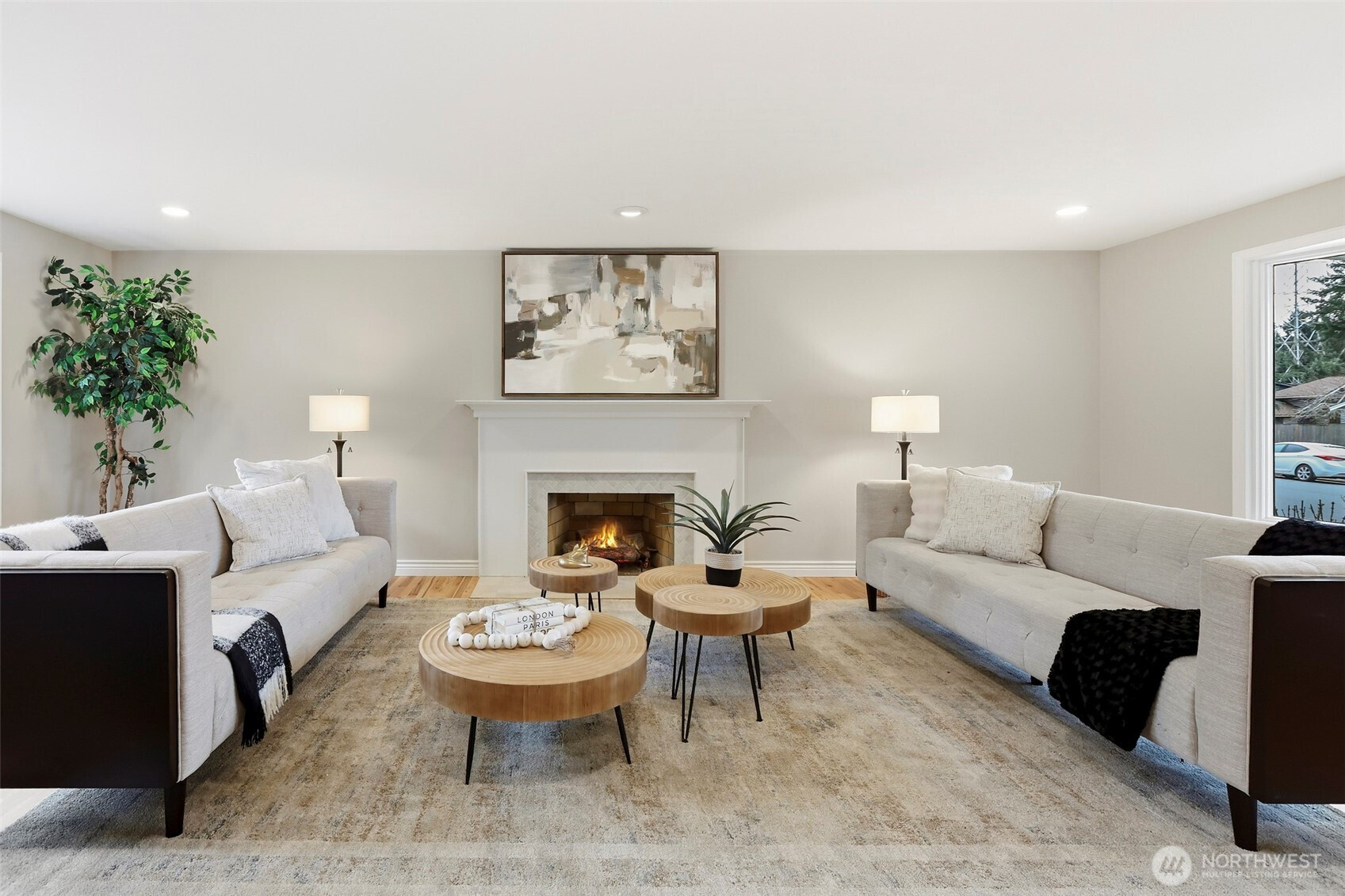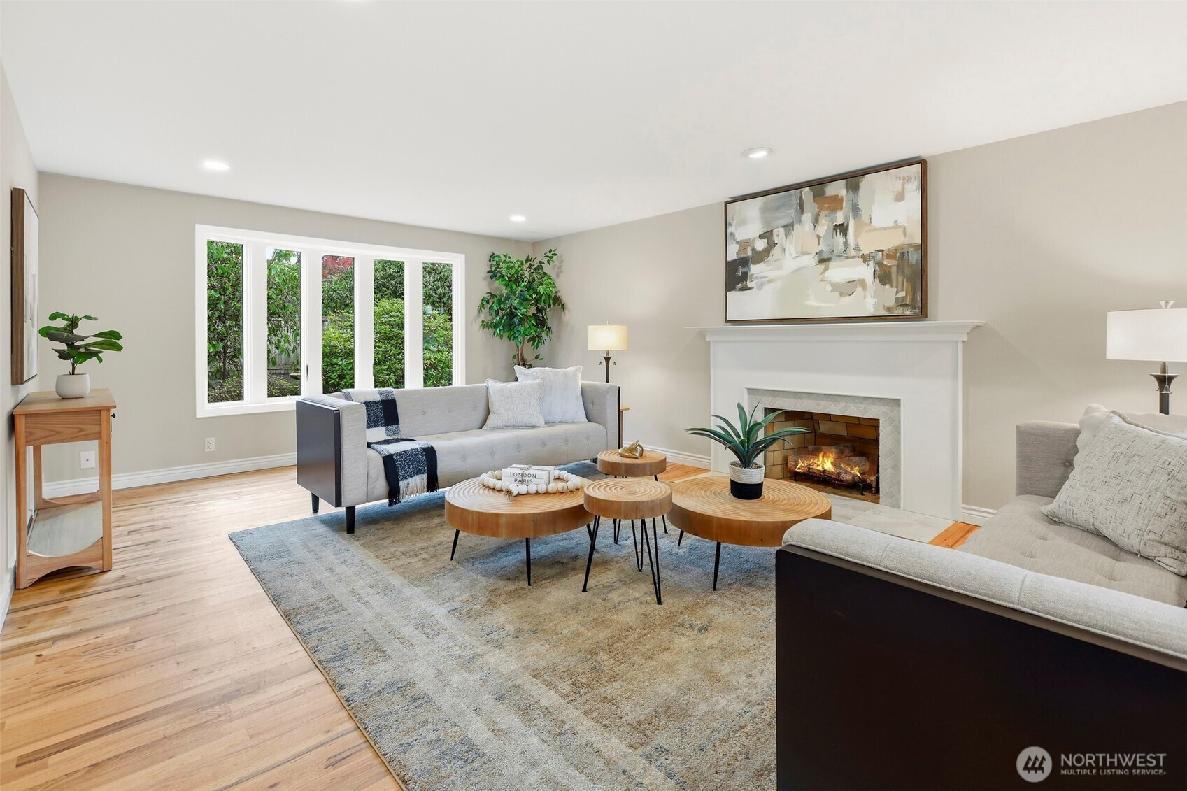 Sophisticated, light-filled, and impeccably updated, this high-end Newcastle home sets a new standard for modern living. Gorgeous solid oak hardwood floors across the entire house & high-end designer finishes highlight this home that's been updated head to toe. New interior doors, fully renovated kitchen and bathrooms, fresh interior and exterior paint, modern lighting & premium Andersen windows & back door. The open floor plan offers two generous living areas with fireplaces, creating perfect spaces for gatherings & entertaining. Upstairs, you’ll find five bedrooms plus a convenient laundry room. A sunny, flat corner lot offers a private & inviting outdoor retreat with mature landscaping & beautiful curb appeal. Located just around the corner from Coal Creek shopping center & quick freeway access, this truly turn-key home offers unbeatable convenience, quality & style in a coveted location!