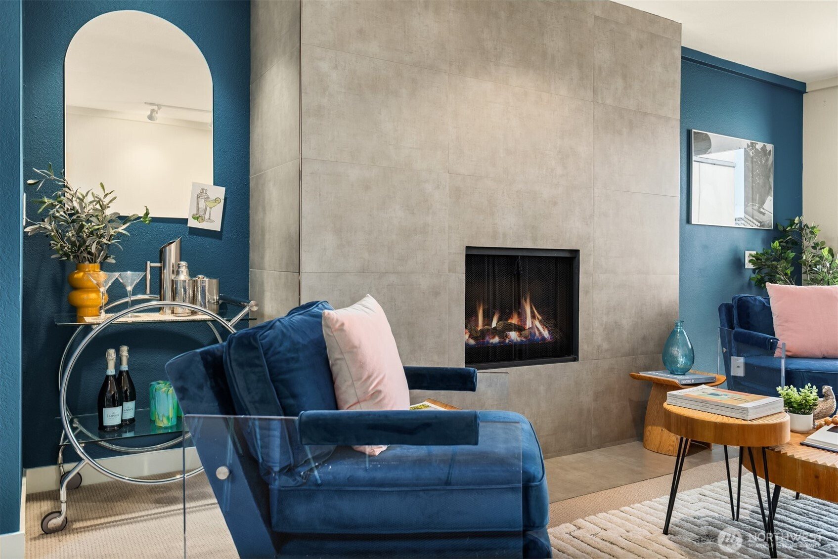 This stylish two-bedroom condo checks all the right boxes—and then some! Situated in a contemporary building on the southern edge of Capitol Hill, this home feels fresh, modern, and effortlessly livable. The upgraded kitchen brings both function and flair with new countertops, cabinets, and high-end appliances. The light-filled, beautifully open living room is anchored by a sleek, wood-burning fireplace and framed by western views of the Seattle skyline—equally perfect for cozy nights in with your honey or hosting friends for a chic dinner party. And speaking of hosting, there is even a clever nook in the living room already plumbed for a bar sink, so making cocktails or mocktails for your guests will be a breeze. Grab a drink and slide open the door to your private balcony to take in the gorgeous Seattle sunsets. The primary suite, with its spacious remodeled bathroom, offers a calm retreat, and the second bedroom and full bath provide flexibility for your guests, an easy work-from-home lifestyle, or whatever else your heart desires. A full laundry room with extra storage sits just off the kitchen—one of those details you’ll appreciate more every day. And the location? SO good. Just blocks to Seattle University and great places like Ba Bar and Boon Boona Coffee. With quick access to downtown, I-5, and the Seattle Streetcar First Hill Line you can get anywhere easily with or without a car. (And by the way—there is also a secure parking spot!) What are you waiting for?