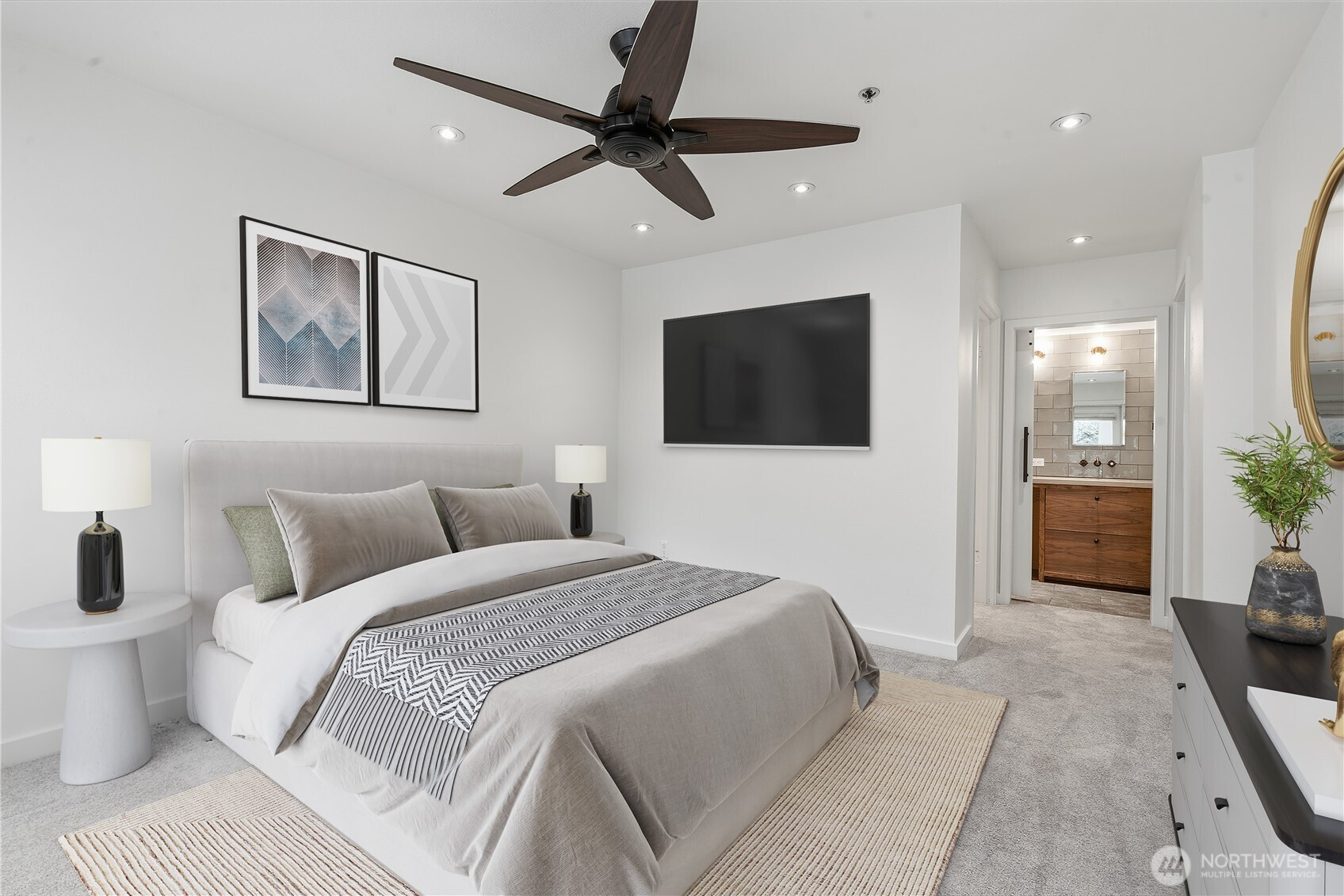 Rare opportunity to own a beautifully remodeled, spacious 2-level condo at the coveted Nautica Condominiums! This 6th-floor, 3-bedroom, 2.5-bath home features an open-concept layout filled with natural light and a private deck with stunning South Lake Union water views. The chef-inspired kitchen offers a commercial-grade convection gas range, stainless steel appliances, and an elegant blend of white quartz and granite countertops, while recessed lighting and a cozy gas fireplace enhance the inviting living space. Additional highlights include in-unit washer and dryer, a newer hot water tank, fresh interior paint, and a building that completed a full exterior renovation in 2022. Enjoy a well-funded, professionally managed, pet-friendly HOA and an unbeatable location just minutes to the Space Needle, Climate Pledge Arena, South Lake Union, and Downtown Seattle, with easy access to Mercer St, I-5, and abundant transit options. Move in ready, pre-inspected!