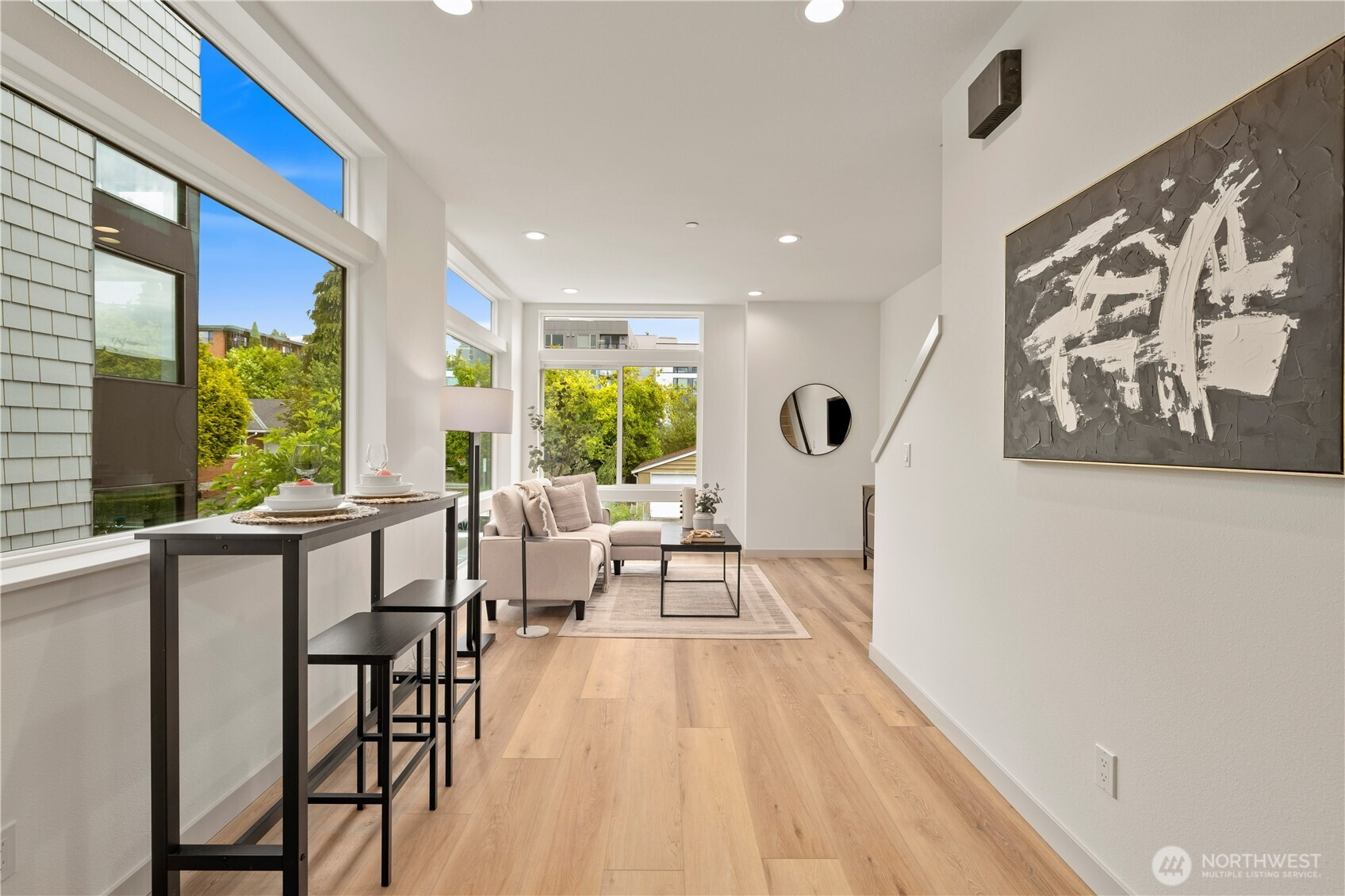 Secure an incredible 2.25% interest rate (terms apply) at Brixton by MRN Homes! This rare corner, new construction home is tucked along a peaceful, tree-lined street just moments from Green Lake, UW, University Village, light rail, and an easy downtown commute. Walk in to an airy, light-filled entry that sets the tone—open, effortless, and ready to impress. Sun-filled open-concept living shines with expansive windows, high-end finishes, and a chef-inspired kitchen featuring rich wood-toned cabinetry, sleek countertops, premium appliances, and a spacious pantry—perfect for entertaining or everyday living. Two generous bedrooms are conveniently located on the upper level, while the show-stopping rooftop deck steals the spotlight with neighborhood views ideal for sunset gatherings. As a premium perk, you'll have an E-V ready parking space. A stellar 92 Walk Score puts neighborhood cafés, beloved bakeries, local dining, parks, and transit just moments from your door. A move-in-ready luxury opportunity in a sought-after Seattle location—don’t miss it!
