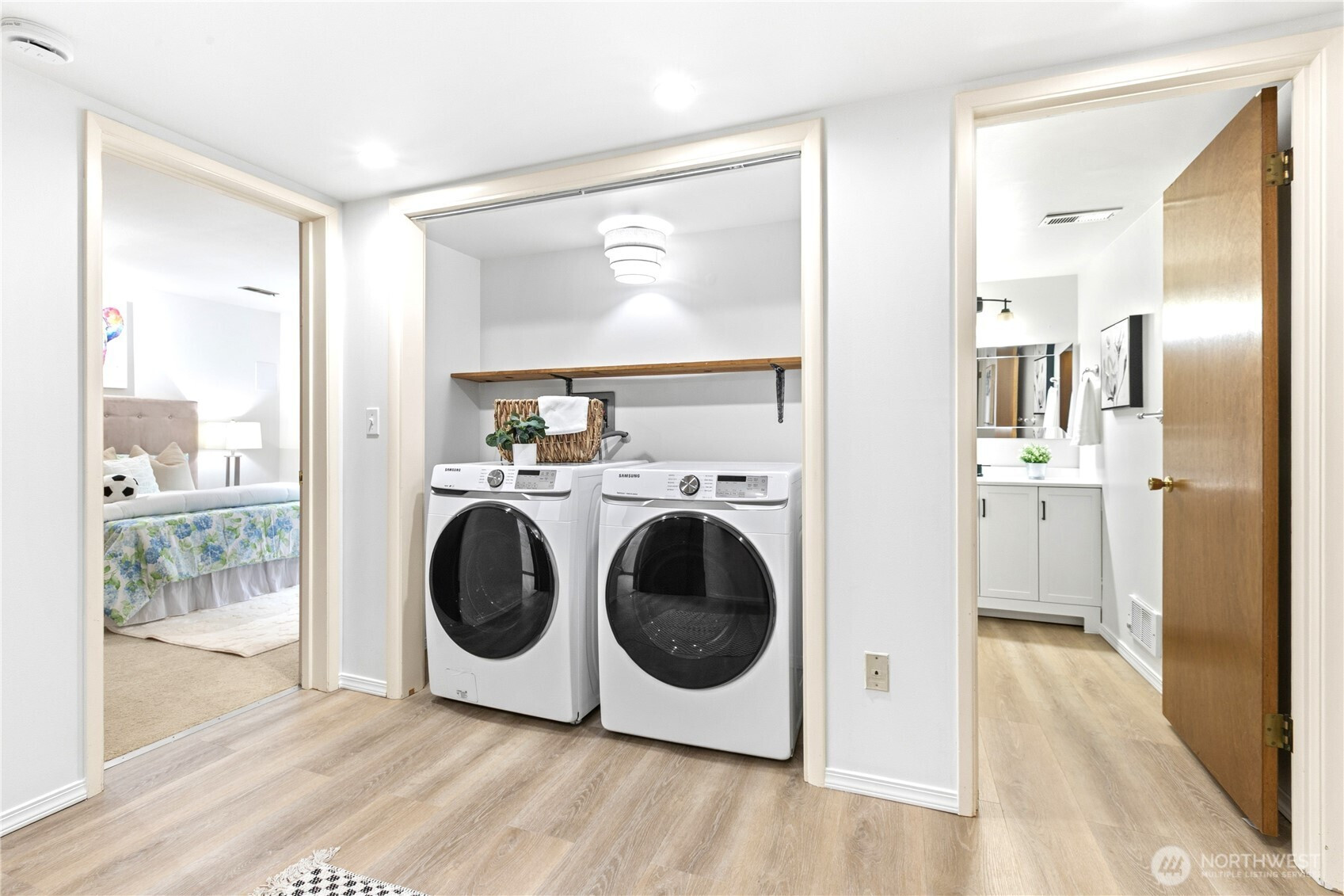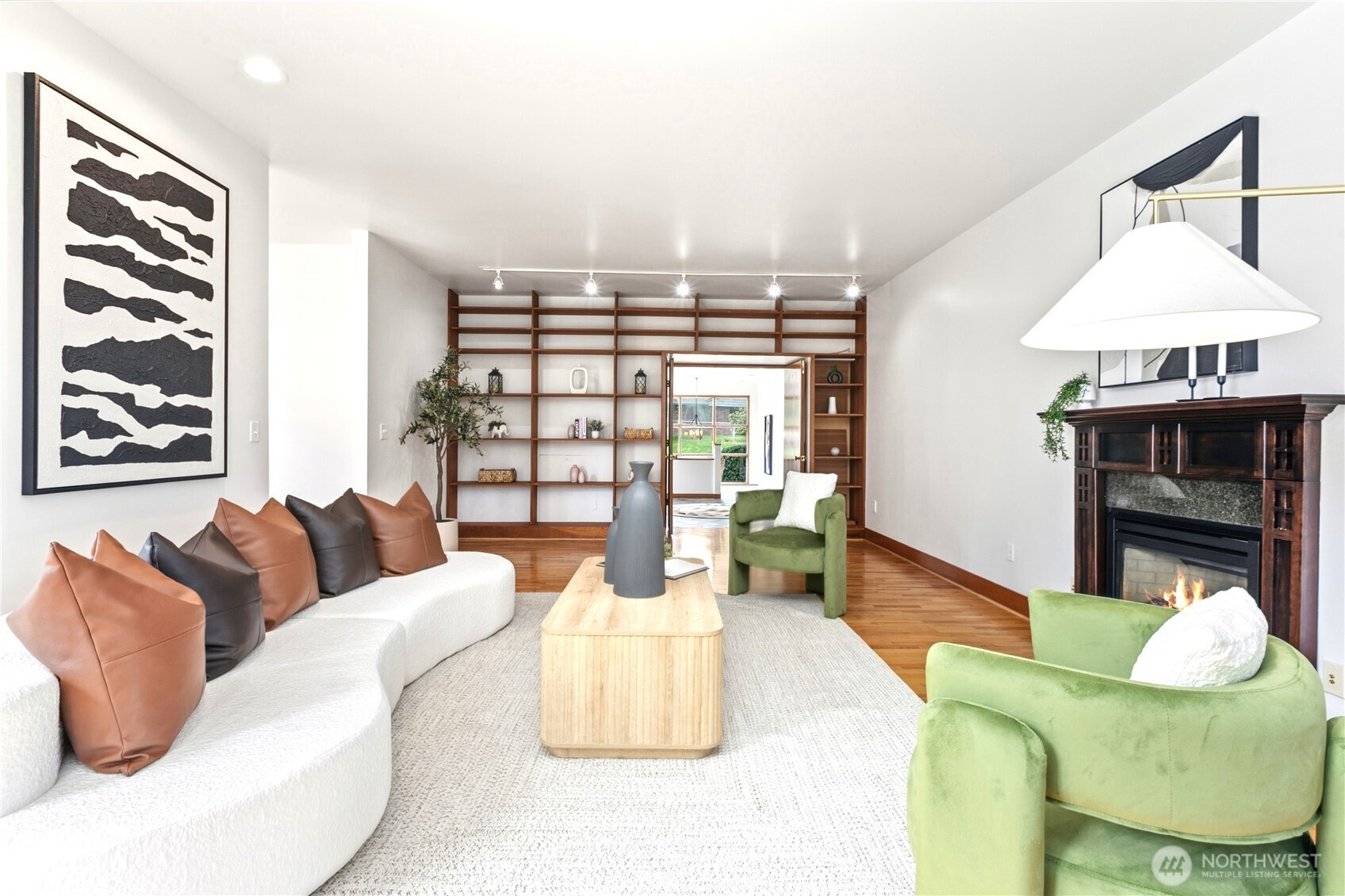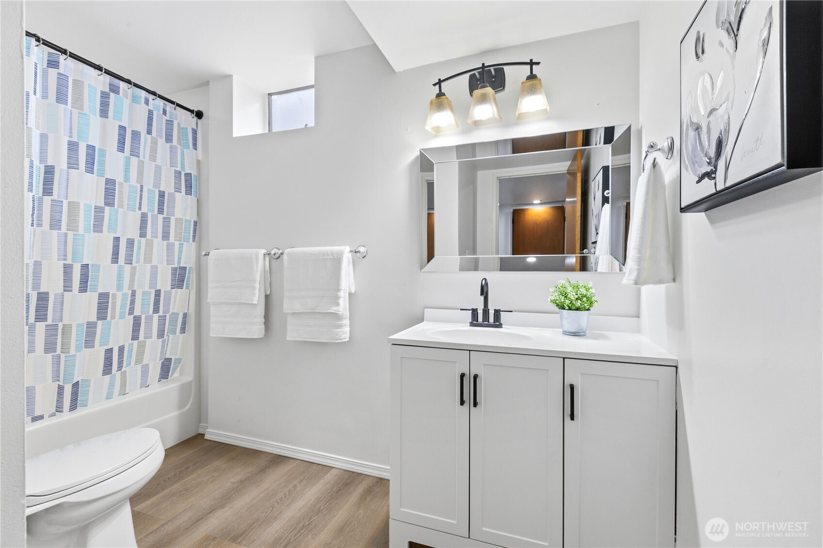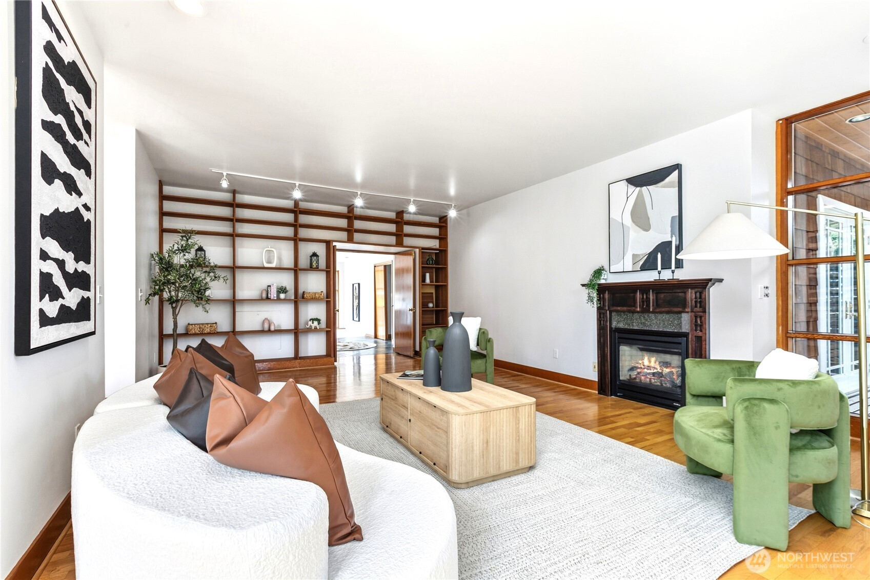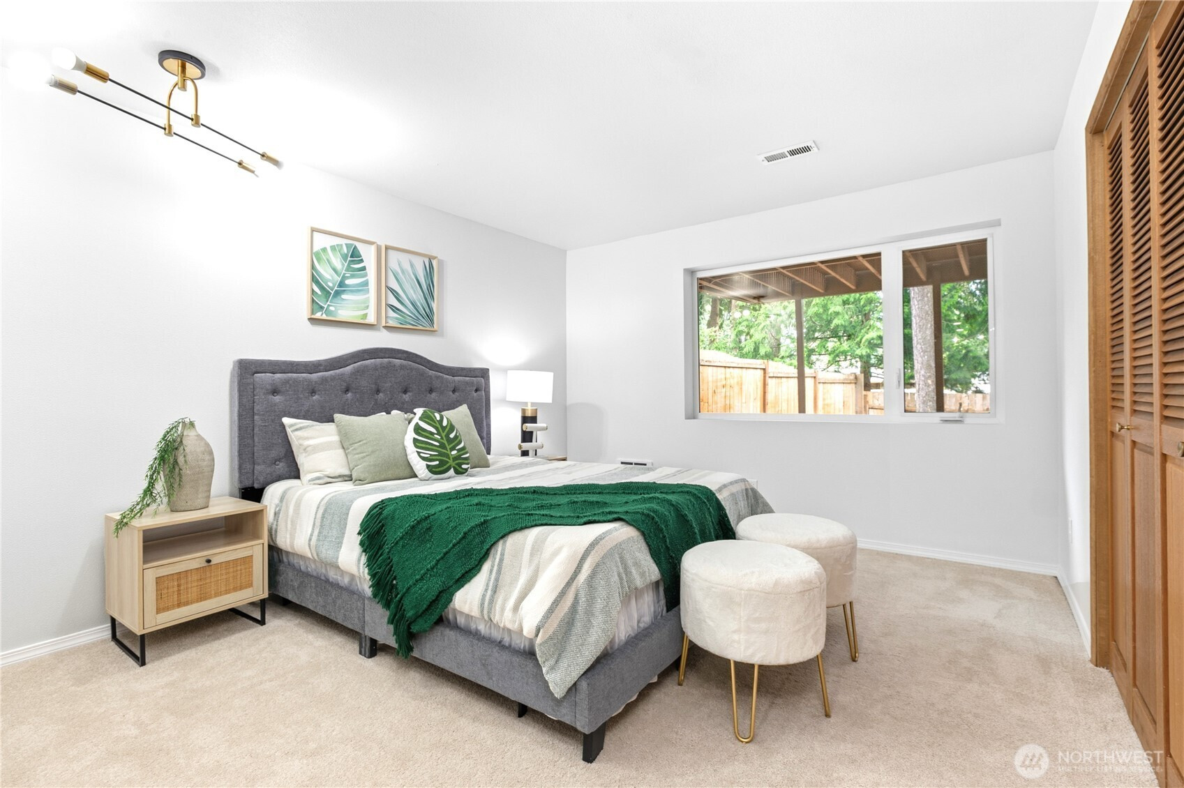 Beautifully updated contemporary home in a prime Redmond location in the heart of the Eastside tech hub. This 3,000 sq ft South-East facing home offers expansive living spaces, abundant natural light, and seamless indoor-outdoor flow. Vaulted ceilings and dramatic wood-framed windows, including a stunning glass wall, create a bright and airy atmosphere throughout. Sun-filled living and dining areas feature hardwood floors, built-ins, and French doors that open to a spacious deck—ideal for entertaining and enjoying the private, tree-lined setting. The updated kitchen features white cabinetry, stainless steel appliances, a wine cooler, and quartz countertops, offering ample prep and storage space. The main-level primary suite includes a well-appointed bath with a custom glass block shower, heated tile floors, steam shower, and jetted tub. The lower level offers a generous rec room with patio access, providing flexible space for guests, media, or a second living area. Recent updates include a new paint, fully redone deck, new HVAC, water heater, washer, dryer, and kitchen flooring. Huge, flat, usable front and backyard. Located just blocks from Grass Lawn Park with tennis courts, playgrounds, and picnic areas. Conveniently situated in the heart of the Eastside tech corridor, minutes to Microsoft, major employers, shopping, dining, and easy access to SR-520. Top rated LWSD schools. Pre-inspected and move-in ready.