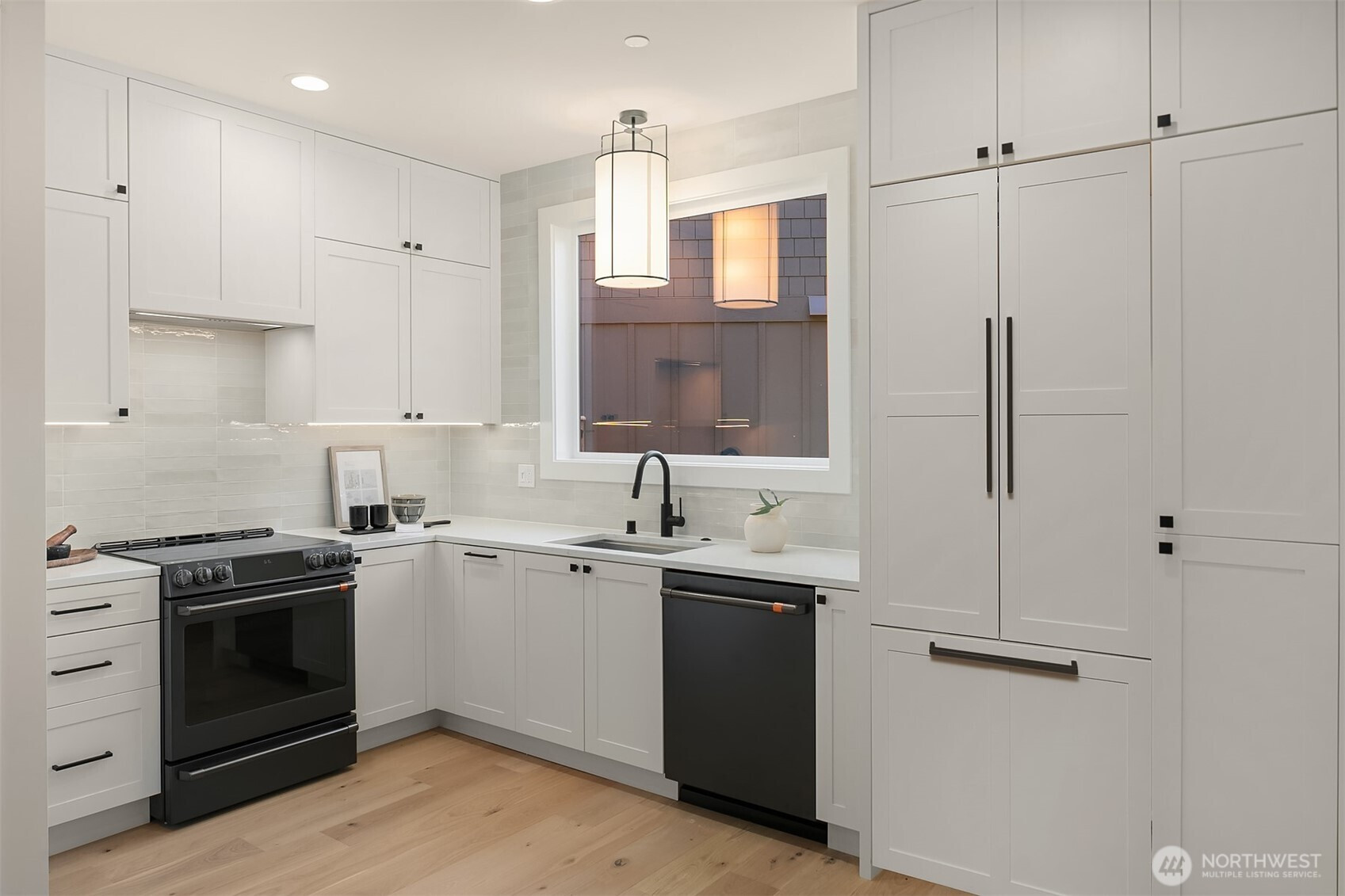 Experience modern living in this newly completed South Rose Hill residence built by Imagine Homes. Thoughtfully curated, this home offers designer fixtures, 2 luxurious ensuite beds, spa-like baths, & a large fully-fenced backyard, balancing privacy w space for entertaining. White oak hardwoods flow to a bright kitchen w quartz countertops, full-height backsplash, paneled Bertazzoni refrigerator, & walk-in pantry. The dining & great room featuring a dry bar w beverage fridge connects seamlessly to the covered patio & expansive backyard. Highlights include closet organizers, utility room w custom built-ins, Ring doorbell, & energy-efficient mini-splits. An assigned parking spot with EV connection brings both comfort & convenience together.