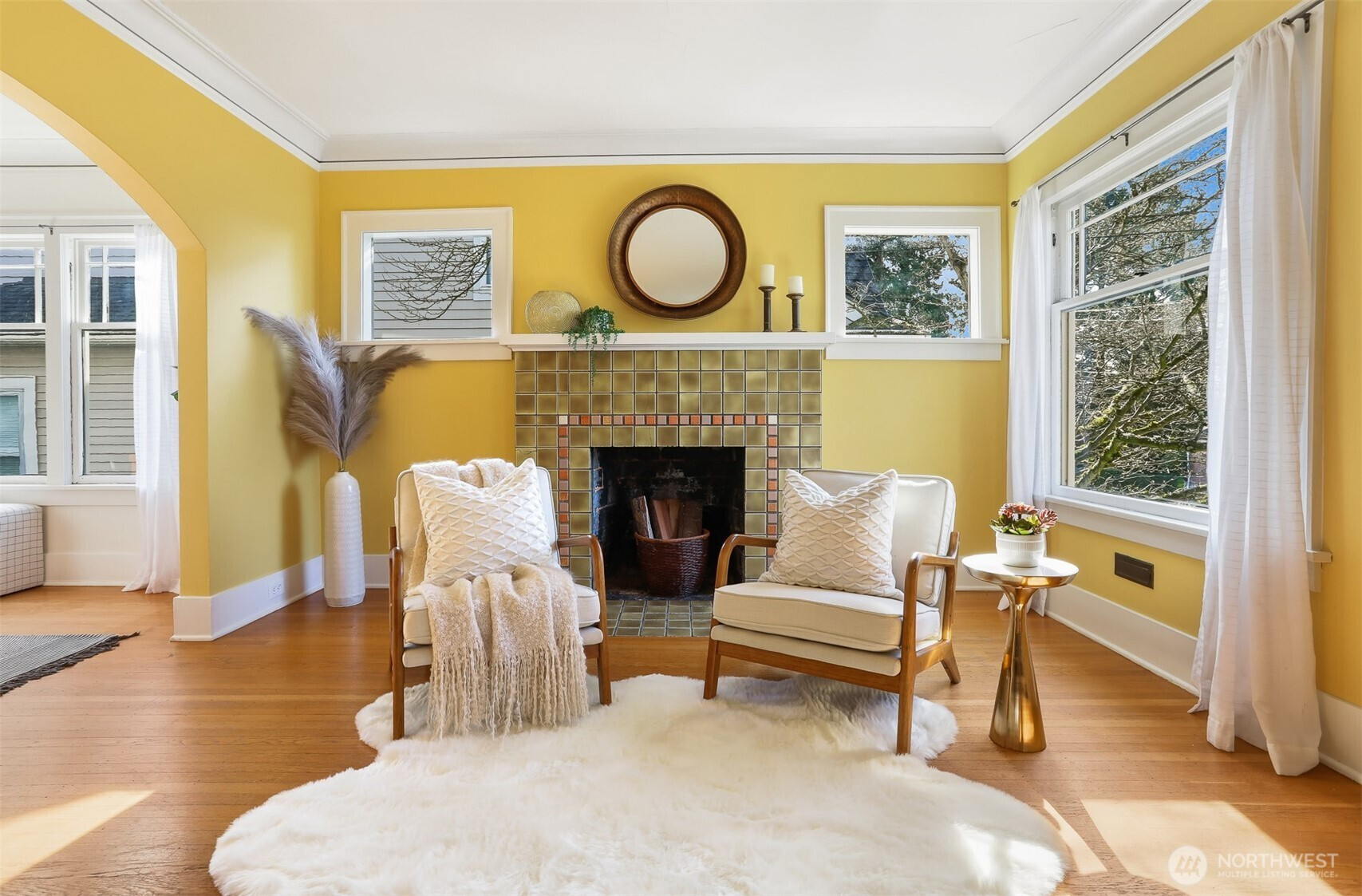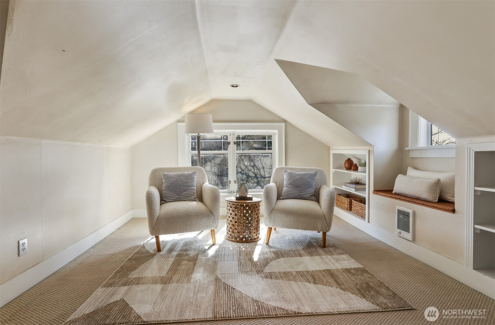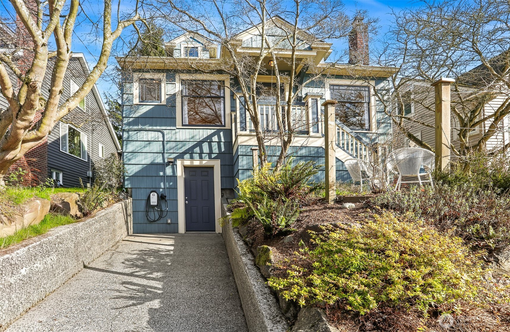 Perfectly sited between Phinney Ridge and Whittier Heights, this 1924 Craftsman blends timeless charm with thoughtful updates. Unassuming from the street, the home lives far larger than it appears. Natural light pours through generous windows, dancing across original hardwood floors and highlighting classic details throughout. A seamless main-floor layout flows from the inviting living room to the dining room and into the kitchen, then out to a beautifully landscaped backyard with mature garden—ideal for quiet mornings outdoors, and for hosting garden parties. Two bedrooms are privately tucked to the side, while upstairs offers a third bedroom plus a flexible sitting room or home office. Extensive built-in storage lines the eaves, providing incredible functionality without sacrificing character. Downstairs, a fully finished lower level features a large additional living room, bonus hobby room, and an insulated acoustic room with exterior access. With a full bathroom already in place, the lower level offers easy ADU potential. Driveway parking includes an EV charger, though you may not need it in this highly walkable neighborhood close to parks, shops, and local favorites. A rare opportunity to own a warm, versatile home in one of Seattle’s most beloved communities.