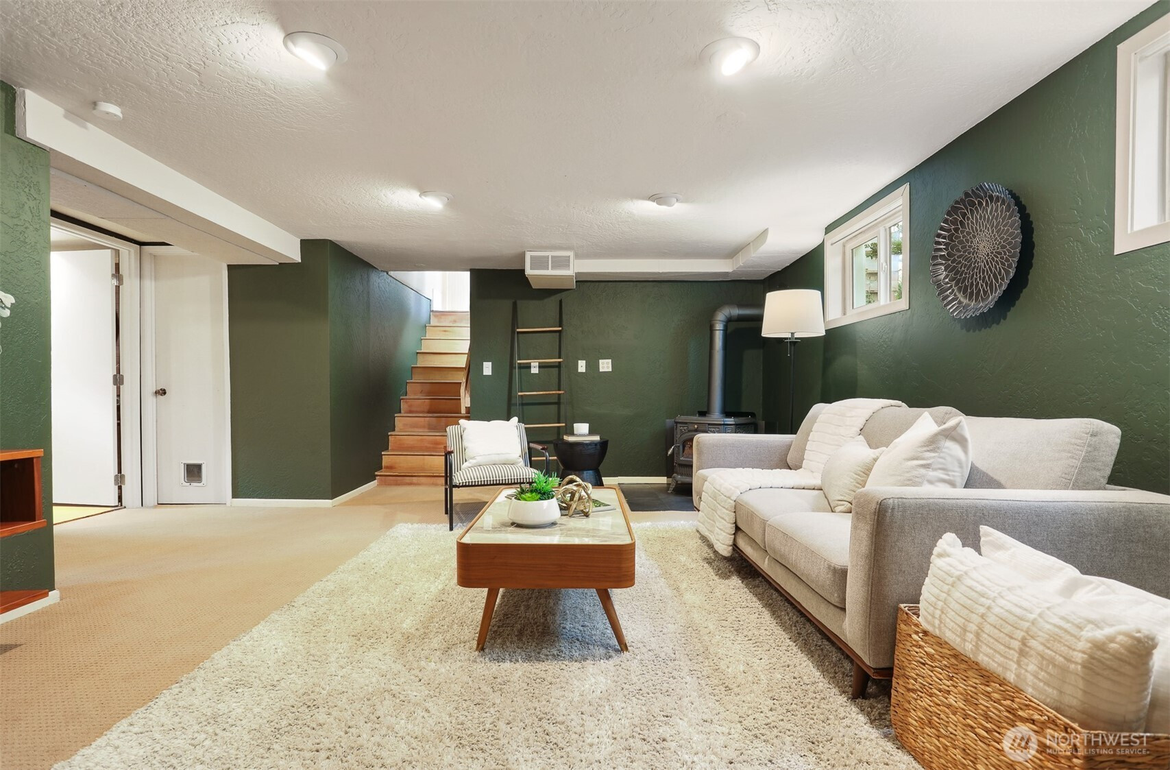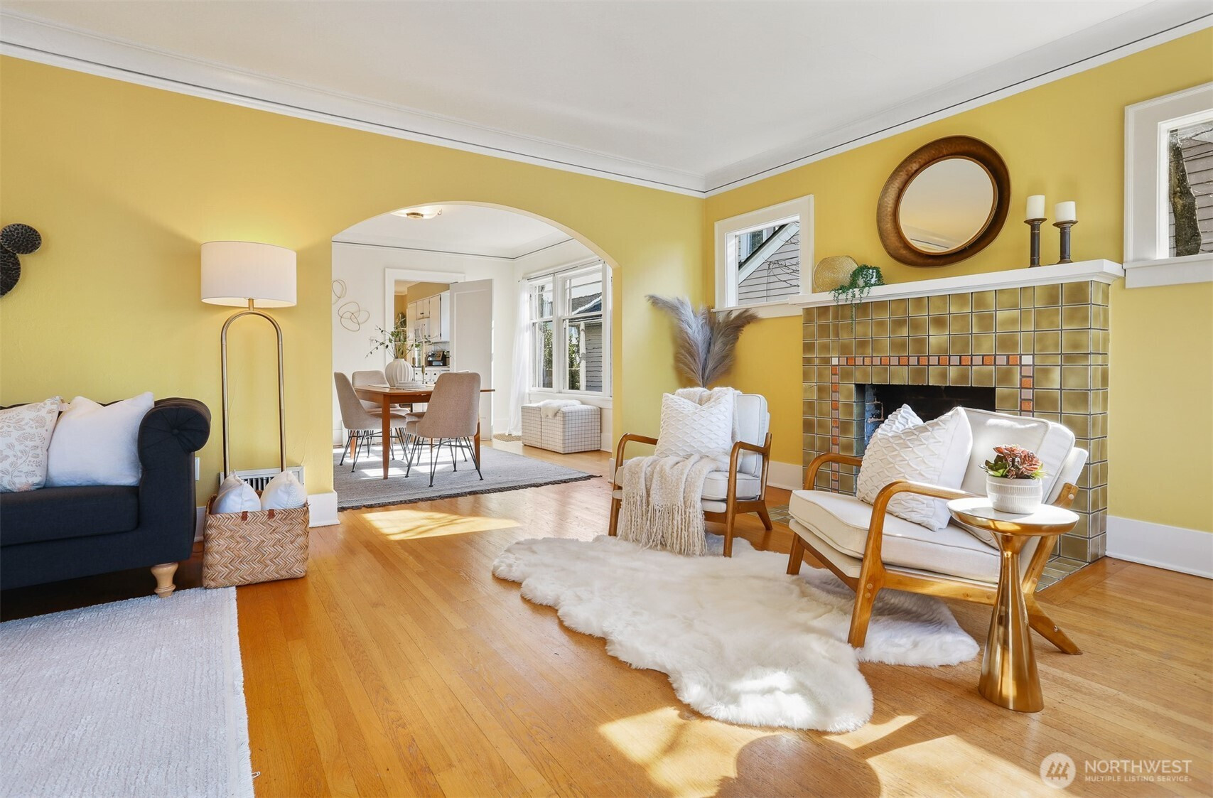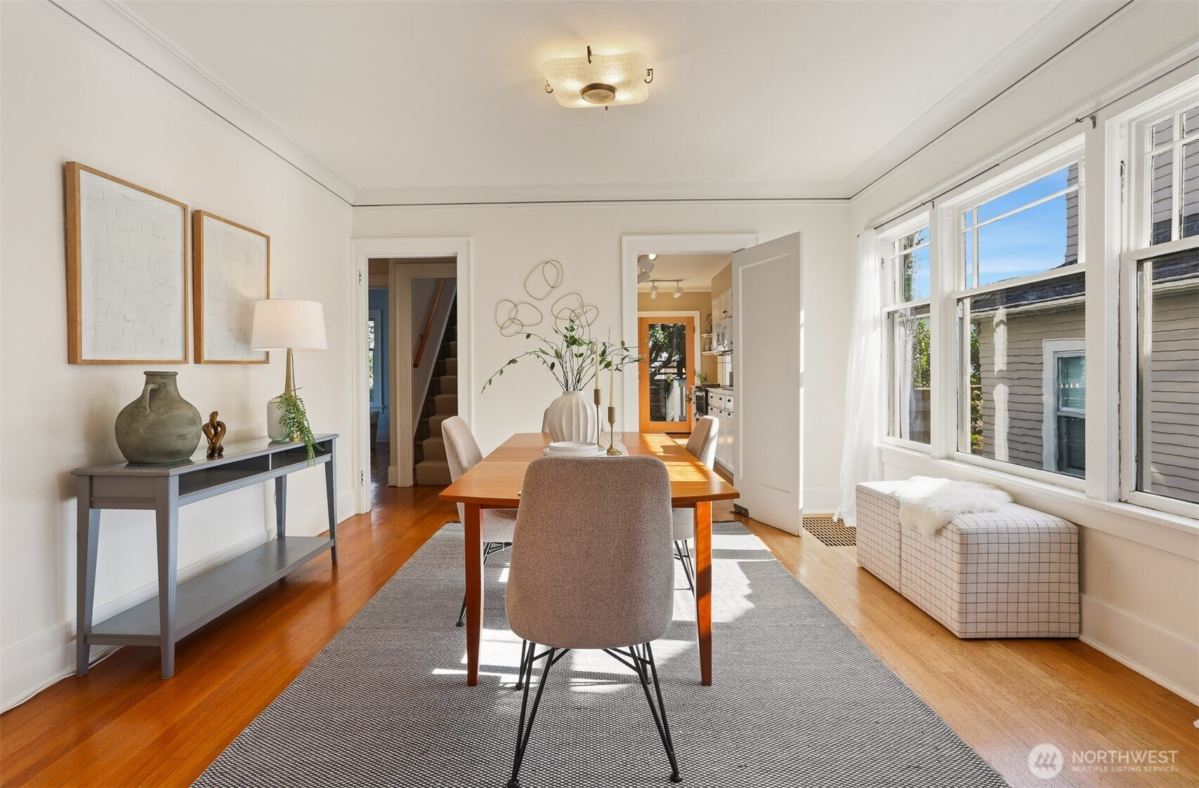 Perfectly sited between Phinney Ridge and Whittier Heights, this 1924 Craftsman blends timeless charm with thoughtful updates. Unassuming from the street, the home lives far larger than it appears. Natural light pours through generous windows, dancing across original hardwood floors and highlighting classic details throughout. A seamless main-floor layout flows from the inviting living room to the dining room and into the kitchen, then out to a beautifully landscaped backyard with mature garden—ideal for quiet mornings outdoors, and for hosting garden parties. Two bedrooms are privately tucked to the side, while upstairs offers a third bedroom plus a flexible sitting room or home office. Extensive built-in storage lines the eaves, providing incredible functionality without sacrificing character. Downstairs, a fully finished lower level features a large additional living room, bonus hobby room, and an insulated acoustic room with exterior access. With a full bathroom already in place, the lower level offers easy ADU potential. Driveway parking includes an EV charger, though you may not need it in this highly walkable neighborhood close to parks, shops, and local favorites. A rare opportunity to own a warm, versatile home in one of Seattle’s most beloved communities.