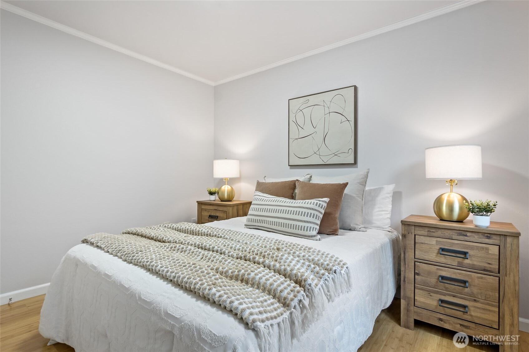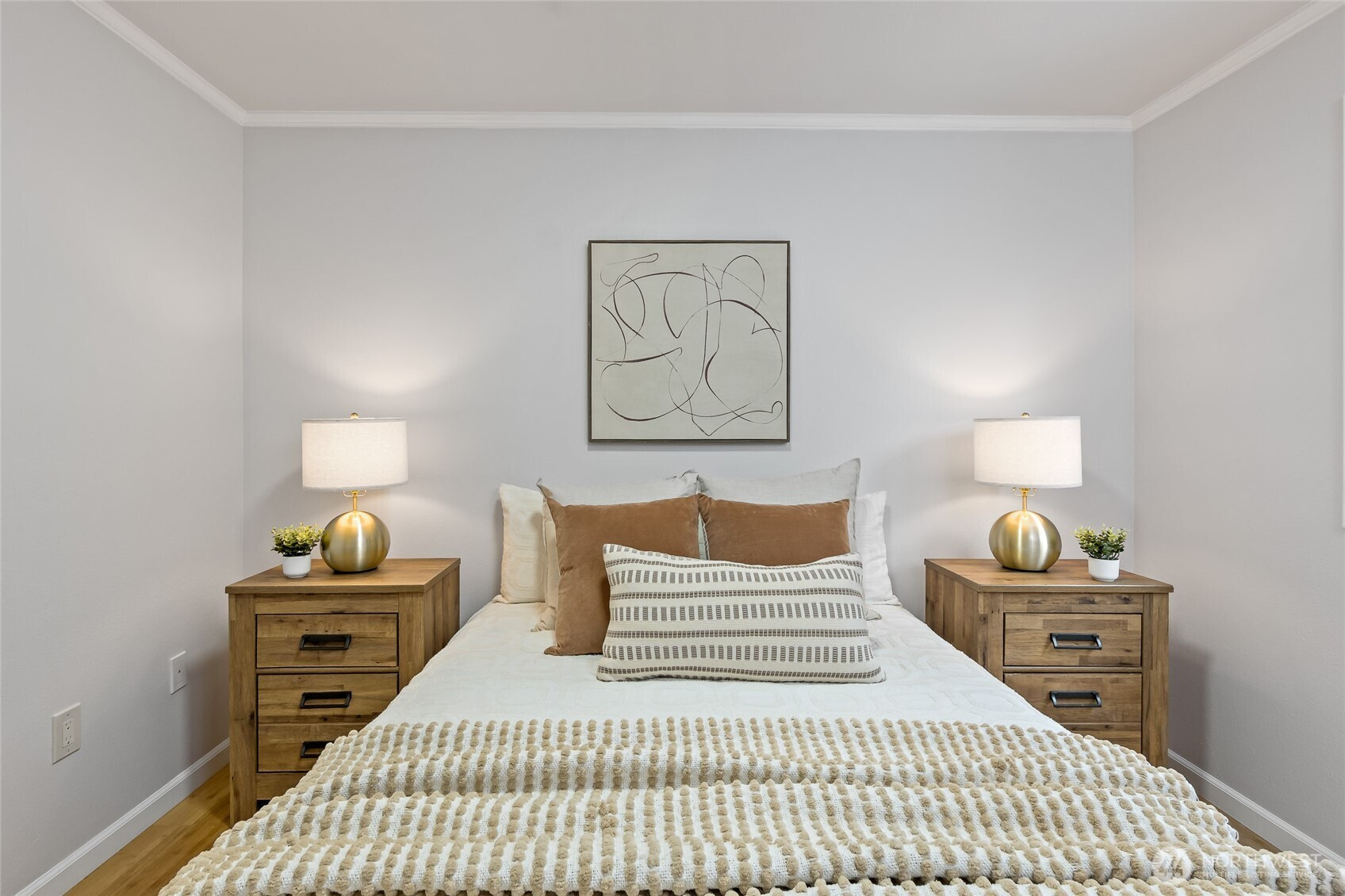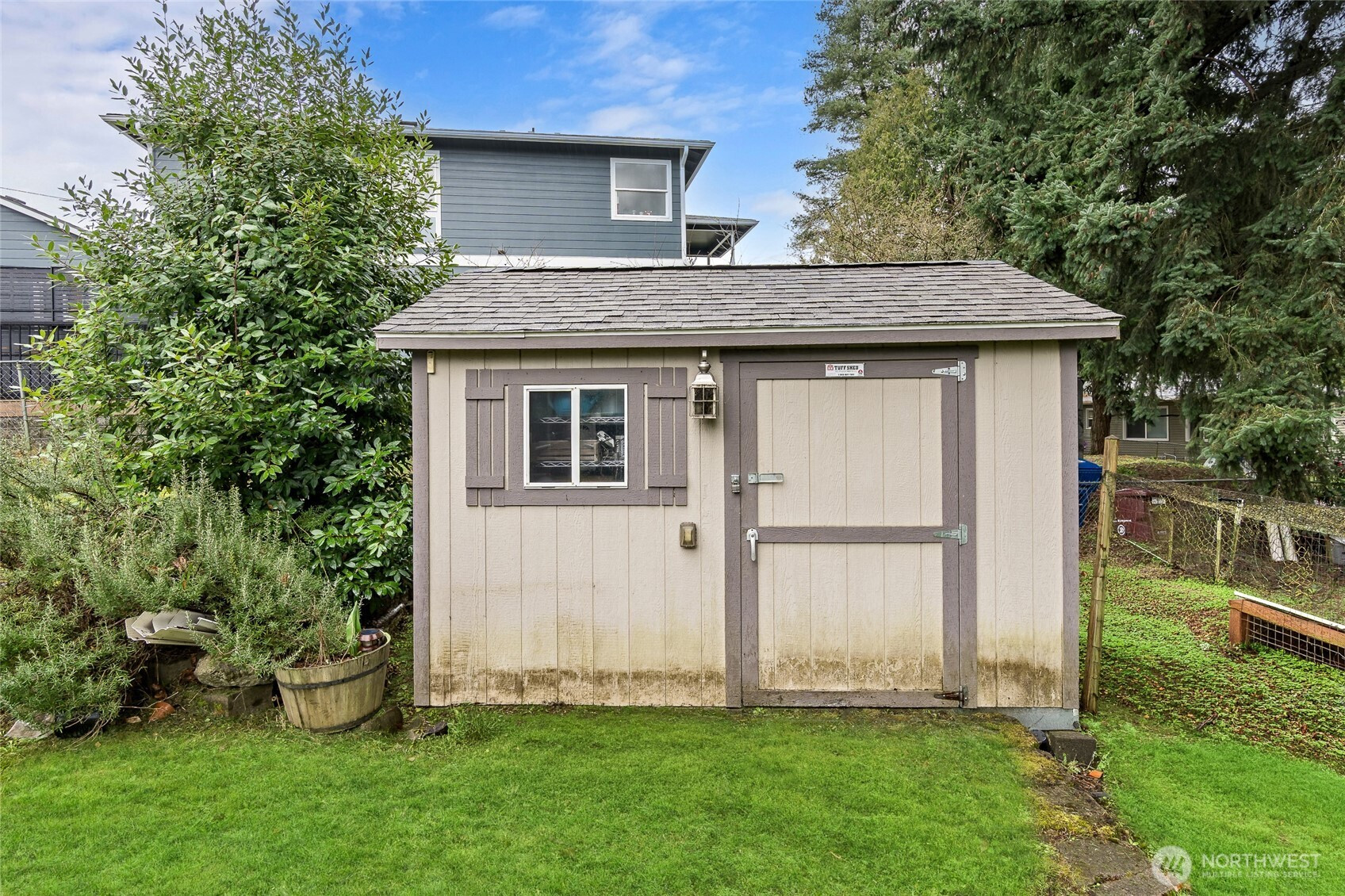 Turn-key and beautifully renovated home on a large lot in a quiet, park-like setting. This 2-bedroom, 1-bath residence offers efficient single-level living with thoughtful upgrades throughout. The open layout features a modern kitchen, updated finishes, custom cabinetry, built-in closets for excellent storage, and abundant natural light, including skylights in the kitchen and bathroom. Enjoy seamless indoor-outdoor living with a spacious Trex deck overlooking a private, fully fenced backyard — ideal for entertaining, pets, gardening, or relaxing. A detached storage shed provides valuable additional space for tools, equipment, or hobbies. The expansive R-6 zoned lot offers flexibility and potential for future expansion or improvements (buyer to verify). Convenient location with quick access to Seattle, the Eastside, Boeing, major commuter routes, shopping, dining, and parks. Move-in ready — a rare opportunity to own an updated home with room to grow in a peaceful setting close to everything.