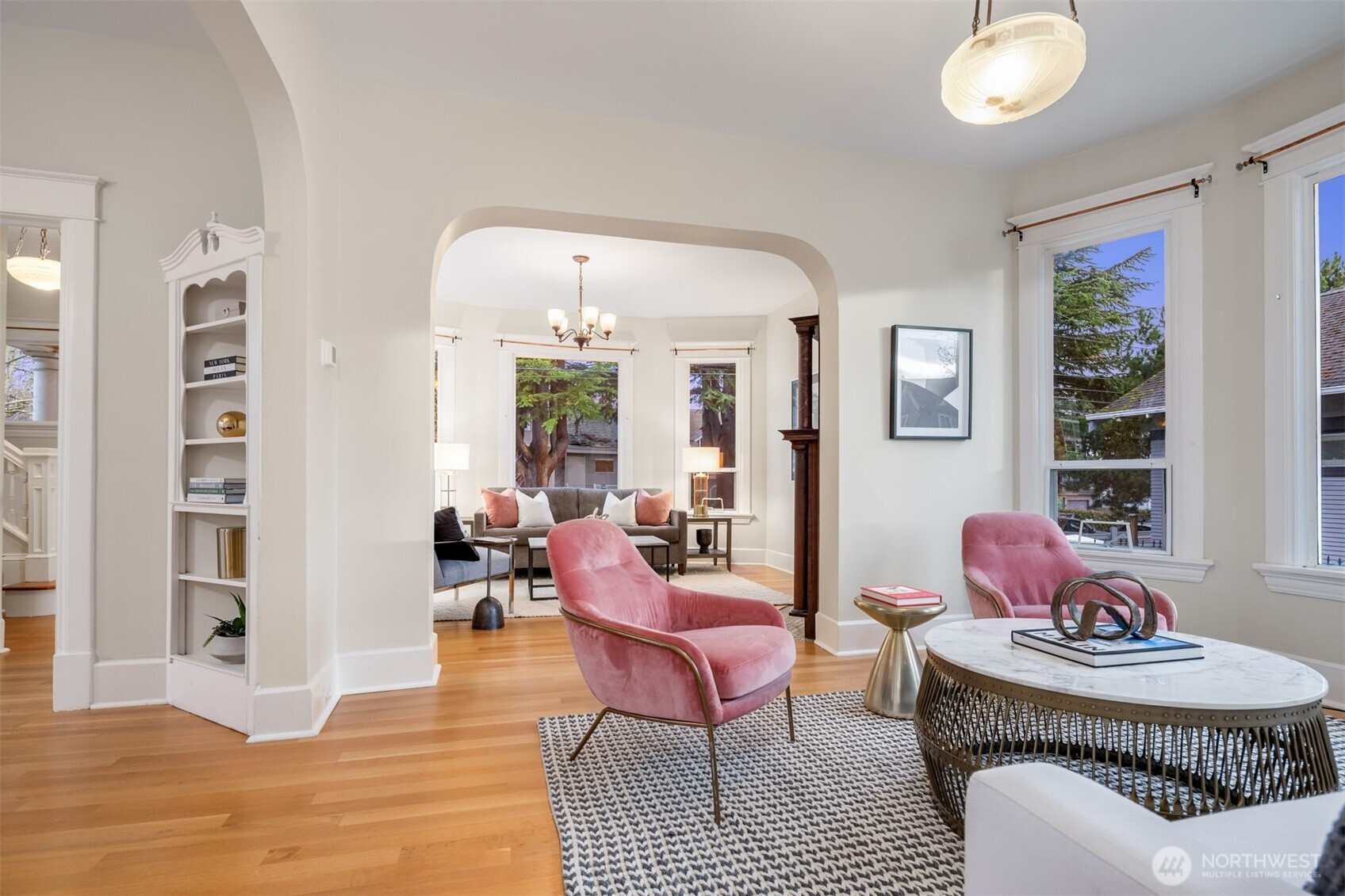 In the heart of vibrant Judkins Park, this stunning + stately Victorian home offers perfect union of timeless design + modern living. Enjoy classic details like hardwood flooring, arched passageways, trim work + fireplace exuding period character. Abundant natural light, high ceilings + Olympics/Mt. Rainier views add to the open feel of the home. Entertainers will appreciate spacious living areas. Chef’s kitchen highlights include stainless-steel appliances, gorgeous cabinetry, walk-in pantry. Five bedrooms, bonus spaces + deck on upper levels. Expansive corner lot features fenced yard + mature plantings. Off-street parking + outbuilding. Close to area amenities with convenient downtown commutes.