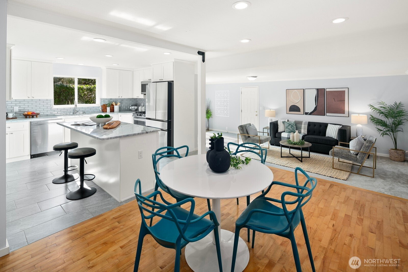 Welcome to this North Facing home in Lake View Estates! This beautifully upgraded, move-in ready 4-bedroom, 2.25-bath home sits on a large private lot just steps from Big Finn Hill Park and minutes to St. Edward State Park. Enjoy bright, light-filled living spaces with maple hardwood floors, fresh interior paint, and a cozy brick wood-burning fireplace. The modern kitchen features a stunning oversized island and updated appliances, along with refreshed bathrooms and major upgrades throughout for low-maintenance living. Entertain on the brand-new deck, relax in the spacious backyard with play area and vegetable garden, and take advantage of the oversized garage with ample storage. Located in the top-rated Lake Washington School District with easy access to Bellevue and Seattle — this turnkey home is ready for its next owner! No HOA. Minutes away from major shopping complex and Juanita Beach Park! This home is a must-see! Welcome home!