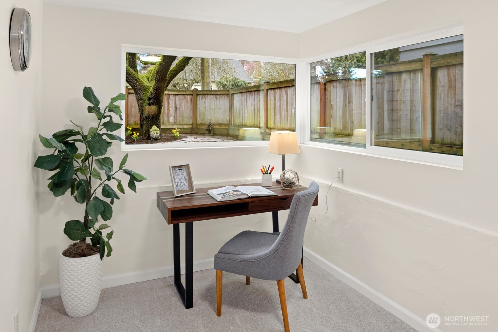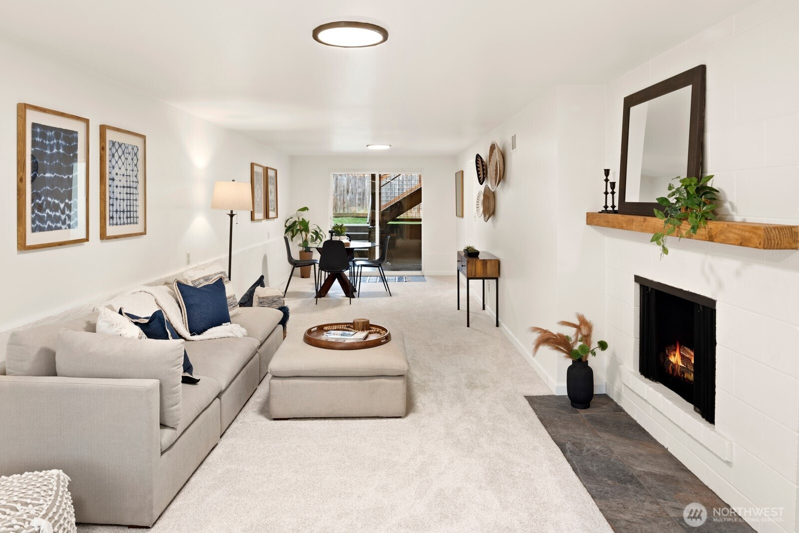 Tucked in the heart of Ballard just blocks from beloved neighborhood favorites like The Barking Dog and Take 5 Urban Market, this beautifully maintained home offers the perfect blend of location, comfort, and style and is just minutes to downtown Ballard, Phinney Ridge, and Fremont. A thoughtful, open-concept floor plan designed for modern living, featuring expansive windows that frame a magnificent old-growth maple and fill the home with natural light. The main level flows effortlessly, showcasing rich fir trim, refinished oak floors, a spacious kitchen with eating bar and tons of storage, plus a cozy wood-burning fireplace. Upstairs offers three bedrooms and two baths, including a serene primary suite, while the lower level provides flexibility with another bedroom, additional bath, and a large rec room anchored by a second fireplace. Step outside to the private, fully fenced, backyard, complete with a large deck, covered patio, fire pit, and ample garden space, perfect for entertaining or relaxing year-round. On hot summer days, when the maple is lush with foliage, you can retreat to the peaceful stone patio in the front. Recent 2026 updates include: a new roof, carpet, refinished floors, and cedar decking. An oversized one-car attached garage provides both parking and extra storage. Sophisticated design, a versatile layout, and an unbeatable location with top-ranked schools, this is Ballard living at its best!