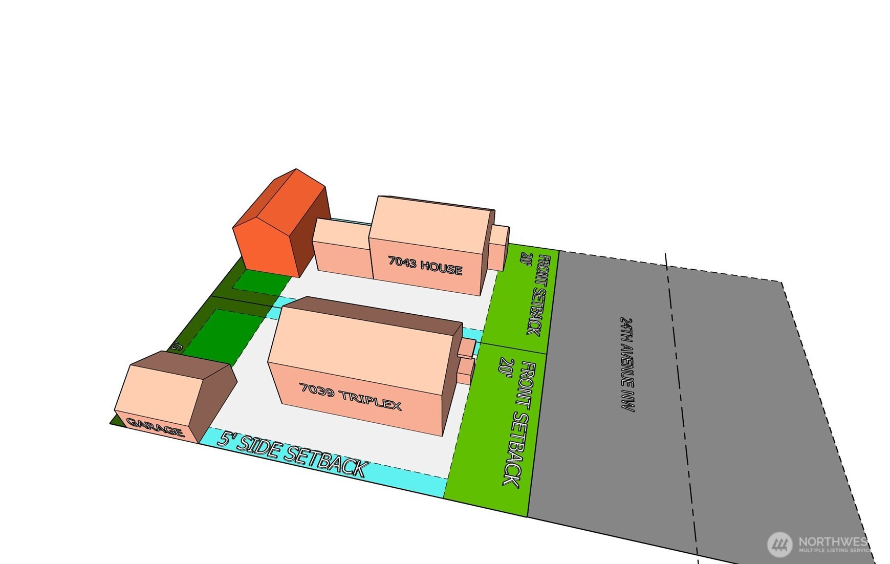 EXCITING DEVELOPMENT OPPORTUNITY Two adjacent properties sold together creating an 11,000+ sq. ft. lot in Prime Ballard Location with alley access. Currently zoned residential but slated to become L3. (Buyer to verify). Back side of property with alley access well-sited for DADU or possible Townhome additions. (Buyer to verify). Two well maintained houses on front of property, (7039 and 7043 24th Ave NW). 7039 is a well-maintained triplex with a separate unit on each floor. Triplex has been upgraded with solar panels and high efficiency mini split units to heat and cool each unit. The top floor and main floor are two-bedroom, 1/bath units and the basement has a one-bedroom unit. Great tenants. Total monthly rents on Triplex is $6600/mo. 7043 24th Ave NW is a remodeled 4 bed / 2 bath charming bungalow currently listed as a separate single-family home (See listing number 2497915). 7043 Bungalow is vacant and can be toured with appointments through showing time. It is ready to be owner occupied or re-rented. Could live in upstairs and airbnb basement. Projected rent for bungalow is $5500-$6500/mo. (Viewing of Triplex at 7039 24th will be arranged with Buyers once there is a signed purchase and sale agreement.)