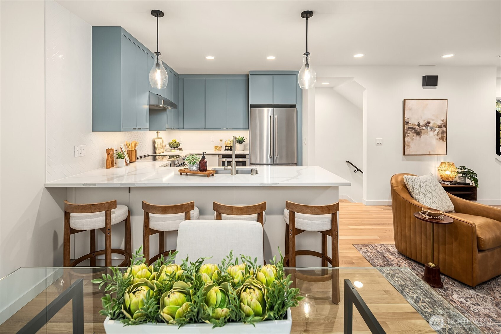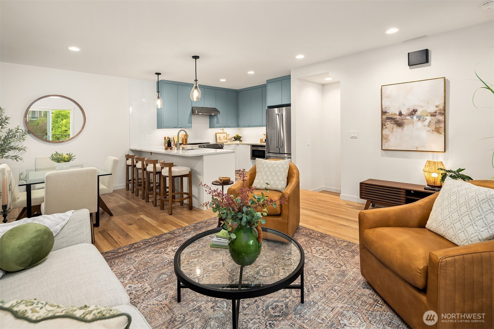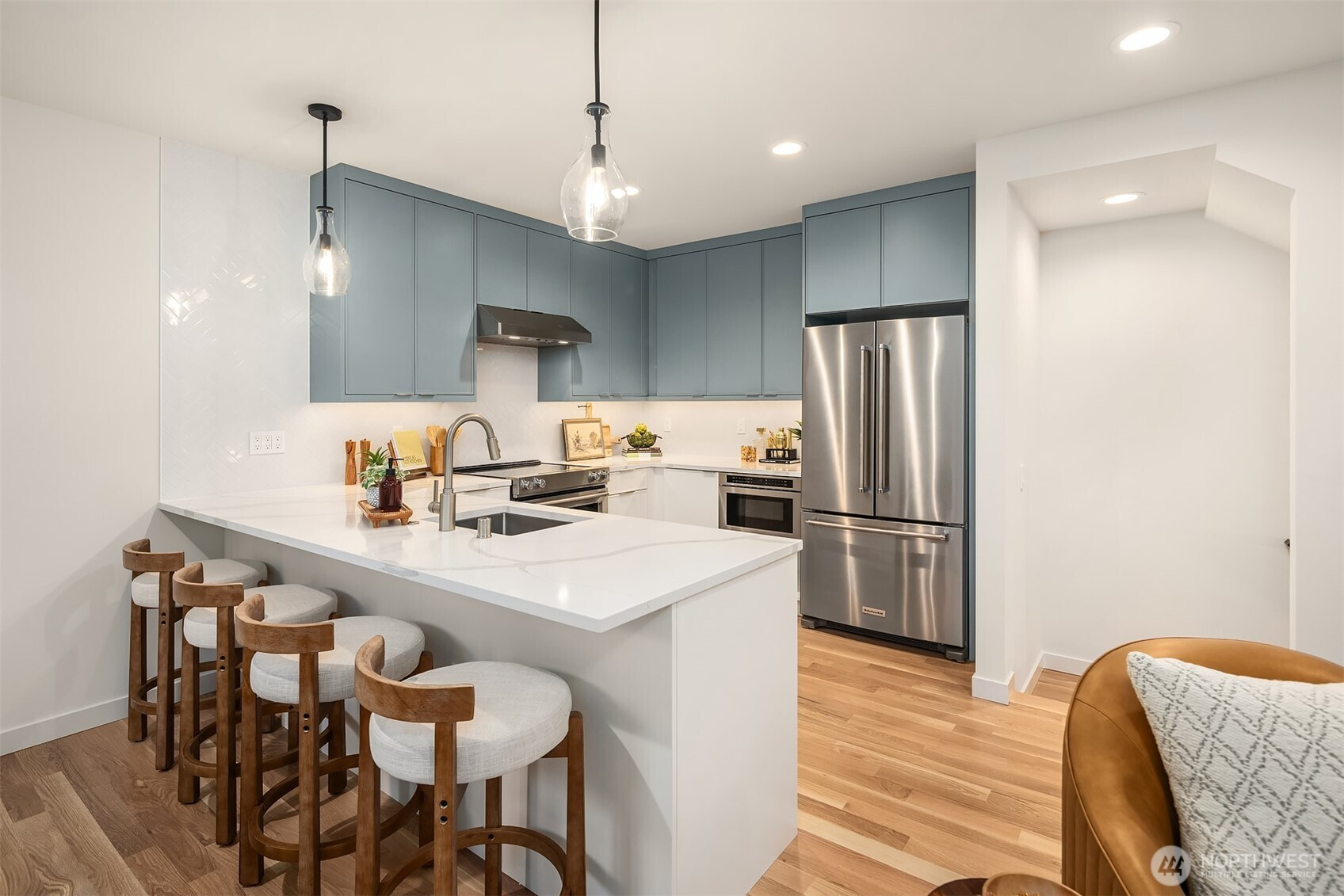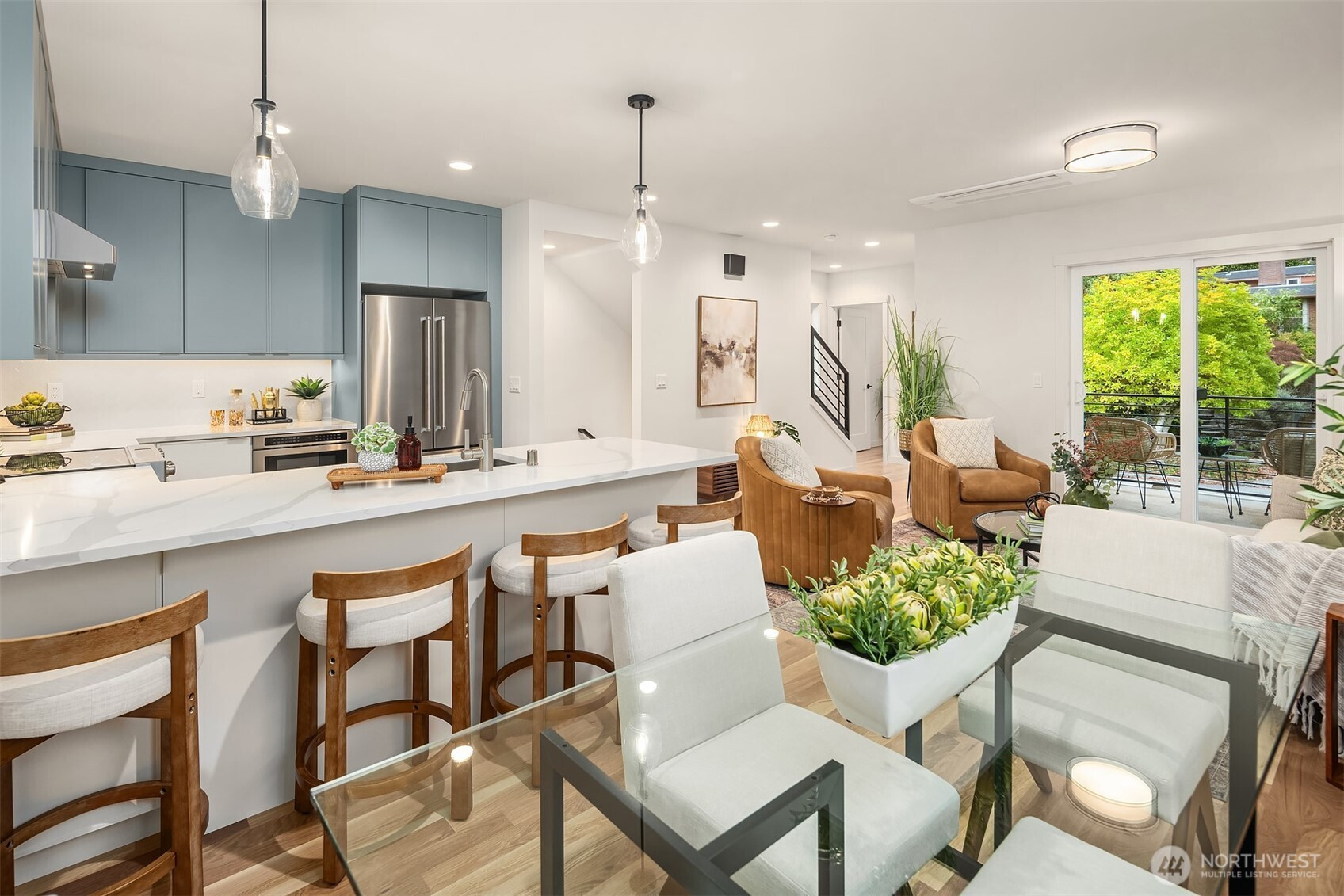Defined by clean lines and thoughtful materials, this new construction by Collz Inc offers a fresh take on modern living. Step inside to a light-filled, open-concept layout complemented by warm finishes and real oak hardwoods. Kitchen is a contemporary centerpiece with quartz counters, ss appliances, and designer lighting that adds just the right touch of sophistication. Large windows frame the surrounding Ravenna neighborhood, and a private balcony offers a quiet moment outdoors. Three spacious bedrooms provide flexibility for work or guests, while the primary suite feels like a private retreat—complete with a spa-inspired bath. Attached garage with EV charging. Close to Light Rail, Green Lake, U-Village, and countless local favorites!
