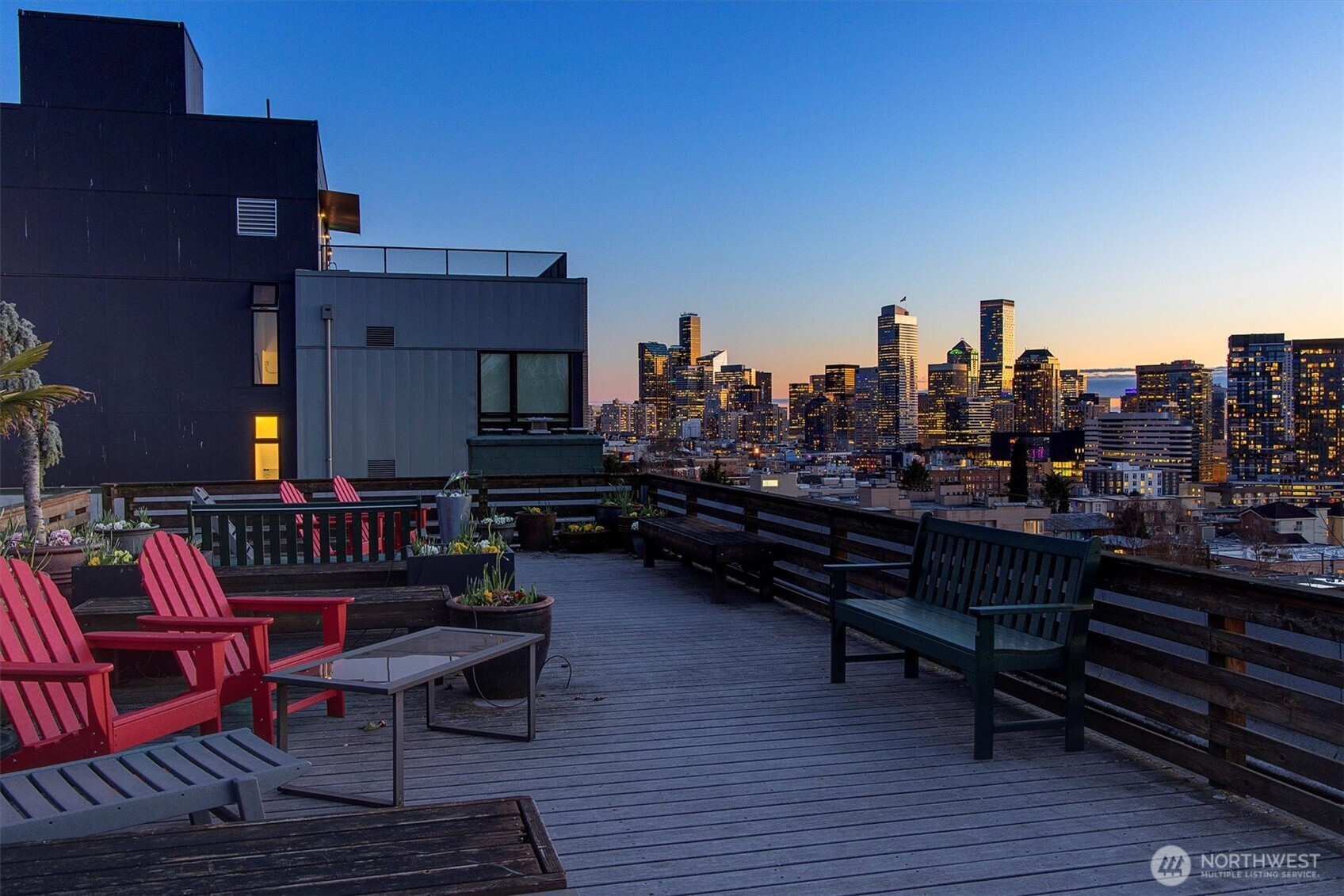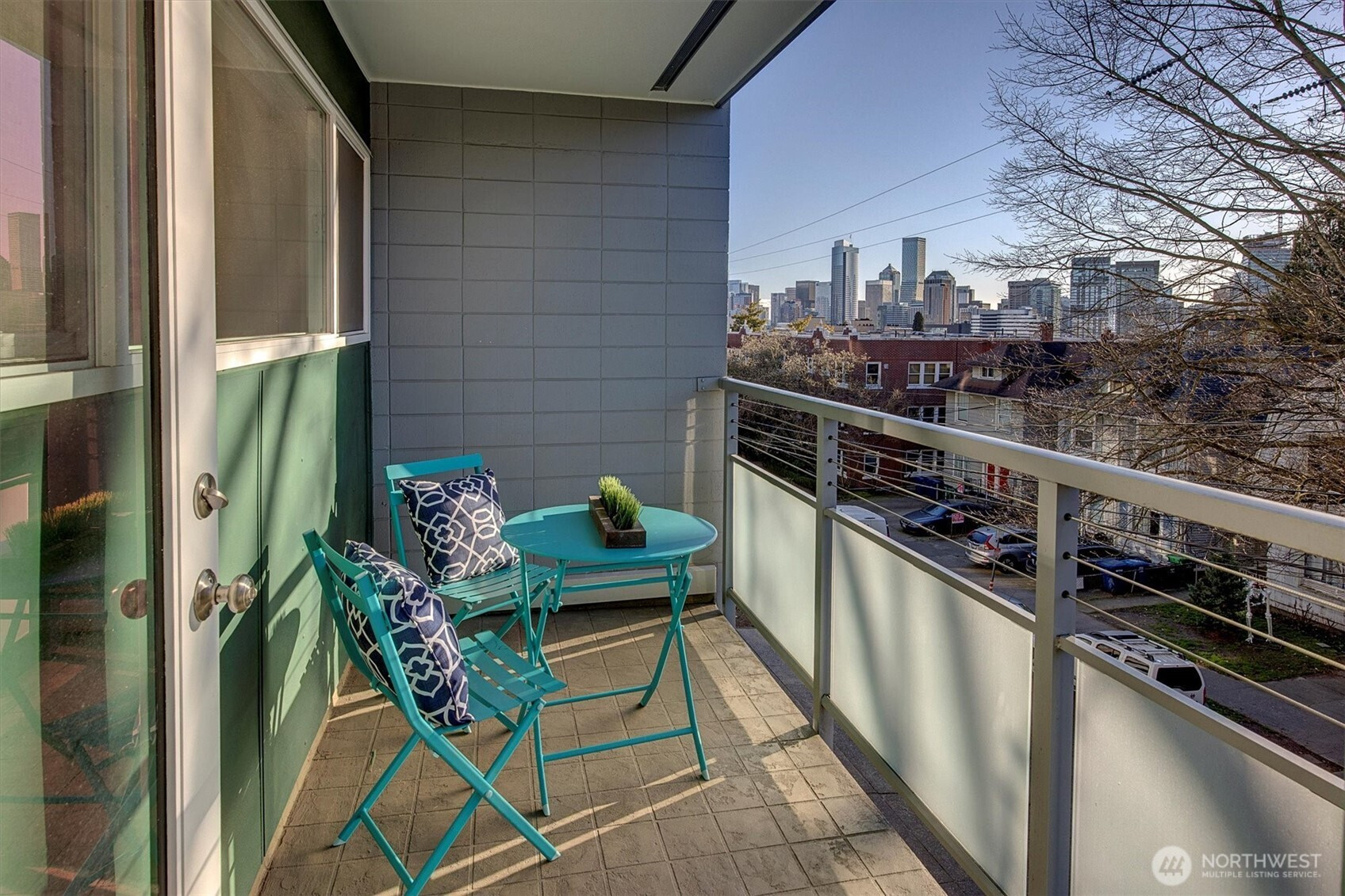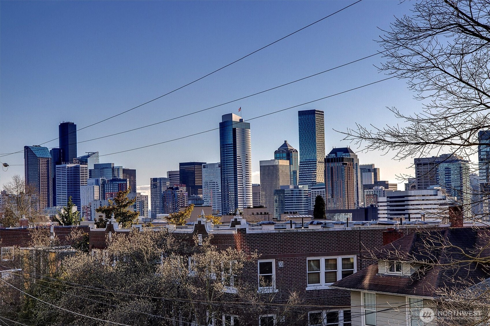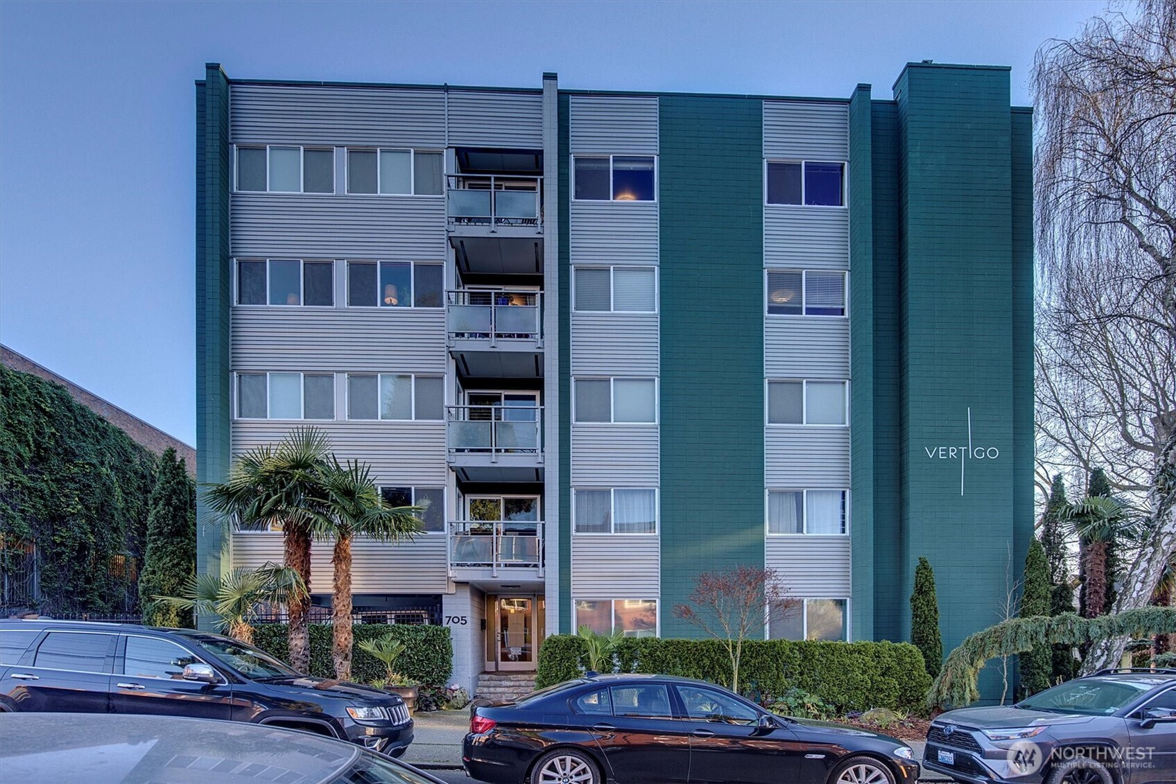 Chic light-filled west-facing Vertigo condo offers the best of urban living on the crest of Capitol Hill. Third floor one-bedroom unit boasts bamboo floors, granite counters, spacious bedroom & in-unit W/D. Open concept living/dining features glass slider to covered veranda with western city views. Rooftop deck with panoramic views of Seattle, Sound & Olympics. Full exterior renovation in 2019: siding, windows, deck rails & roof. Amenities include secure lobby, elevator, fitness room, bike storage, and private storage. Steps from Broadway’s vibrant bars, restaurants, shopping, and Capitol Hill light rail station. Well-managed HOA with low dues, pet friendly & no rental cap makes this a fantastic investment opportunity. All assessments paid.
