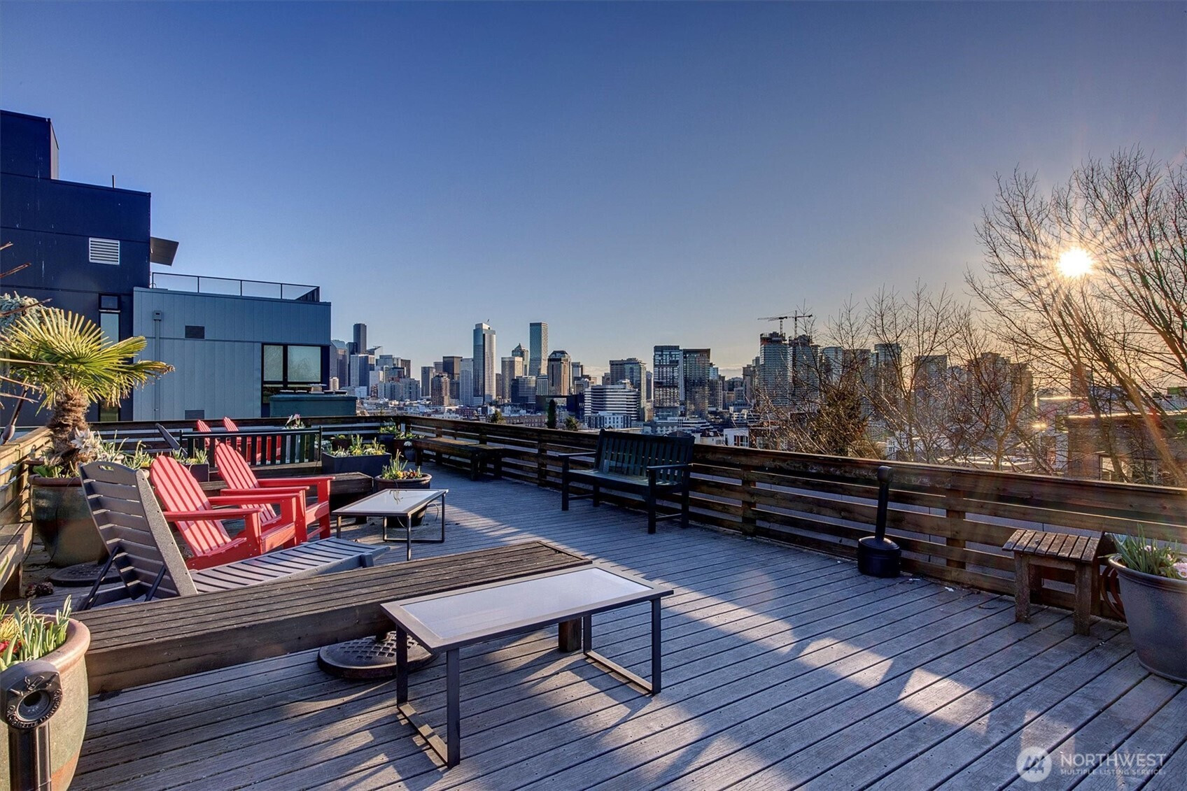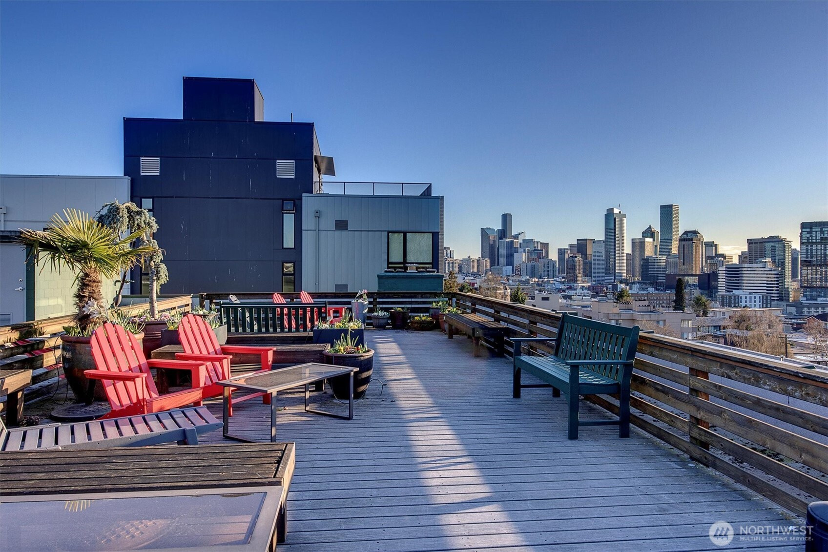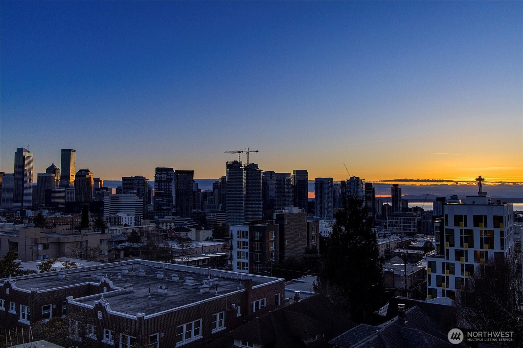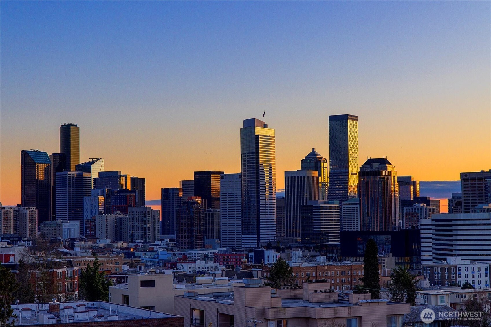 Chic light-filled west-facing Vertigo condo offers the best of urban living on the crest of Capitol Hill. Third floor one-bedroom unit boasts bamboo floors, granite counters, spacious bedroom & in-unit W/D. Open concept living/dining features glass slider to covered veranda with western city views. Rooftop deck with panoramic views of Seattle, Sound & Olympics. Full exterior renovation in 2019: siding, windows, deck rails & roof. Amenities include secure lobby, elevator, fitness room, bike storage, and private storage. Steps from Broadway’s vibrant bars, restaurants, shopping, and Capitol Hill light rail station. Well-managed HOA with low dues, pet friendly & no rental cap makes this a fantastic investment opportunity. All assessments paid.
