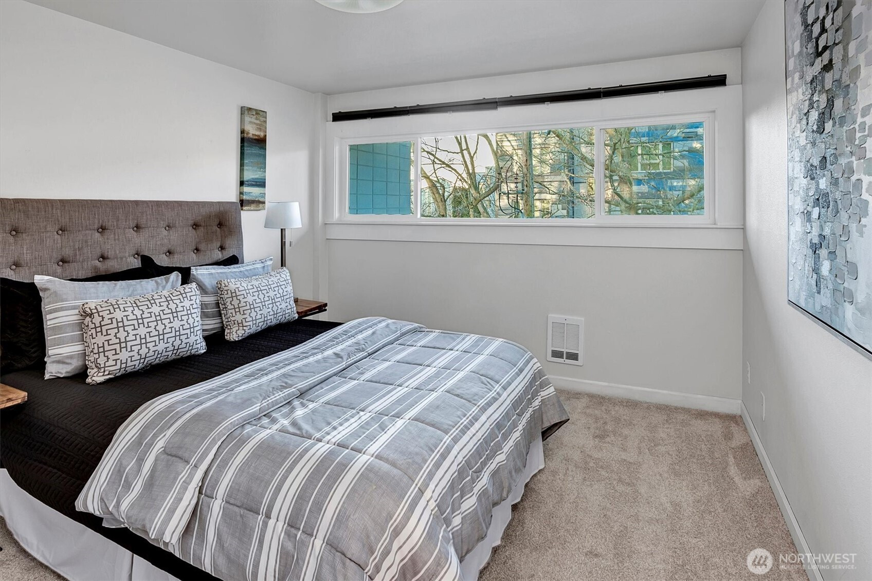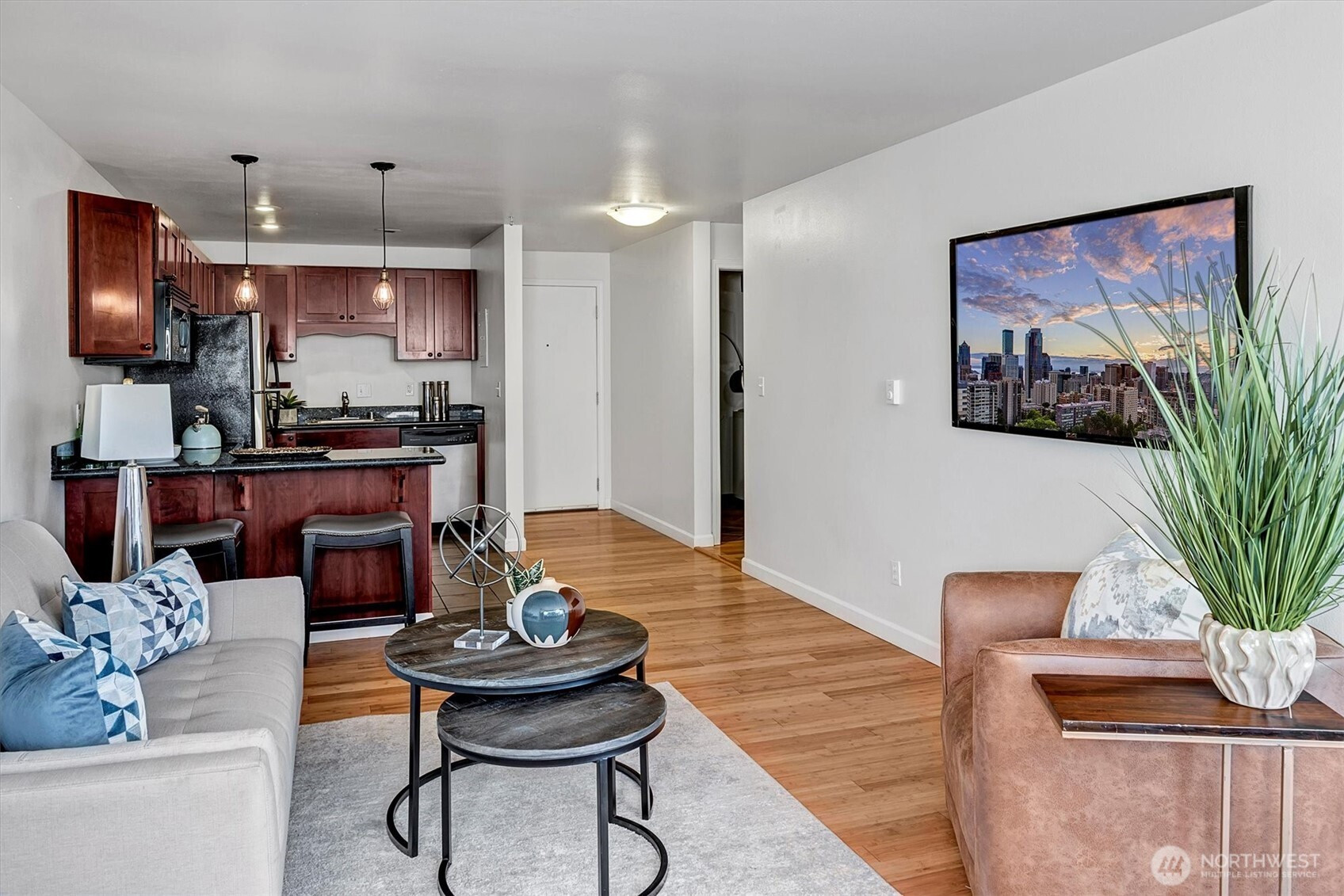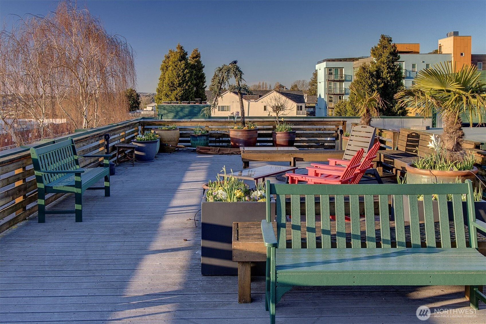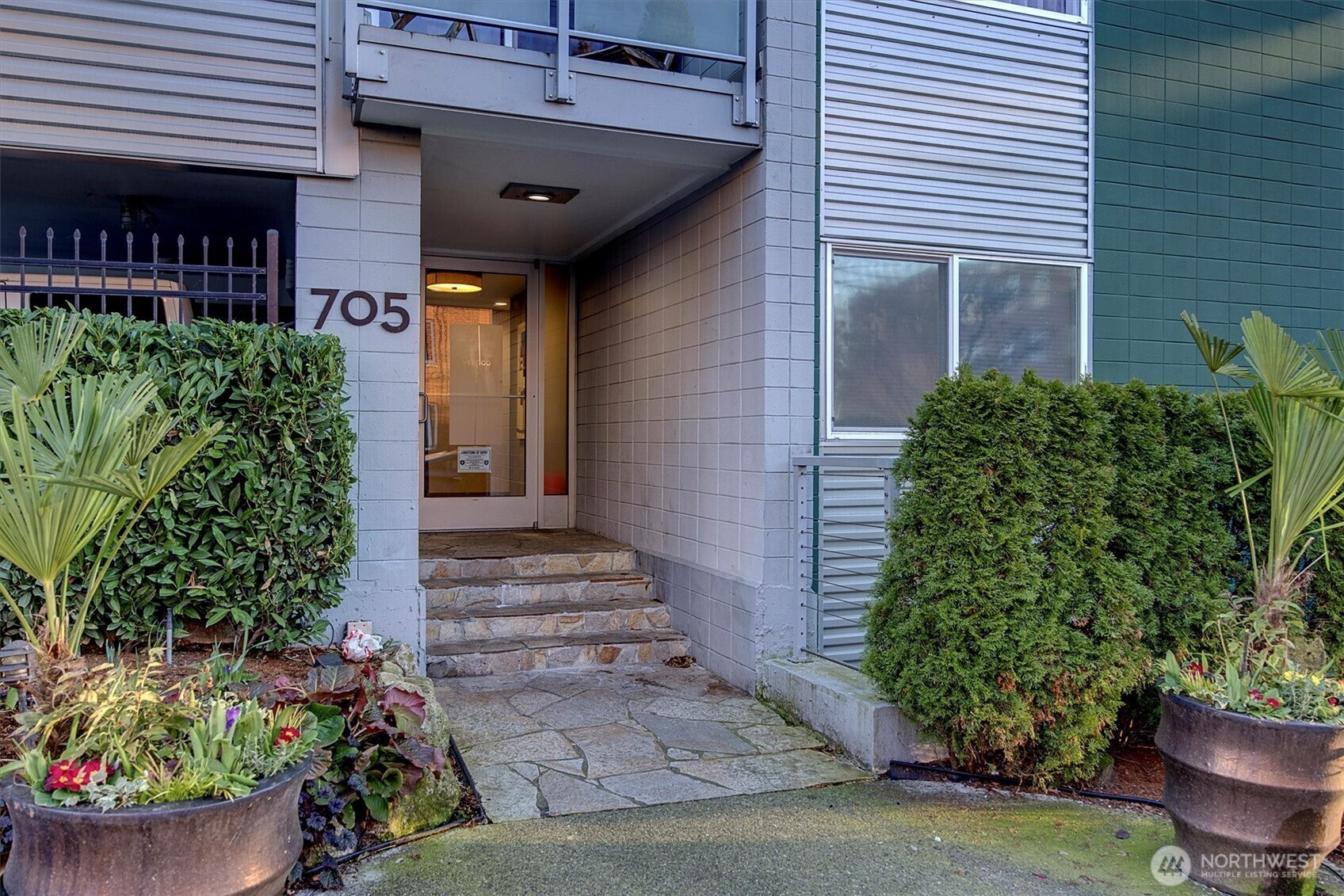 Chic light-filled west-facing Vertigo condo offers the best of urban living on the crest of Capitol Hill. Third floor one-bedroom unit boasts bamboo floors, granite counters, spacious bedroom & in-unit W/D. Open concept living/dining features glass slider to covered veranda with western city views. Rooftop deck with panoramic views of Seattle, Sound & Olympics. Full exterior renovation in 2019: siding, windows, deck rails & roof. Amenities include secure lobby, elevator, fitness room, bike storage, and private storage. Steps from Broadway’s vibrant bars, restaurants, shopping, and Capitol Hill light rail station. Well-managed HOA with low dues, pet friendly & no rental cap makes this a fantastic investment opportunity. All assessments paid.