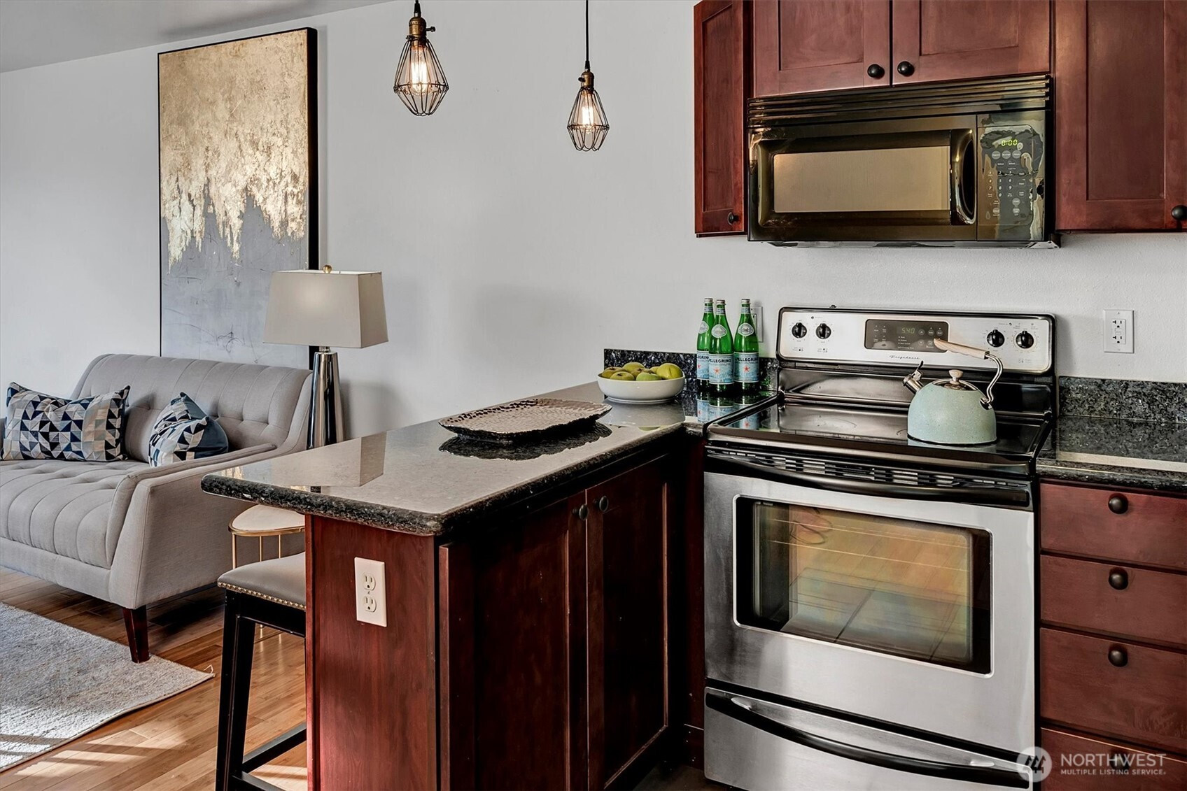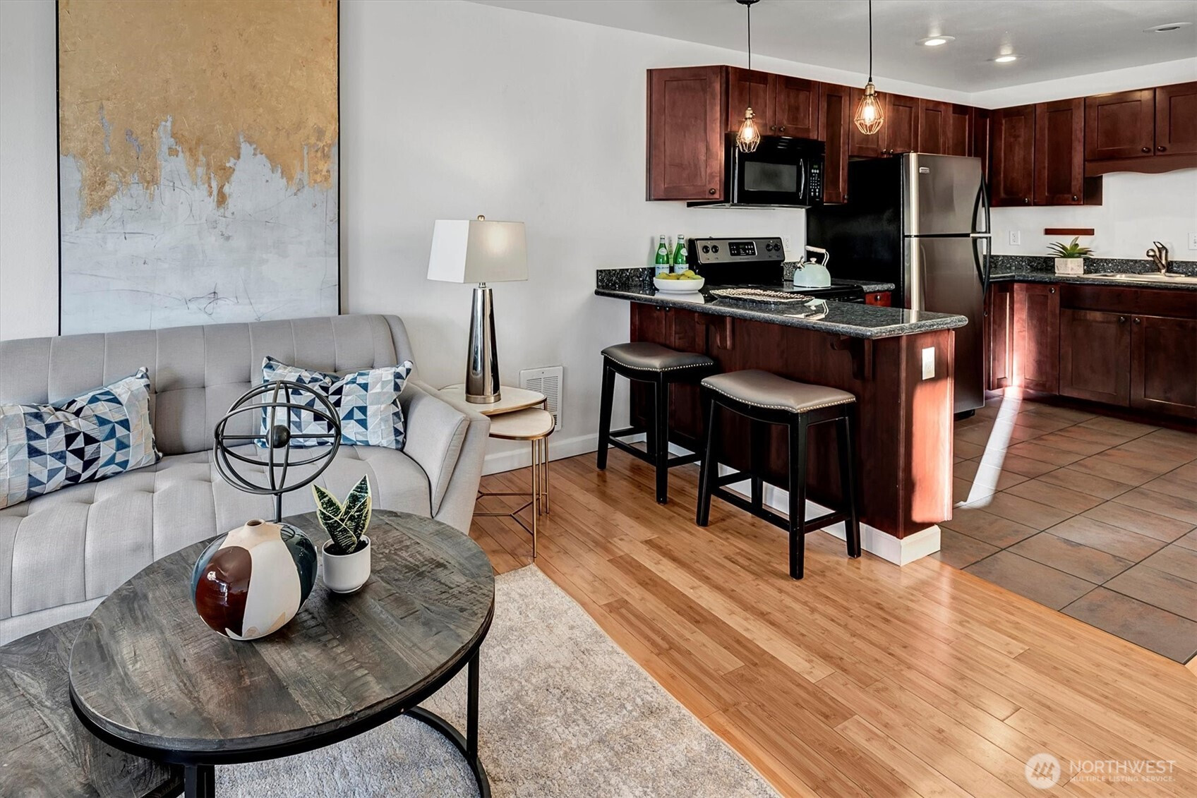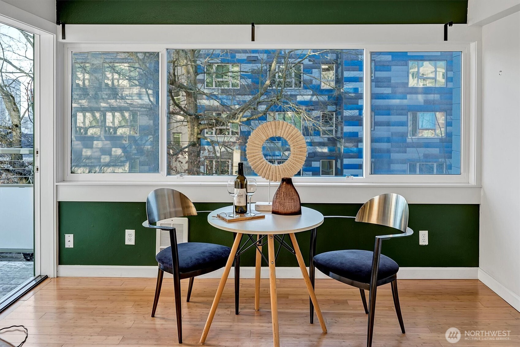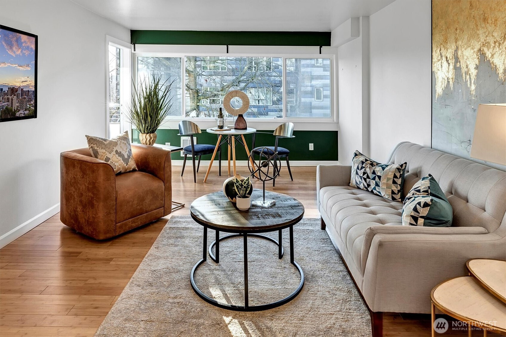 Chic light-filled west-facing Vertigo condo offers the best of urban living on the crest of Capitol Hill. Third floor one-bedroom unit boasts bamboo floors, granite counters, spacious bedroom & in-unit W/D. Open concept living/dining features glass slider to covered veranda with western city views. Rooftop deck with panoramic views of Seattle, Sound & Olympics. Full exterior renovation in 2019: siding, windows, deck rails & roof. Amenities include secure lobby, elevator, fitness room, bike storage, and private storage. Steps from Broadway’s vibrant bars, restaurants, shopping, and Capitol Hill light rail station. Well-managed HOA with low dues, pet friendly & no rental cap makes this a fantastic investment opportunity. All assessments paid.