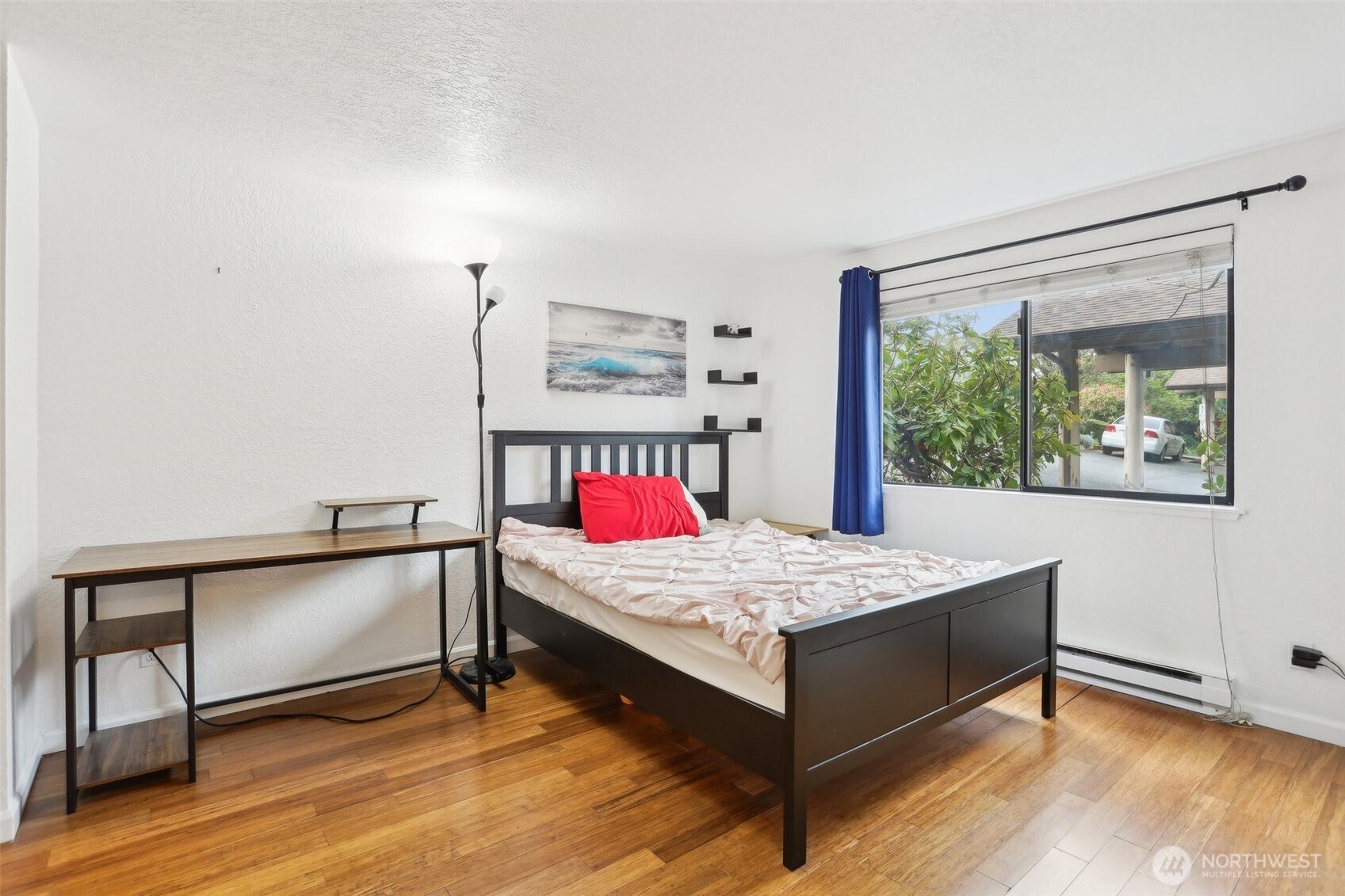 LOWEST HOA | GROUND FLOOR | DOWNTOWN BELLEVUE | FURNISHED & UPDATED CORNER UNIT | PUBLIC TRANSPORT at Doorstep | UNBEATABLE PRICE. This beautifully renovated condo is move-in ready offering ground floor access, washer/dryer, large patio, fireplace, extra external storage, large windows, furniture & two dedicated parking spots. Recent updates include new paint, ss appliances, LVP flooring, modern light fixtures & remodeled bathrooms. Roof & water heater 6 years old. Bus line B stops right outside. Tech companies, downtown shopping & dining are all within 2 miles. Stable HOA with no increases & special assessment is lowest in the area. Rentable after 2 years or immediately with a roommate. Motivated Seller, HURRY as THIS WONT LAST LONG!