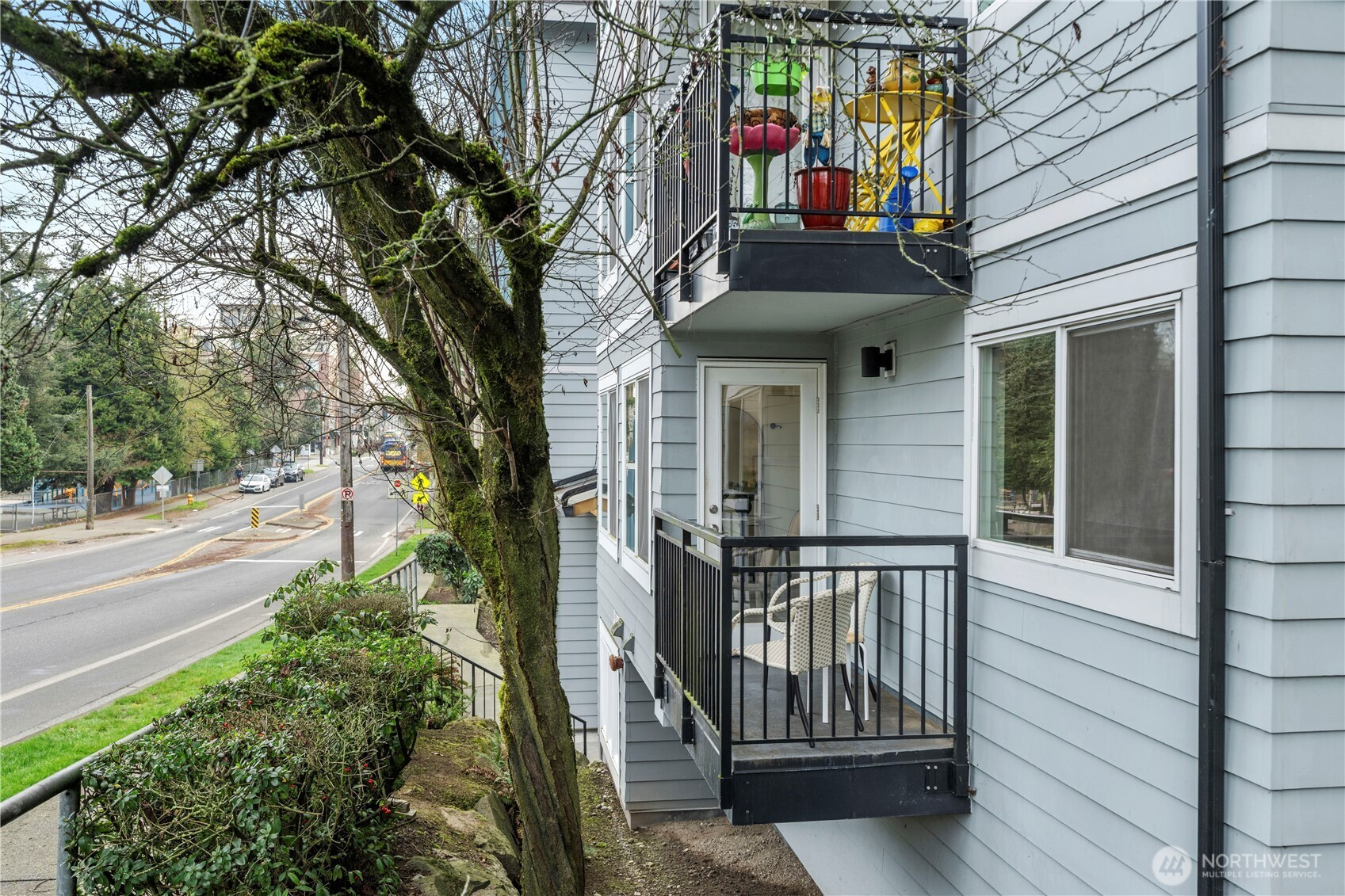 Bursting with natural sunlight this one level corner unit overlooks the park with a private balcony. Remodeled kitchen in 2024 features quartz countertops, stainless appliances and soft close white shaker cabinets along with new luxury plank flooring bringing the modern touch to this home. 2nd floor unit with no other units under this unit. Plenty of storage, both in the unit and with an extra storage cage. Secure access building with an elevator and secure garage parking. Your plants will thrive here. Easy commuter options along the bus line and quick access to I-5 and Aurora for getting downtown.