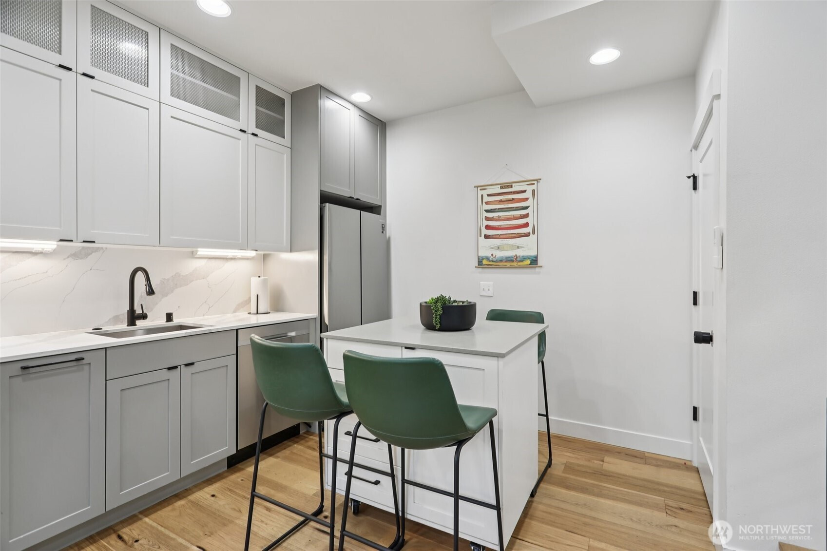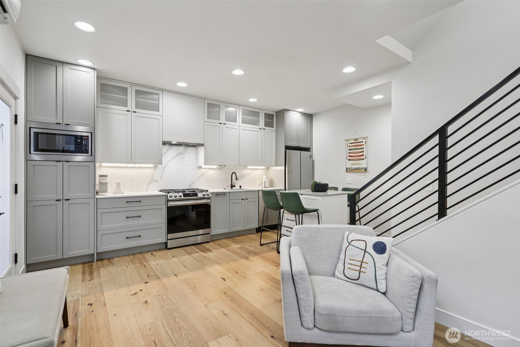 Ideally situated between Lower Queen Anne and Fremont, this thoughtfully crafted home by local builder Ashworth Homes blends modern design with everyday functionality. Subtle yet impactful details enhance comfort throughout, stunning floor-to-ceiling cabinetry, floating island, elevated windows designed to maximize natural light while maintaining privacy, and mini-split systems for year-round comfort. The open living spaces create a seamless flow, perfect for both relaxing and entertaining. Upstairs, two bright guest bdrms are positioned for added privacy, complemented by polished bathrooms with stylish finishes. The primary suite offers a true retreat, featuring a walk-in closet and a private bath for added convenience. Enjoy outdoor living from the rooftop deck, where you’ll find stunning views and vibrant sunsets to the west. Ample street parking and minutes to SPU, Burke Gilman and Seattle's finest local dining, shopping, and entertainment. With no rental cap and short-term rentals allowed, it’s perfect for investors or anyone seeking flexibility or rental income. Urban lifestyle, smart investment, stellar location complete the appeal of this well-appointed home.