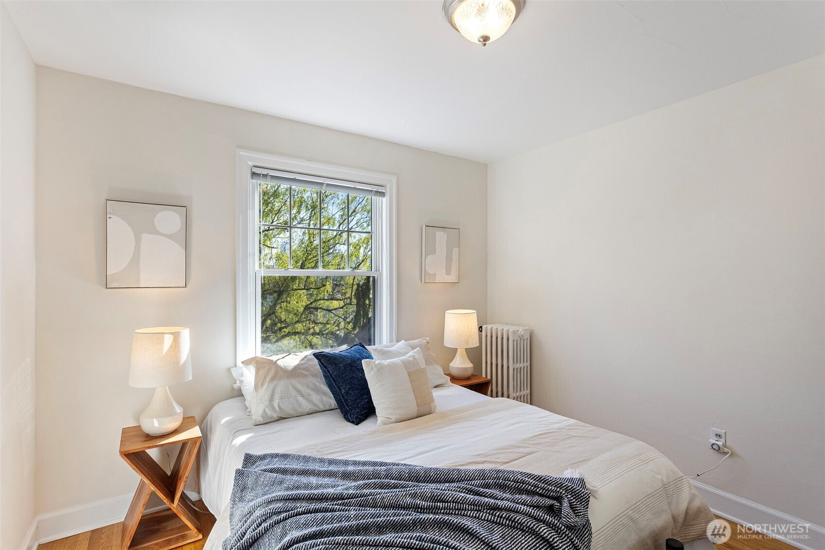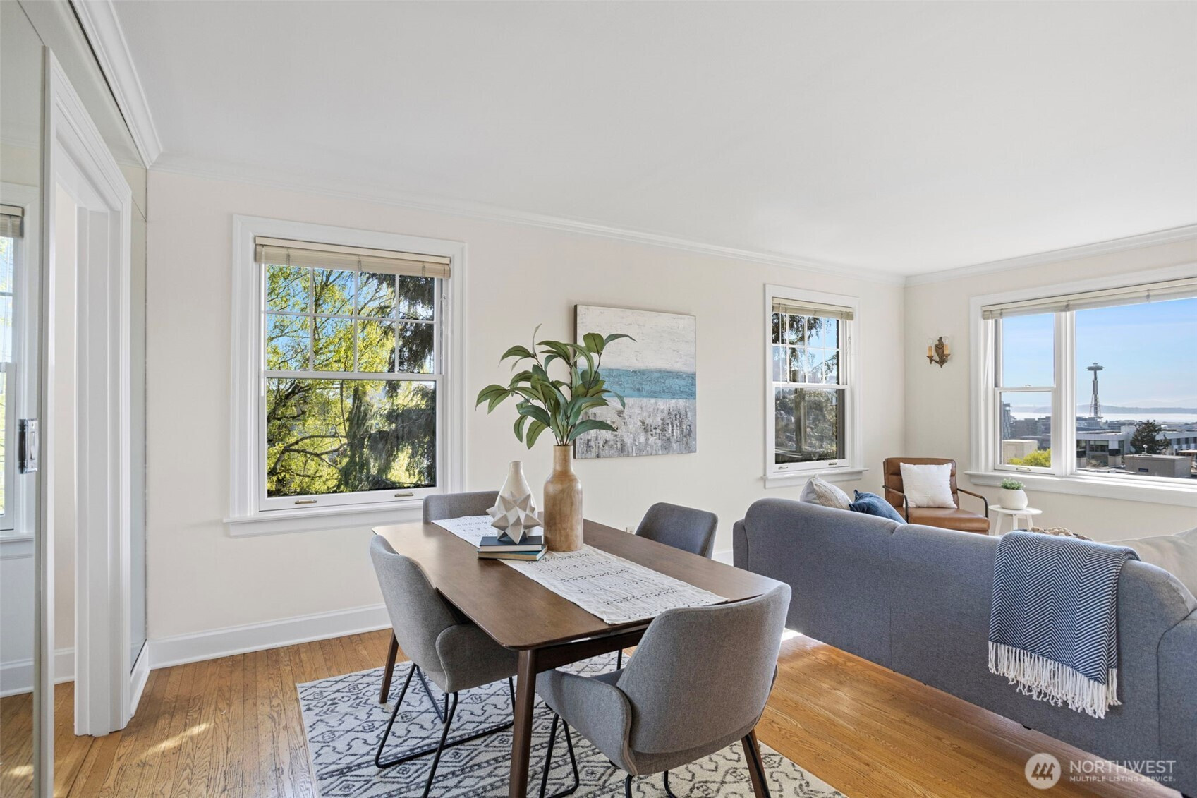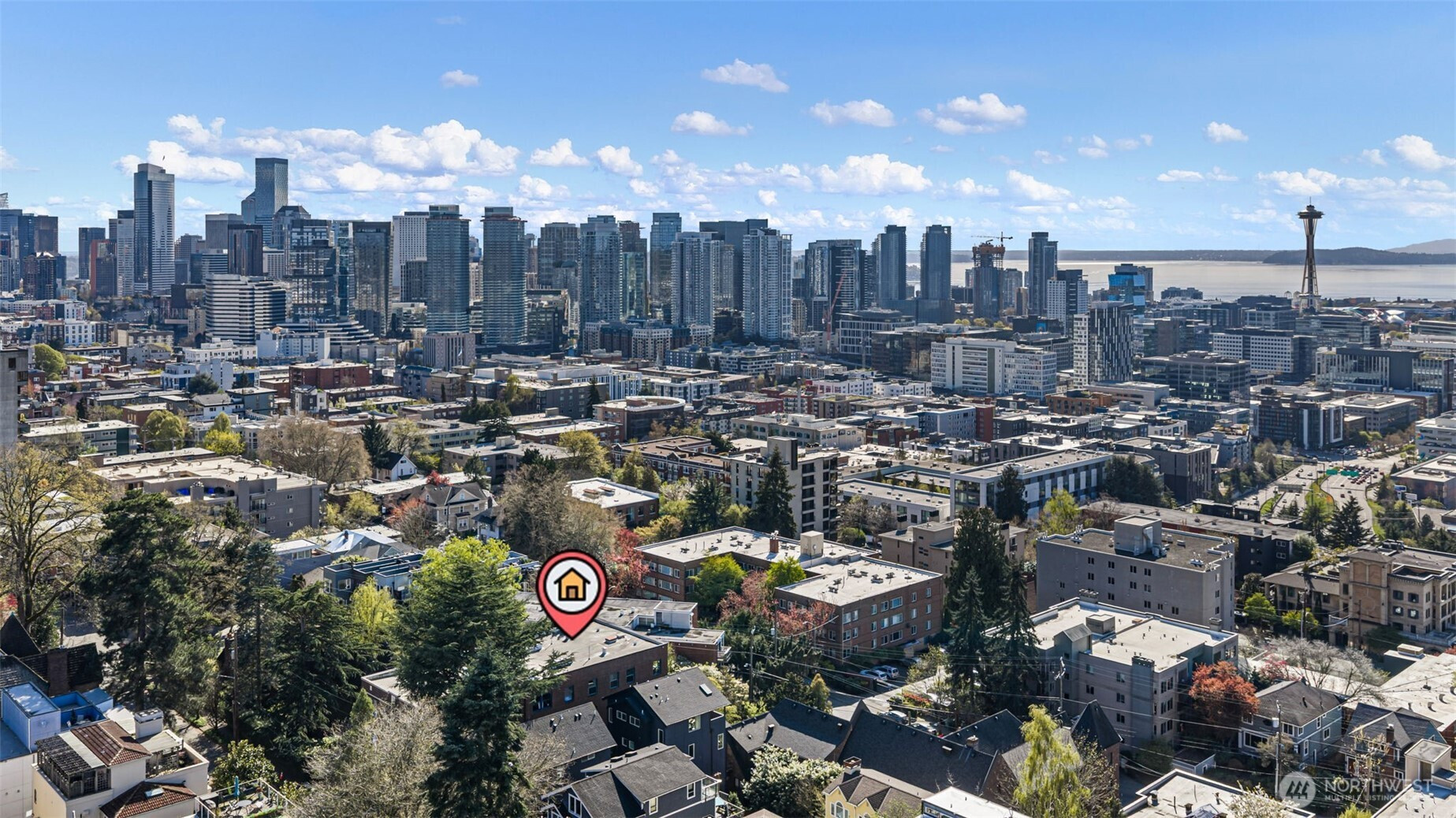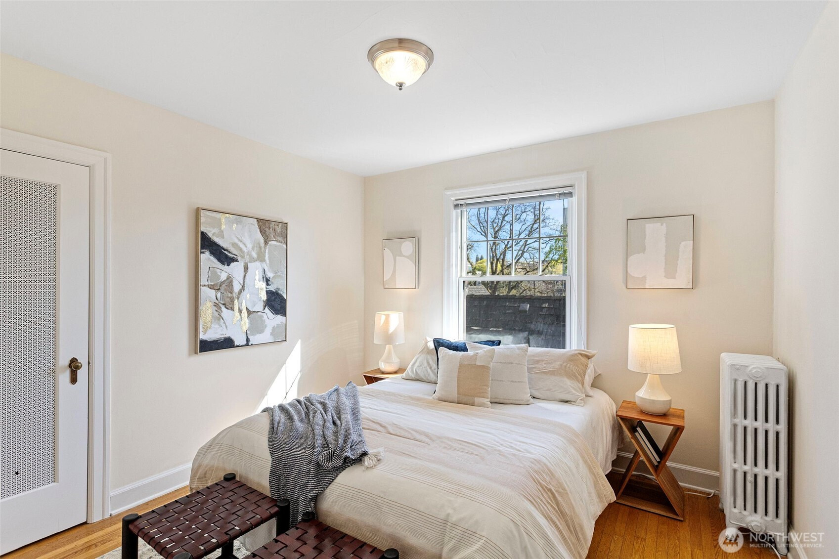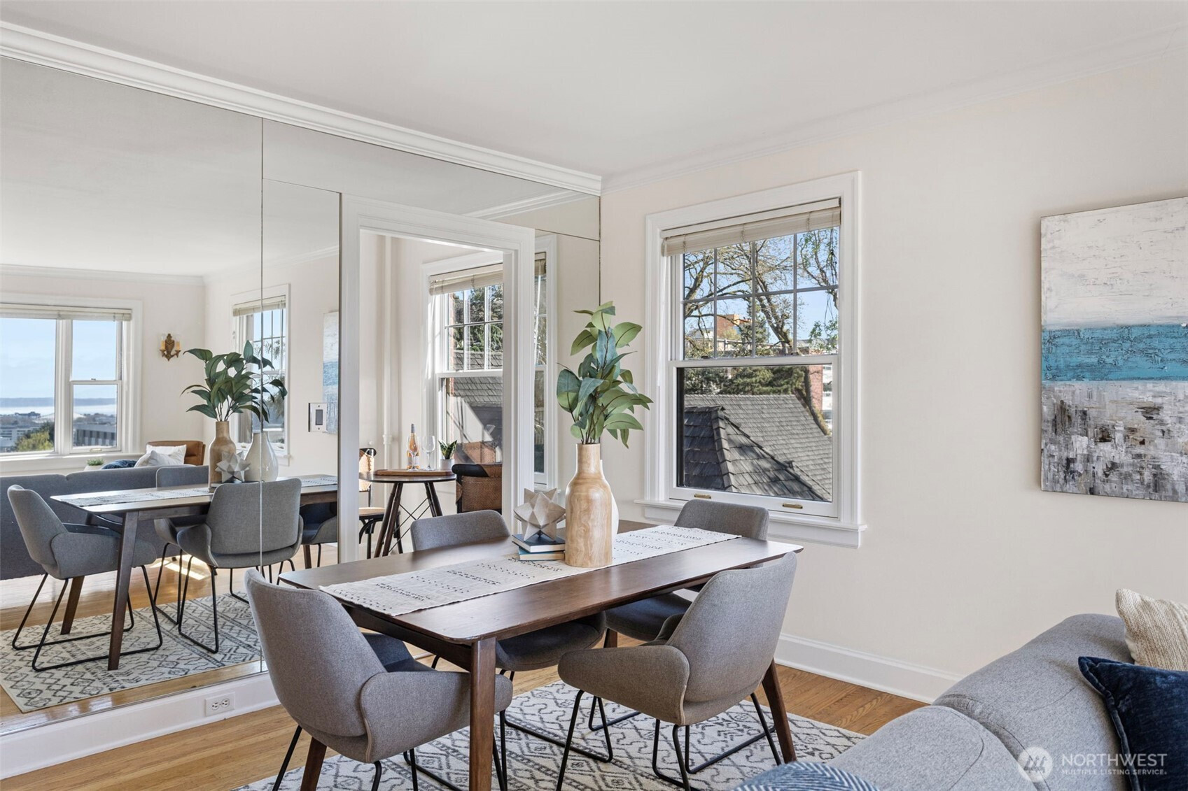 Experience the Bellemoral's “Gold Coast,” where abundant western light fills expansive windows, revealing inspired views of Lake Union, the Olympic Mountains, Elliott Bay, Seattle’s skyline, & beyond. Unit 304 is a spacious 711 sf, top-floor corner unit with just one shared wall. As you enter through the foyer, you’ll find a living & dining area featuring high ceilings, hardwood floors, an arched passage & a versatile alcove, & those views! The kitchen has tile countertops, ample cabinets, & an inviting eating area with a view of greenery & the city. Down the hall, you’ll discover a tiled bath with original floors, a pedestal sink & a relaxing tub. The generous bedroom offers a nicely sized closet and a peaceful outlook. Nestled in Capitol Hill’s Historic Harvard District, the 1927 Bellemoral Co-op is surrounded by beautiful homes. Everything you need is nearby: incredible restaurants, cafes, shops, Volunteer Park, groceries, schools, nightlife, transit, & light rail. Enjoy the convenience of monthly fees that cover all utilities except electricity, including taxes and insurance. Monthly fees include: HOA Fees & Taxes & Insurance. This well-managed building also features a resident caretaker. Cats & service dogs welcome. For those in need of parking, there is no waitlist for a garage spot, available for just $70 a month. Whether you seek vibrant activities or quieter moments, this location allows you to choose both for an ideal lifestyle.