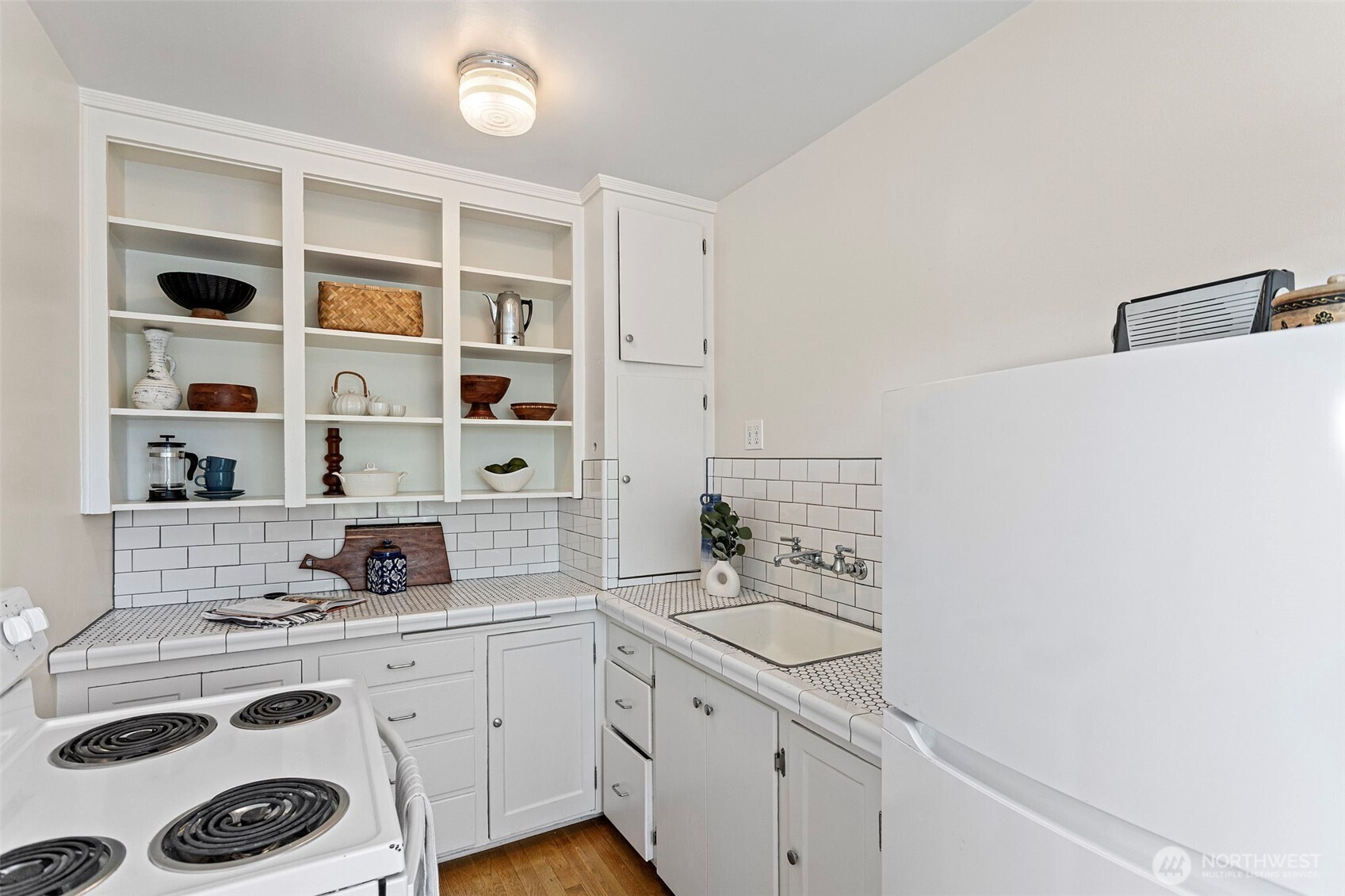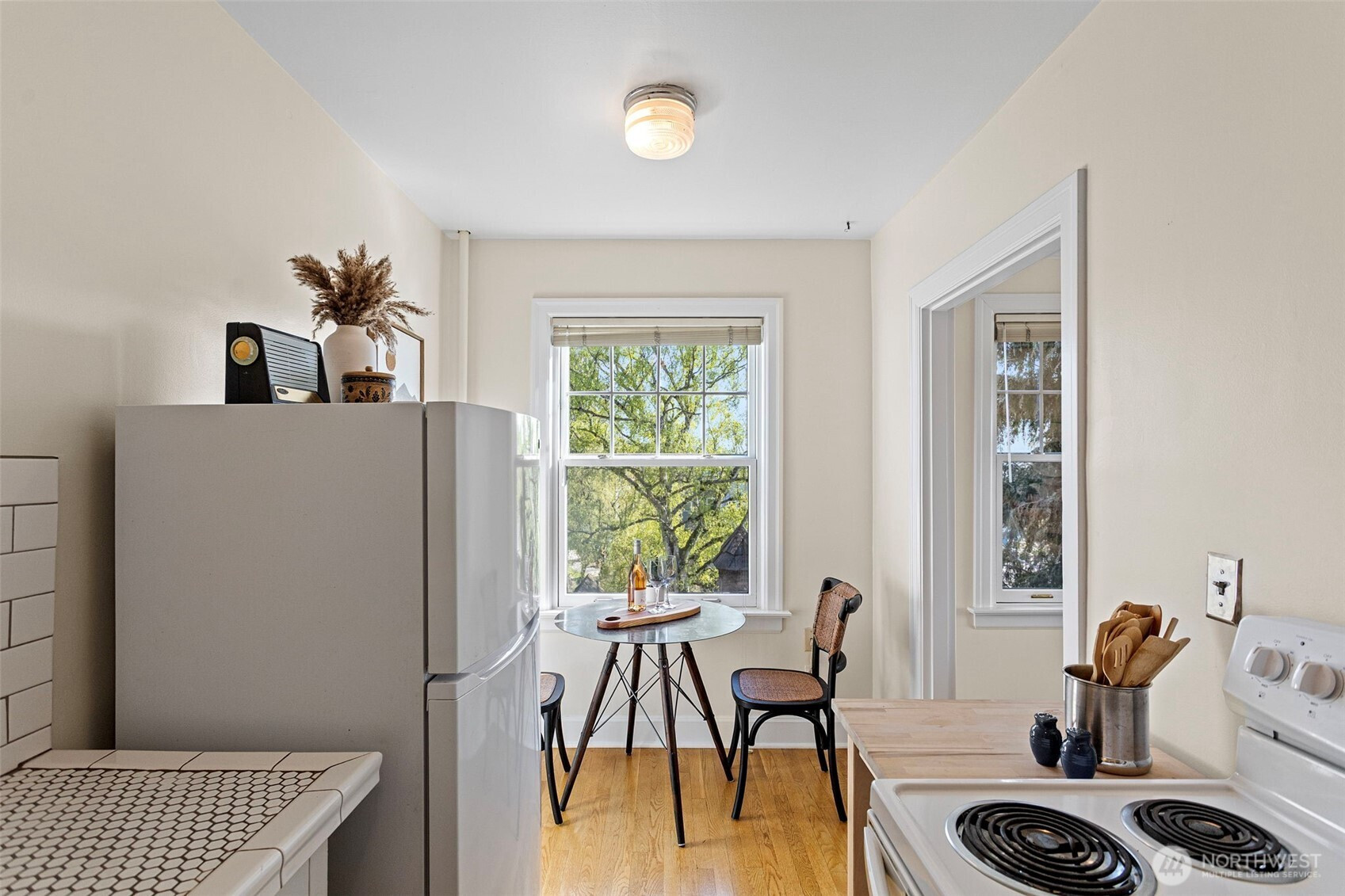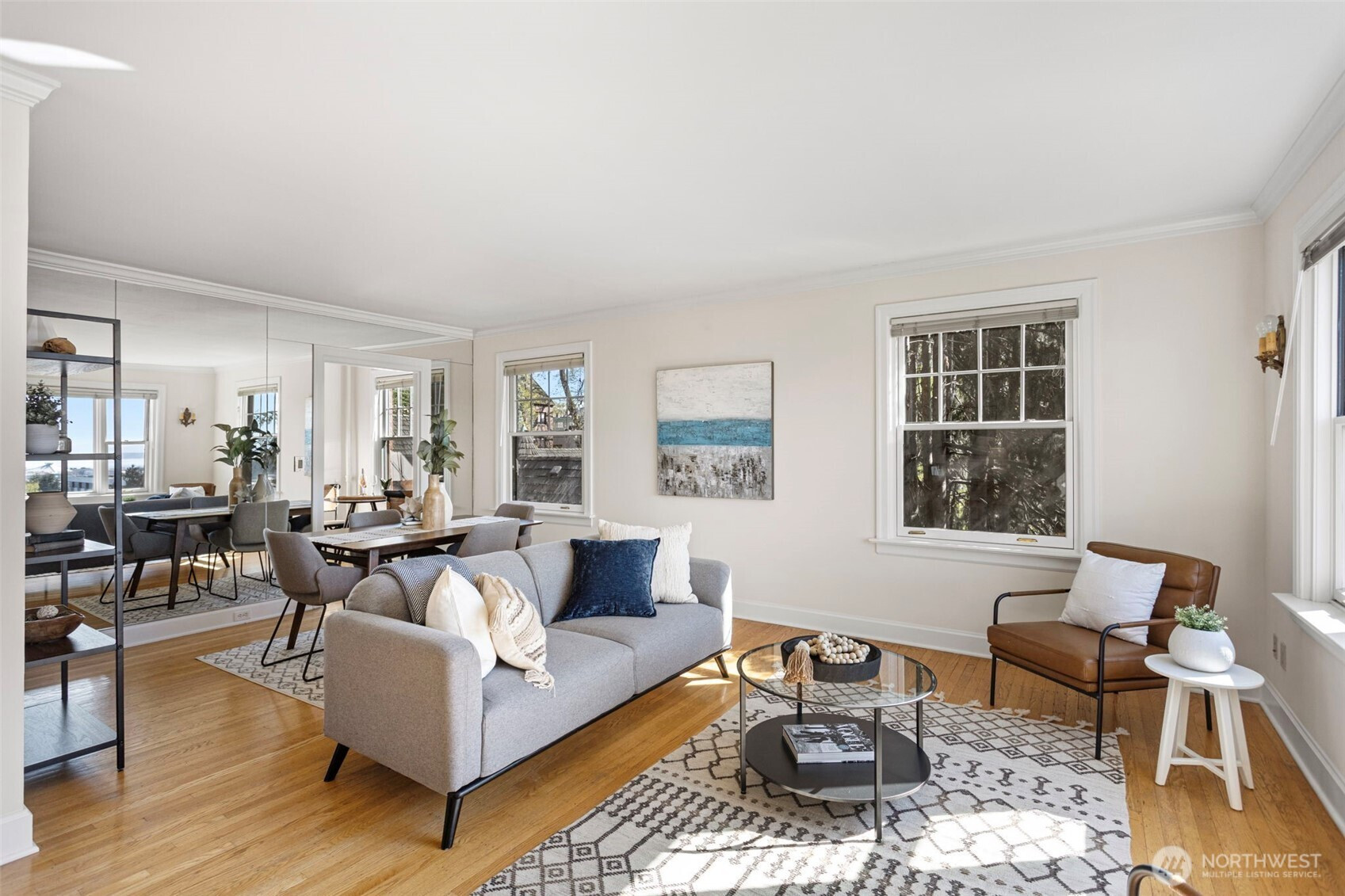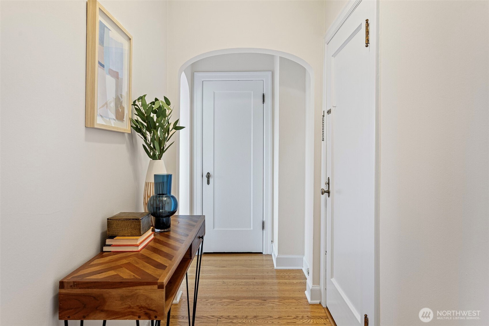 Experience the Bellemoral's “Gold Coast,” where abundant western light fills expansive windows, revealing inspired views of Lake Union, the Olympic Mountains, Elliott Bay, Seattle’s skyline, & beyond. Unit 304 is a spacious 711 sf, top-floor corner unit with just one shared wall. As you enter through the foyer, you’ll find a living & dining area featuring high ceilings, hardwood floors, an arched passage & a versatile alcove, & those views! The kitchen has tile countertops, ample cabinets, & an inviting eating area with a view of greenery & the city. Down the hall, you’ll discover a tiled bath with original floors, a pedestal sink & a relaxing tub. The generous bedroom offers a nicely sized closet and a peaceful outlook. Nestled in Capitol Hill’s Historic Harvard District, the 1927 Bellemoral Co-op is surrounded by beautiful homes. Everything you need is nearby: incredible restaurants, cafes, shops, Volunteer Park, groceries, schools, nightlife, transit, & light rail. Enjoy the convenience of monthly fees that cover all utilities except electricity, including taxes and insurance. Monthly fees include: HOA Fees & Taxes & Insurance. This well-managed building also features a resident caretaker. Cats & service dogs welcome. For those in need of parking, there is no waitlist for a garage spot, available for just $70 a month. Whether you seek vibrant activities or quieter moments, this location allows you to choose both for an ideal lifestyle.