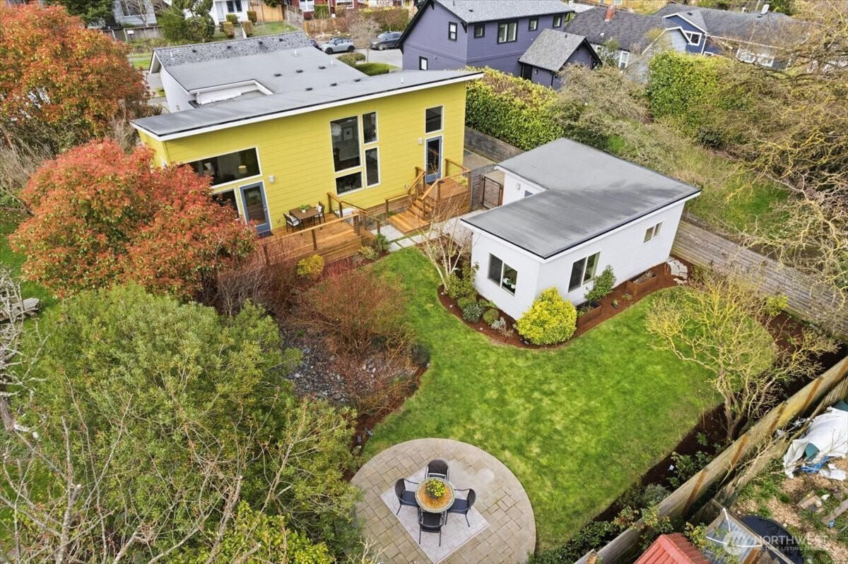 Architecturally striking with dramatic ceilings and walls of glass, this beautifully maintained Green Canopy custom home lives like new construction with high-end finishes throughout. The open-concept design is filled with natural light and offers seamless indoor-outdoor flow, creating an ideal setting for both everyday living and entertaining. The sleek chef’s kitchen features Bosch appliances, generous storage, and a large island that anchors the main living and dining areas. The oversized primary suite offers a private retreat with a spa-inspired bath, custom tile work, and a large walk-in closet. A versatile loft provides flexible space for a home office or potential fourth bedroom. The lower level includes two additional bedrooms with a Jack and Jill bath and a separate family room, well suited for guests or multi-generational living. A fully finished detached DADU is heated, powered, and built to a high standard, offering flexibility as a private office, gym, guest retreat, or potential income-producing space. Set on expansive, usable grounds with manicured landscaping, the property features paver patios and two decks designed for relaxation and entertaining. A long driveway leads to a detached finished garage with additional storage. Built 4-Star Green, the home emphasizes energy efficiency and sustainable design.