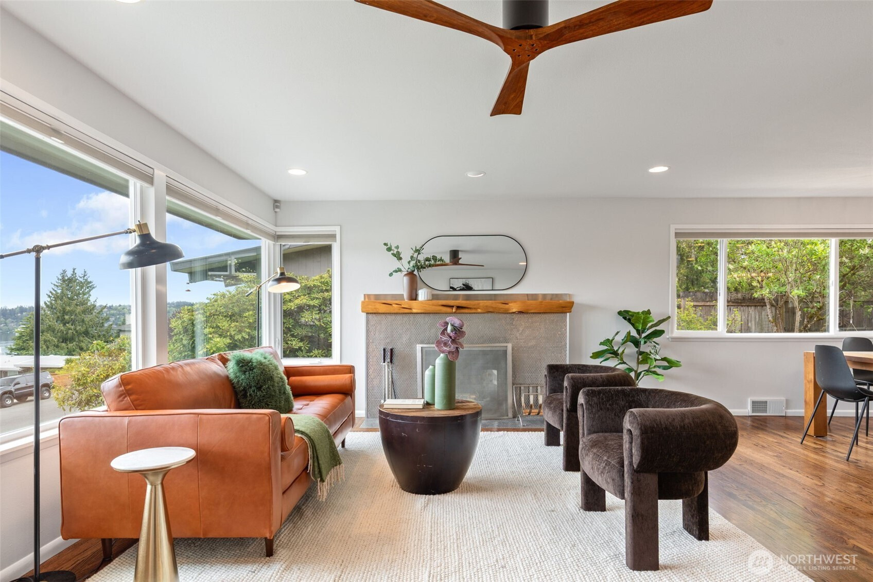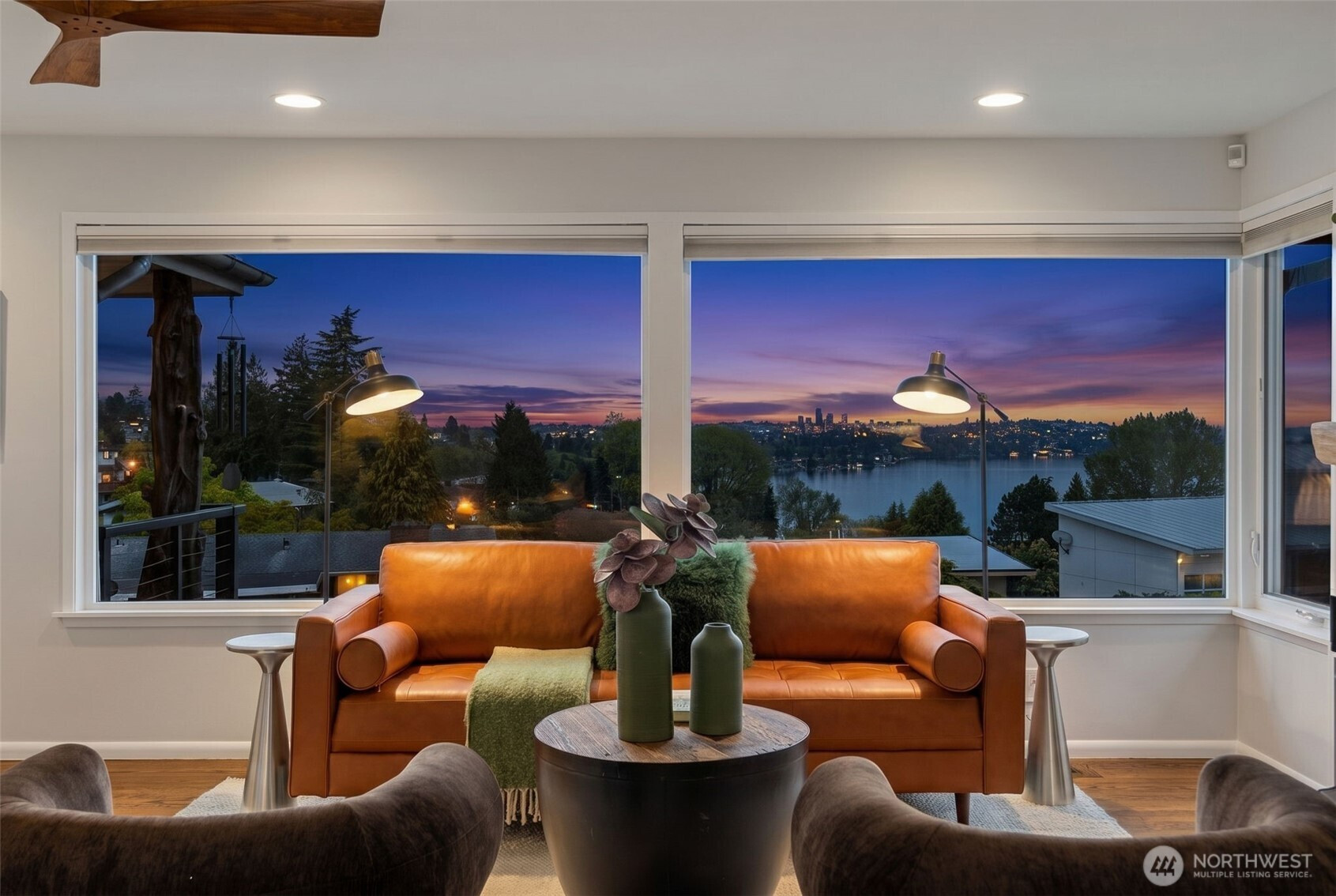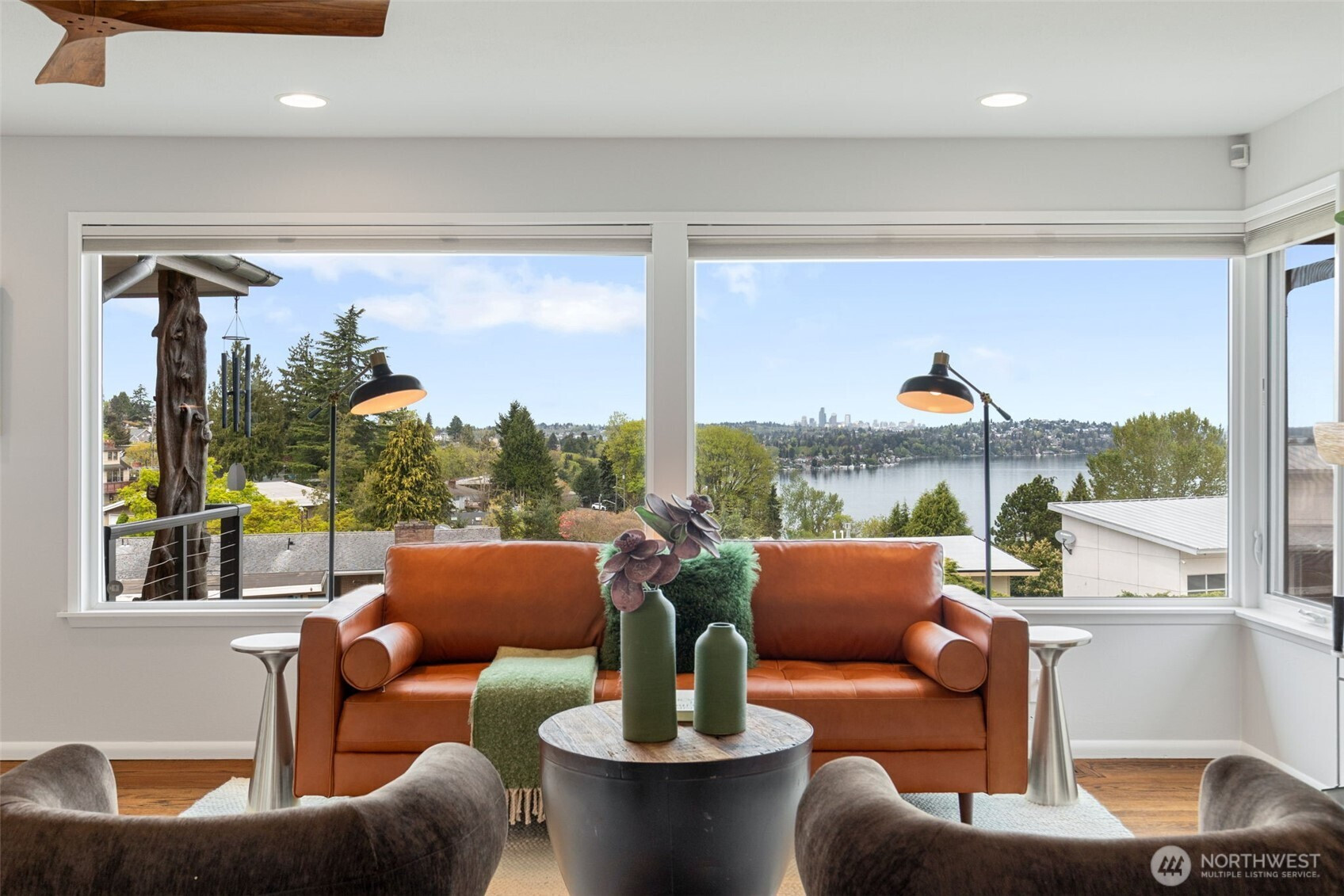 Perched in the desirable Lakeridge neighborhood, 7127 S Sunnycrest Rd offers a rare blend of Lake Washington views, abundant natural light, and a peaceful residential setting just minutes from the city. From the moment you arrive, the home’s northern orientation welcomes soft, consistent daylight that brightens the interiors and creates an inviting atmosphere from morning to evening. Expansive windows capture water, city, and territorial vistas, creating a seamless connection to the surrounding landscape and enhancing the home’s open, airy character. Inside, a thoughtful balance of comfort and functionality defines the space, featuring an updated kitchen and baths, well-proportioned living areas, and a layout designed for both daily living and effortless entertaining. The lower level expands the home’s versatility with a spacious bonus room, an attached garage equipped with an electric vehicle charger, and a dedicated workshop ideal for creative pursuits or a work-from-home setup. Outdoor areas provide space to unwind, garden, or gather, all within a quiet, tucked-away neighborhood that feels like a true retreat. This setting is complemented by convenient access to Lake Washington, Kubota Garden, nearby parks, Renton Landing and Georgetown along with straightforward commutes to Downtown Seattle and the Eastside.