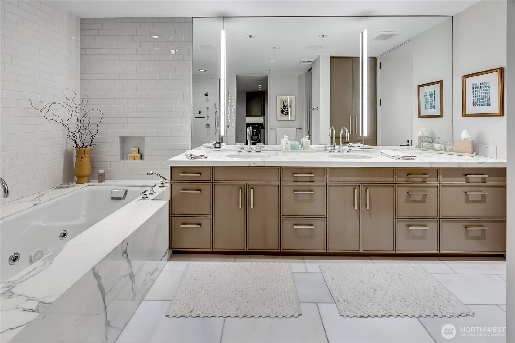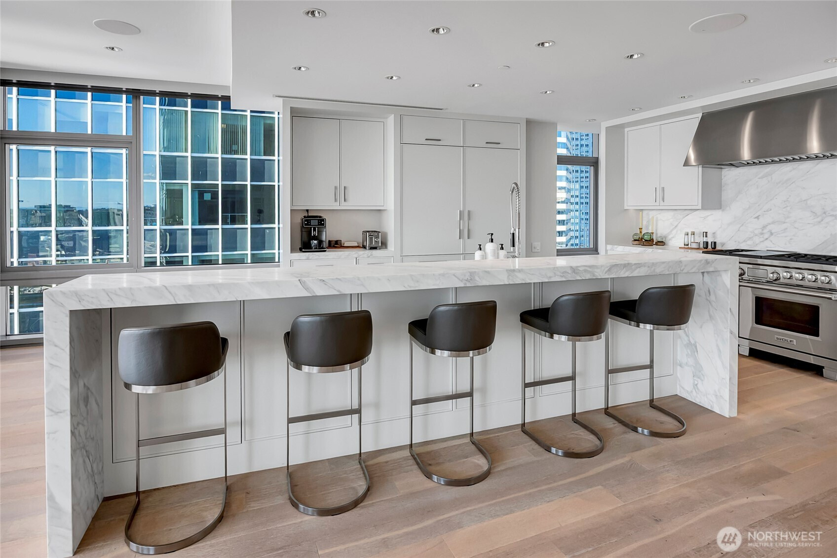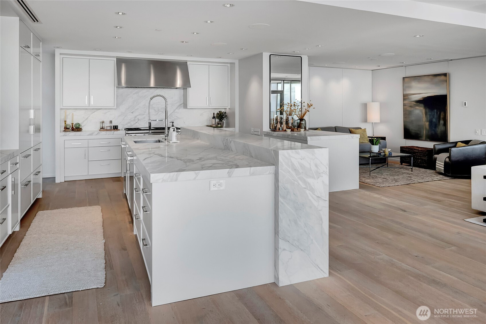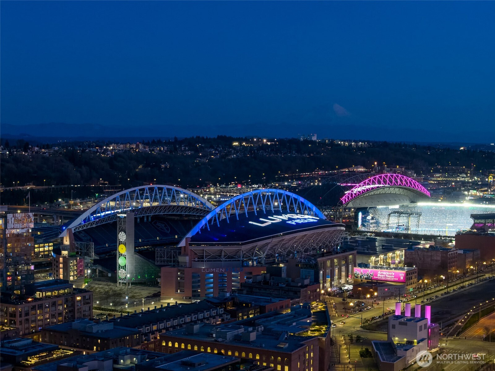 This is the epitome of an active "close the door and go" lifestyle. Elevated above the heart of Downtown Seattle, this striking residence at Millennium Tower delivers front row views of Elliott Bay, the Olympic Mountains and the glittering city skyline. Wrapped in dramatic walls of glass, the home is bathed in natural light from sunrise to sunset, creating a sophisticated yet inviting retreat in the sky. Thoughtfully designed by Olson Sundberg Kundig this property works for both entertaining and everyday comfort. The entire property has been beautifully renovated with wide plank hardwood floors, open living and dining spaces that flow seamlessly to a rare private terrace. Its the perfect spot for outdoor dining, evening cocktails or simply taking in the sweeping water and mountain vistas. Refined details add warmth and texture throughout. The chef’s kitchen anchors the space with style and functionality. Slab Carrara marble, Subzero, Wolf. A dedicated office offers an ideal work from home environment. The primary suite is a serene sanctuary featuring a spa caliber bath and walk in closet that feels like pure luxury. A beautifully appointed guest suite with private bath ensures comfort for visitors. Two secure parking spaces complete the offering. Just steps from the revitalized Seattle waterfront, Pike Place Market, Mariners, Sounders, Seahawk games, acclaimed restaurants, arts venues and boutique shopping. This is luxury urban living at its most vibrant!