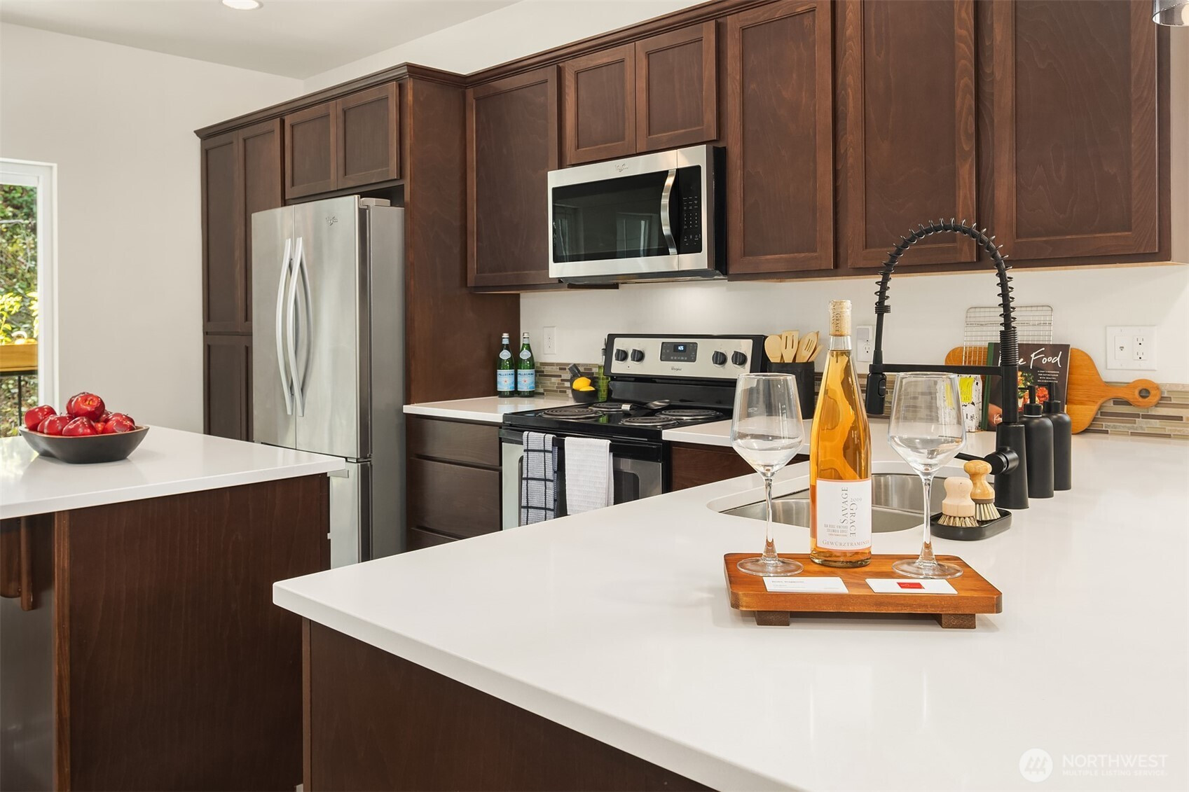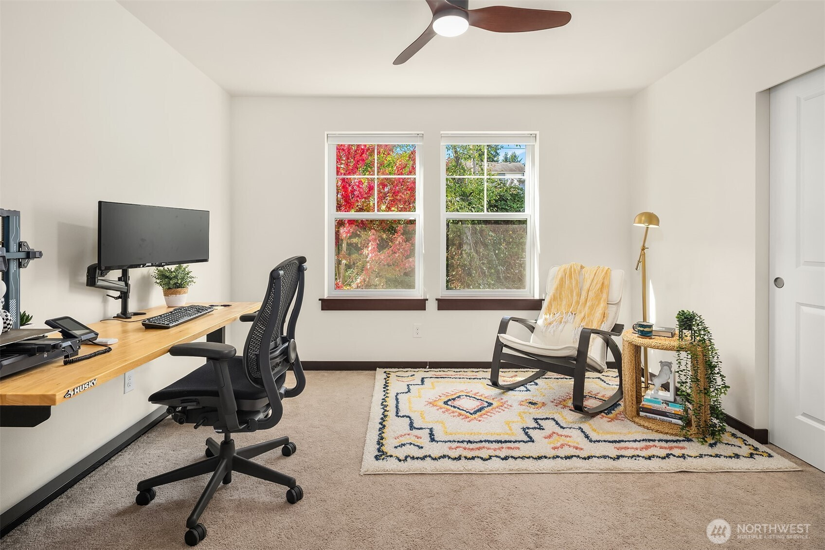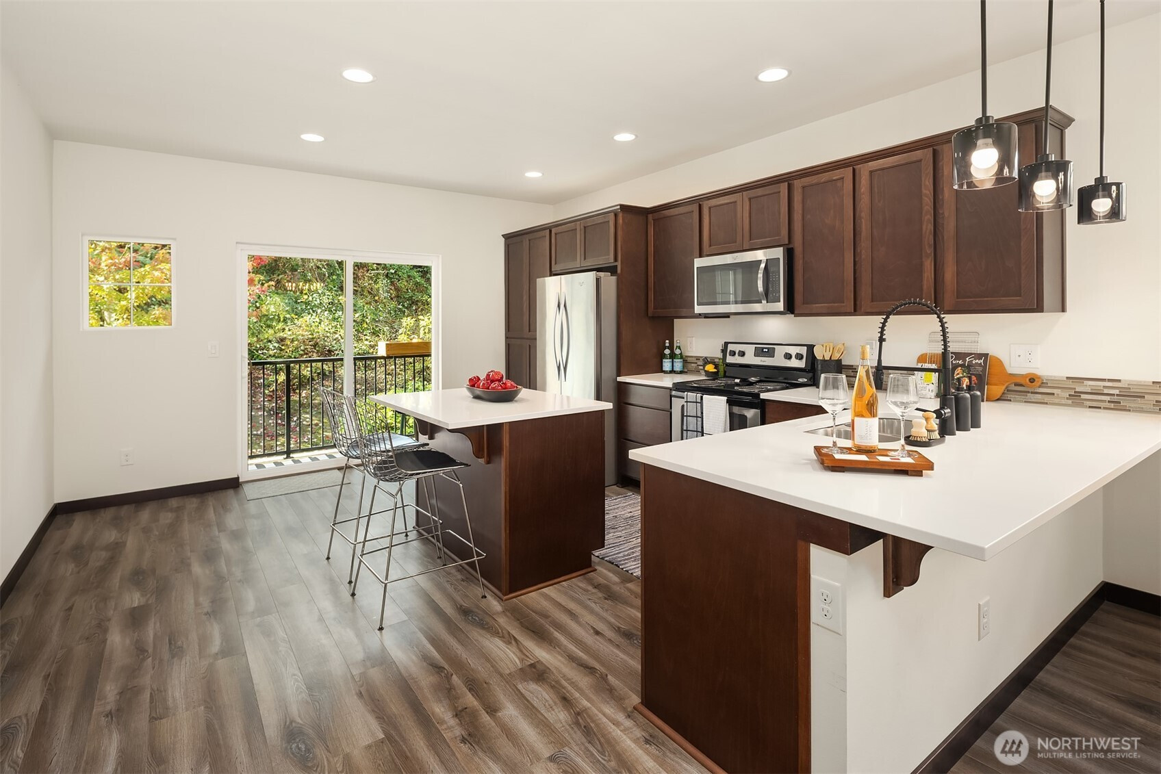 Welcome to Sylvan Ridge, a hidden gem in the heart of West Seattle where community charm meets modern convenience. This storybook end-unit townhome offers an open main floor that showcases a spacious kitchen with island, stainless steel appliances, and ample countertop space, flowing seamlessly to the dining room and outdoor deck. Upstairs, find the primary suite with ¾ bath plus a second bedroom or office with its own full bathroom. The lower level includes a large two-car garage with storage and additional driveway parking. Refreshed interior, modern conveniences, and thoughtful layout make this home a must see! Conveniently located minutes from the Junctions, Lincoln Park, Alki Beach, shopping, dining, and a quick commute into Seattle!