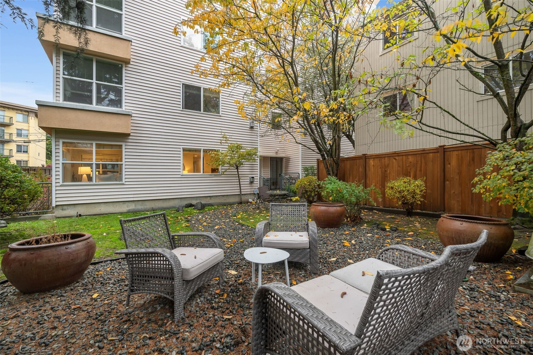 Discover refined urban living in the heart of Capitol Hill. This light-filled corner unit offers a rare combination of privacy, comfort, and style. Inside, a cozy gas fireplace anchors the open living space, while two generously sized bedrooms provide the perfect retreat for rest & relaxation. Modern kitchen features bar seating, sleek cabinetry, and stainless steel appliances. Step outside to your expansive private patio with lush yard space, perfect for morning coffee, gardening, or evening gatherings. Enjoy the convenience of secured garage parking, plus effortless access to I-5, renowned restaurants, boutique shops, parks, and the Capitol Hill lightrail station. Every detail invites you to embrace a lifestyle of sophistication and ease.