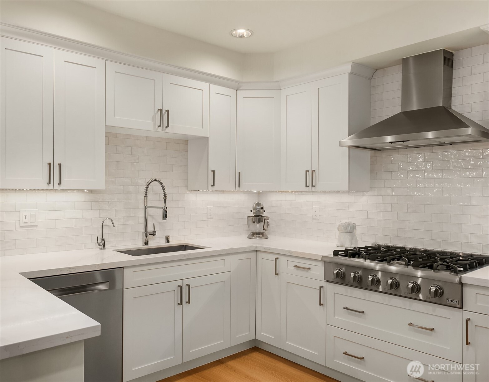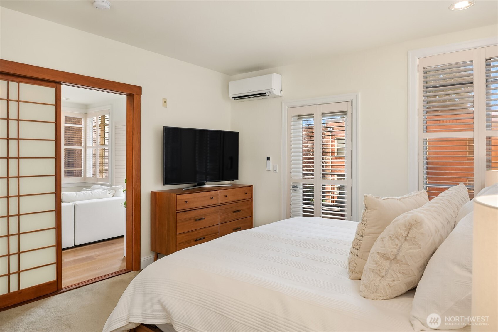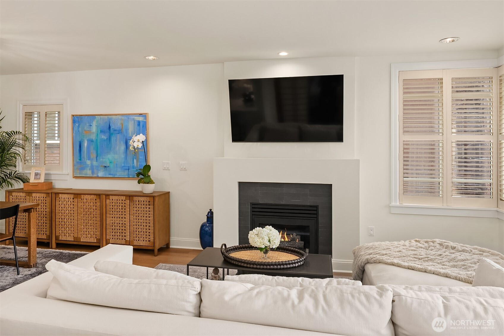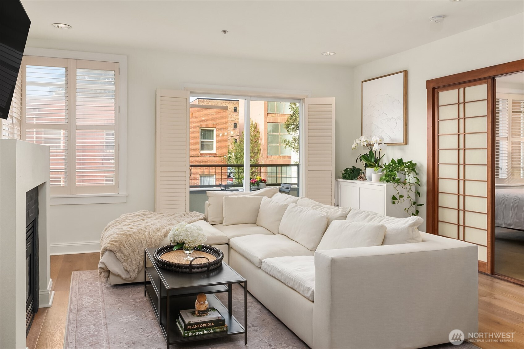 Stunning home in a gorgeous 6-unit brick boutique community in highly desirable Lower Queen Anne! This beautifully renovated residence features 3 bedrooms and 2 full baths with premium finishes throughout. The chef’s kitchen showcases gas range, stainless steel appliances, quartz countertops, a breakfast bar, and $50K in thoughtful updates. Light-filled living room offers a cozy gas fireplace and French doors opening to a sunny southwest-facing porch. The spacious primary suite includes a large walk-in closet and a luxurious 5-piece bath with a large soaking tub and separate shower. Recent upgrades include 3 new mini-split A/C systems, updated guest bath, new luxury vinyl flooring, and updated light fixtures. Custom window shutters and handcrafted Shoji doors add elegance and privacy. Enjoy in-unit laundry, 2 secure parking spaces, a large storage unit, a strong HOA, and a pet-friendly community (2 pets allowed). Walk Score of 96 with easy access to coffee shops, dining, groceries, Downtown Seattle, and South Lake Union.