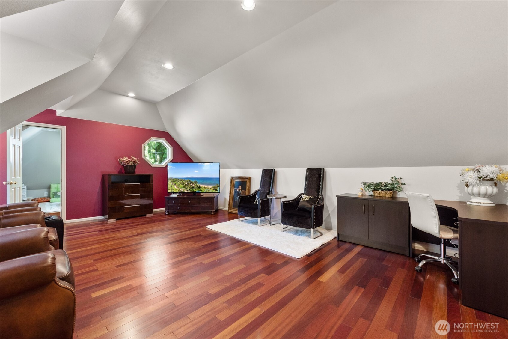 Dream home on desirable Gunshy Ridge! Nearly 1-acre lot w/ circular driveway. Main floor features great room & step-down living room w/ 16-ft ceilings, arched windows, & marble FP. Renovated kitchen w/ butler's pantry. Luxurious primary suite w/ dual entry, 5-piece bath (soaking tub & large shower), & covered patio. Upstairs: private bedroom suite w/ sitting area. 5 beds + bonus room. Office. Private sports court! Central A/C. Generator. Central vacuum. 2nd full kitchen. Award-winning schools. Minutes to downtown, MSFT, light rail, Costco, Home Depot. 5 mins to 520. A must-see!