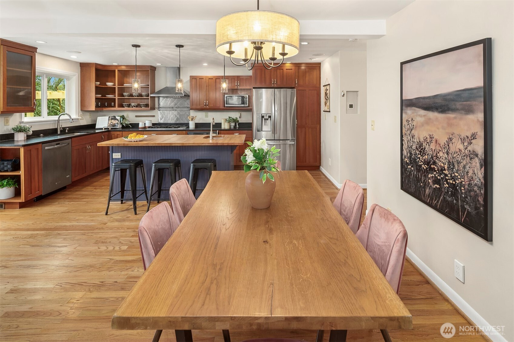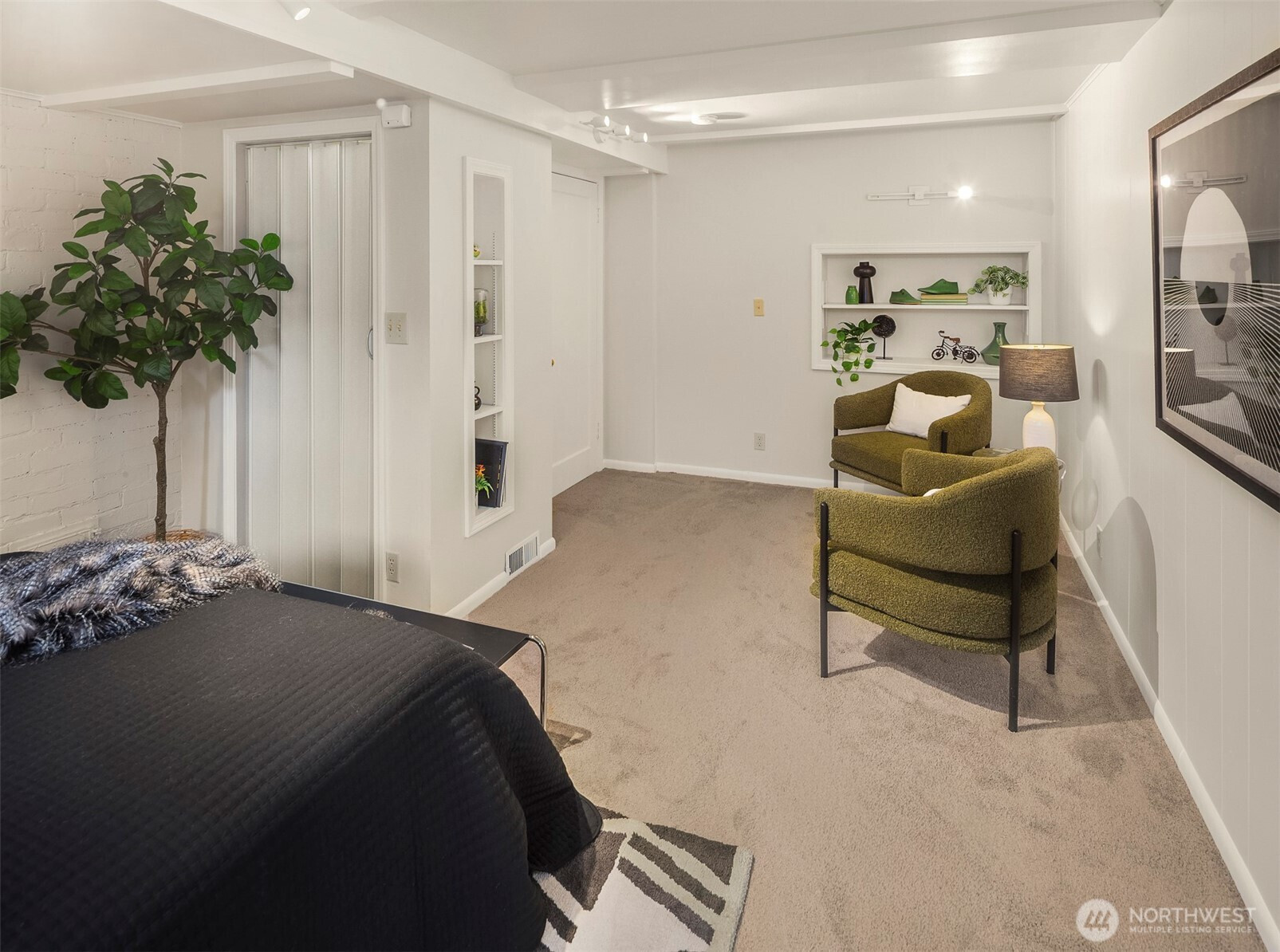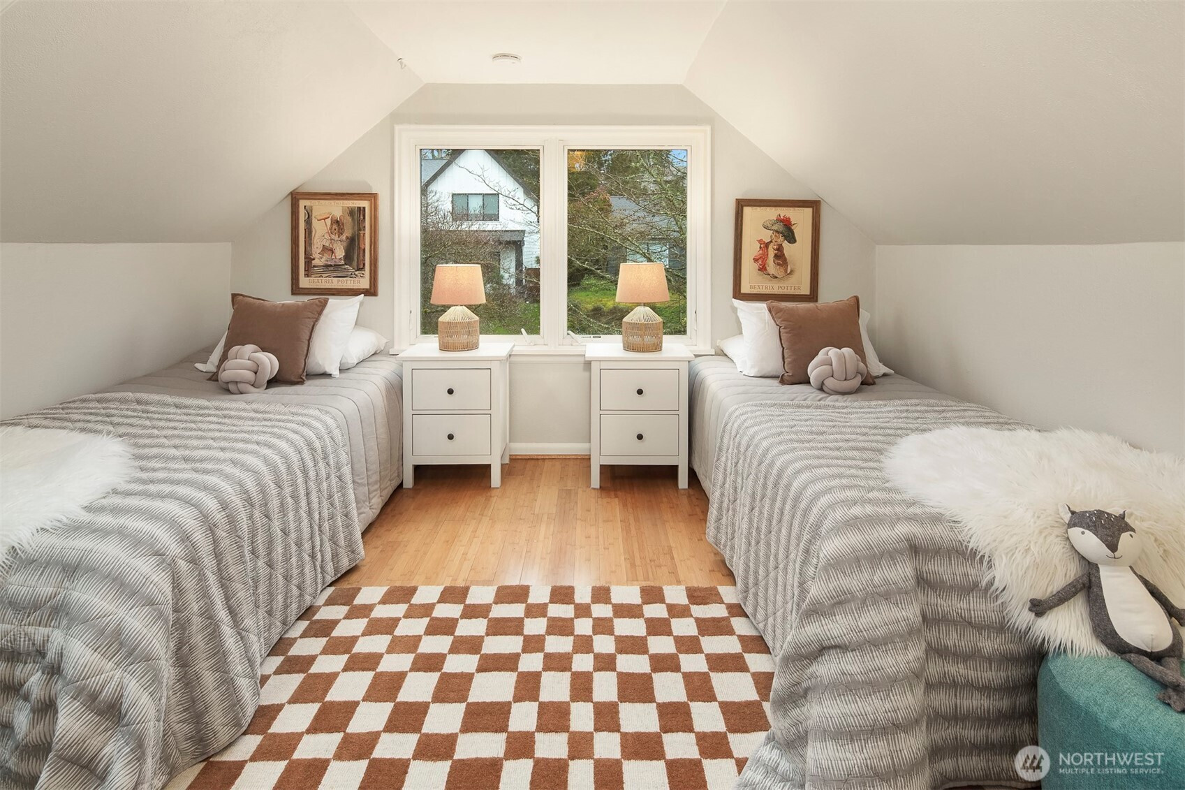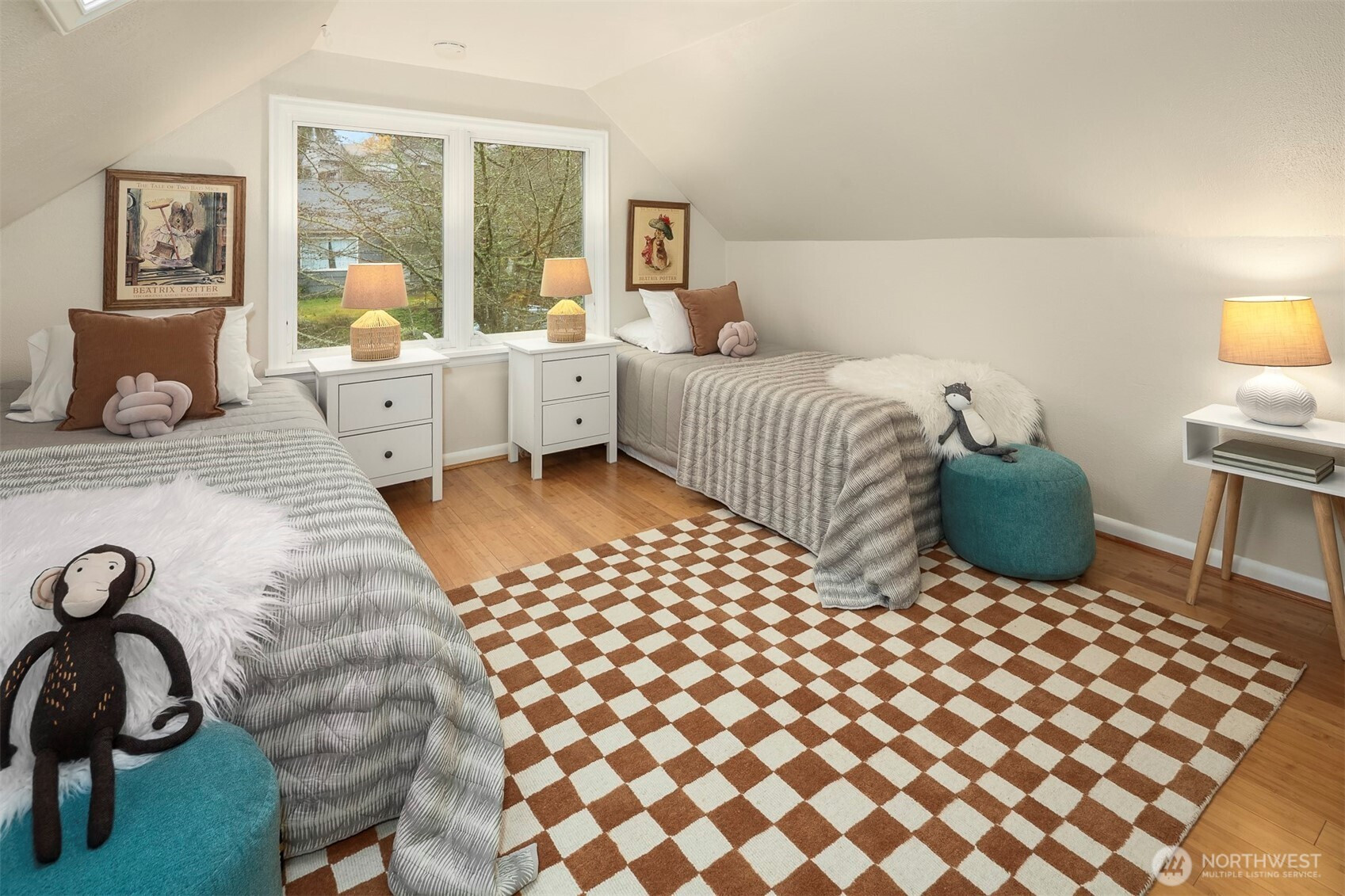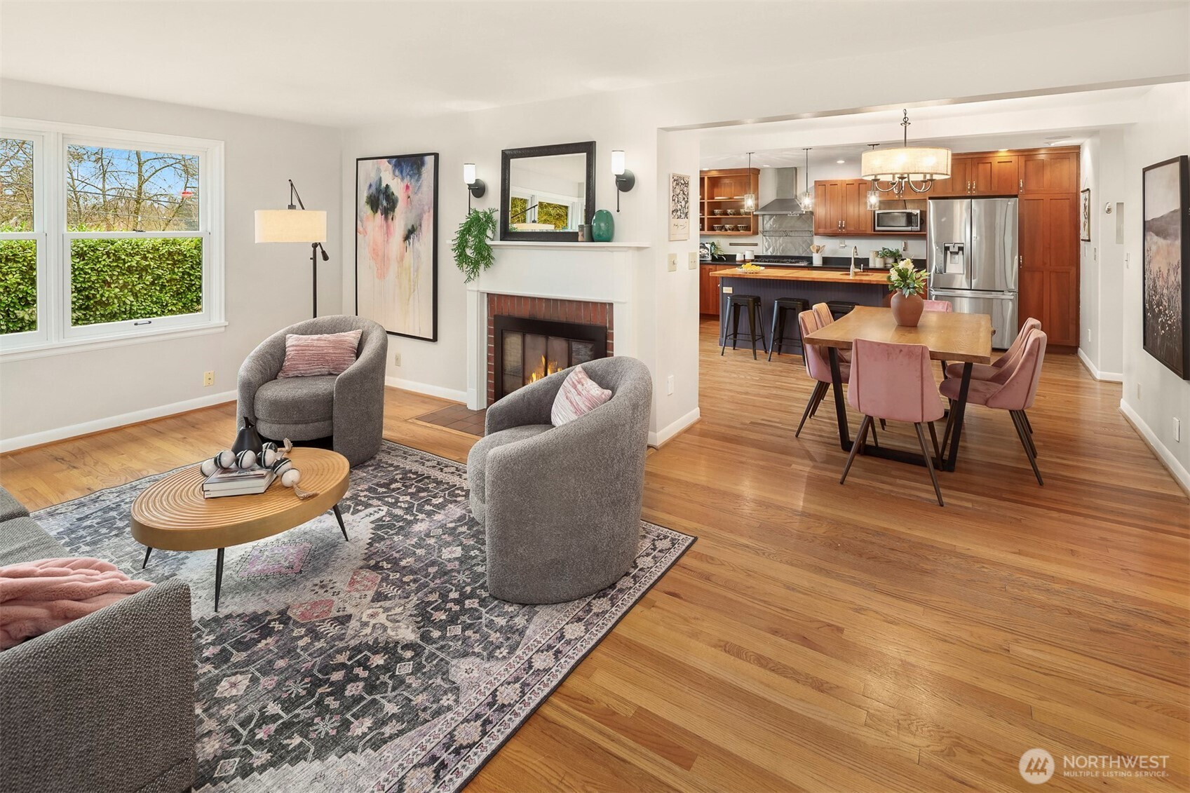 Sitting on the cusp of two of the most desirable neighorhoods, Ravenna & Wedgwood, this sweet home offers it all! From first sight this home exudes warmth, whether it be the charming Dutch front door or the secret passageways. Once through your proper entry, the large living room greets you with a wood burning fireplace and corner windows, looking out through climbing rose bushes to your backyard. The kitchen and dining area sit open with your living room, where the fully updated kitchen really shines. The newer trex deck has a retractable walled awning, offering protection from all sorts of weather! The convenient main floor bathroom is newly remodeled. Two main floor bedrooms are spacious with an incredibly cool “secret passageway” between the two closets. Upstairs houses your primary bedroom, newer full bathroom, and an additional bedroom hidden behind a bookshelf door. The basement offers a 5th bedroom plus a three quarter bathroom. So nice having a bathroom on every level! A large workshop lives downstairs, already equipped with a filtration system, plus ample storage. The backyard is simply dreamy with a sweet bush fort (find it!) and garden space. The 1 car garage offers a brand new door, plus thoughtful wood storage that is accessible through the entry closet. So many details have been considered here! Excellently located, sitting on a residential street while only a few blocks to shops, restaurant, grocery options, and University Village. Welcome home!