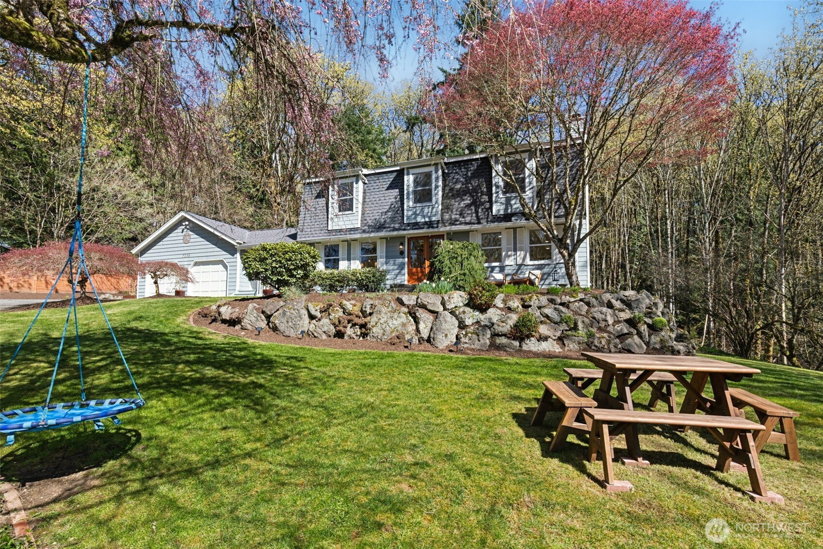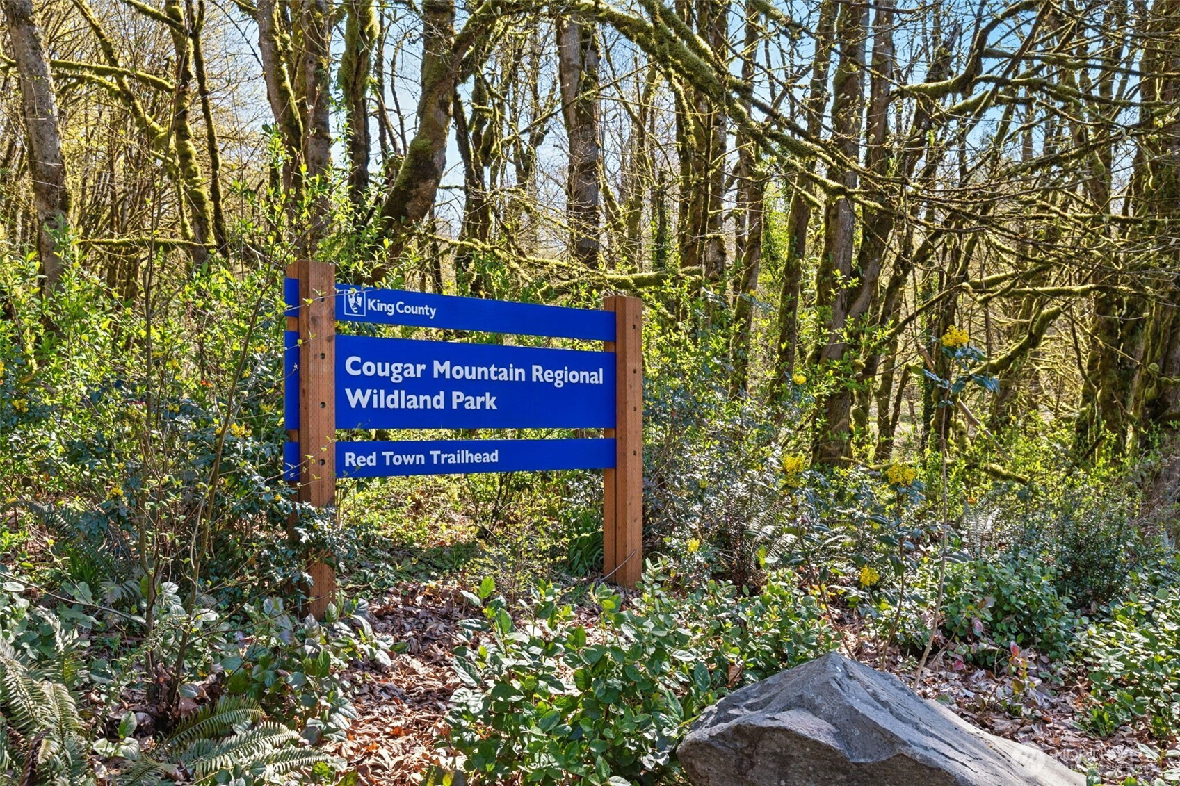 Tucked into one of Bellevue’s most extraordinary natural settings, this private retreat offers a rare balance of seclusion and convenience. Set on nearly an acre and bordering Cougar Mountain Regional Wildland Park, the home is surrounded by thousands of acres of protected forest and trail systems, creating a true sense of privacy and connection to nature. Explore miles of hiking trails literally from your doorstep, with frequent sightings of eagles, hawks, deer, and owls. This bright and airy two-story home features 3 bedrooms and 3 bathrooms and has been fully remodeled within the last two years. Completely updated island kitchen with quartz countertops. Primary suite with a walk-in closet and updated bathroom. Front and back patios create a serene, park-like setting. Enjoy peaceful evenings by the wood-burning fireplace while taking in sunset views over Bellevue’s rolling hills. Two-car garage with a workbench, a partial basement, and additional storage structures. Despite its serene setting, the home is just minutes from downtown Bellevue, shopping, dining, and everyday amenities. Nearby highlights include multiple parks, playgrounds, trails, and access to the Coal Creek YMCA. The surrounding neighborhood is vibrant and composed of upscale, high-end homes, and is located within one of the top-performing school districts in the state. This is a rare opportunity to own a property where privacy is protected, views are timeless, and the setting cannot be replicated.