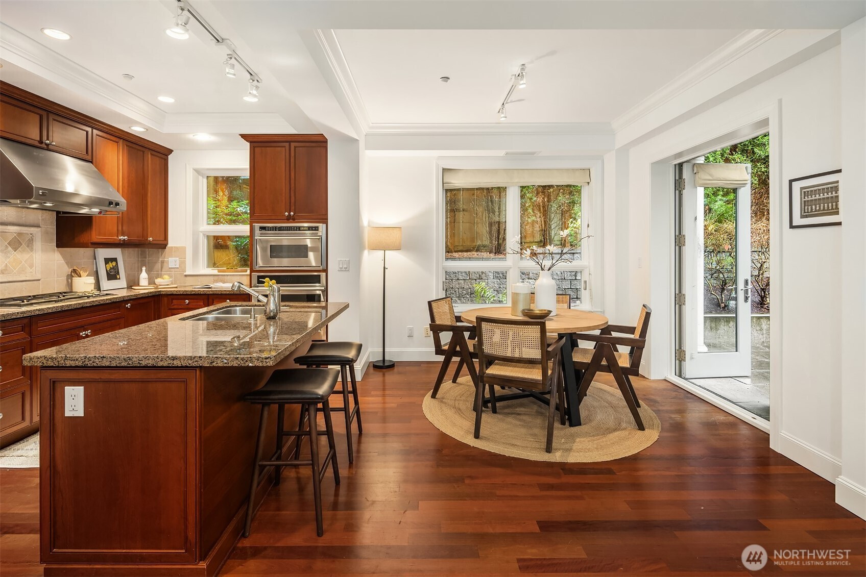 Gorgeous corner residence in the Harvard-Belmont District’s highly sought-after Harvard Estate. Multiple windows overlook the serene courtyard and gardens, bringing in soft natural light. Features include 9-ft ceilings, cherry hardwood floors, and a gas fireplace. The well-appointed kitchen offers a center island and ample cabinetry. The dining room opens through French doors to your own spacious patio. Both bedrooms include ensuite baths, plus there is a separate powder room. The primary suite features a walk-in closet and a luxurious full bath. Steel, brick, and concrete construction. A very quiet, well-managed building with landscaped grounds, fountains, and a fitness room. Central A/C, two garage parking spaces, and a huge storage unit.