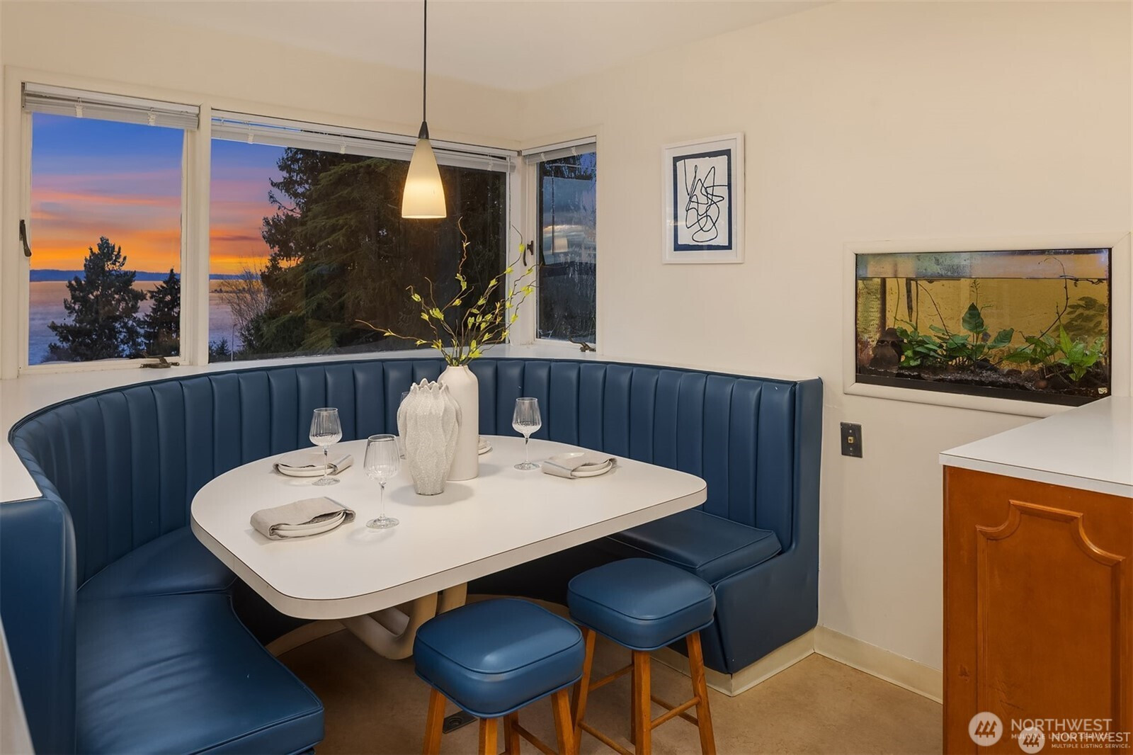 Custom-built in 1947 and nestled on 3.2 private, well-maintained wooded acres with century- old cedar and fir, this 5BR/4BA home offers Westerly sweeping views of Puget Sound and the Olympic Mountains. Rich wood floors, mahogany wainscoting, and four fireplaces showcase timeless craftsmanship. Enjoy a spacious deck for sunset entertaining, a light-filled breakfast nook, lower-level bar, and top-floor art studio with built-in desk and water views. Walking distance to shops, gym, and beaches. Backup generator, RV/boat parking, and abundant wildlife—including eagles, hawks, owls, and orca—complete this exceptional property. A rare offering with A' private beach rights and a lush, park-like backdrop—a front-row seat to sweeping Sound views and the rhythms of the surrounding wildlife.