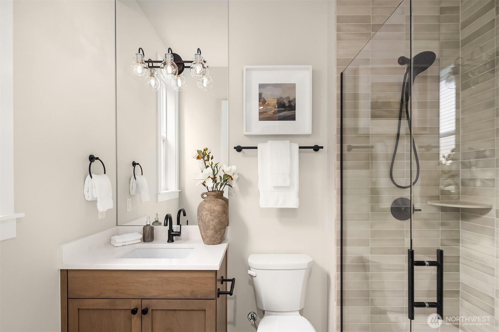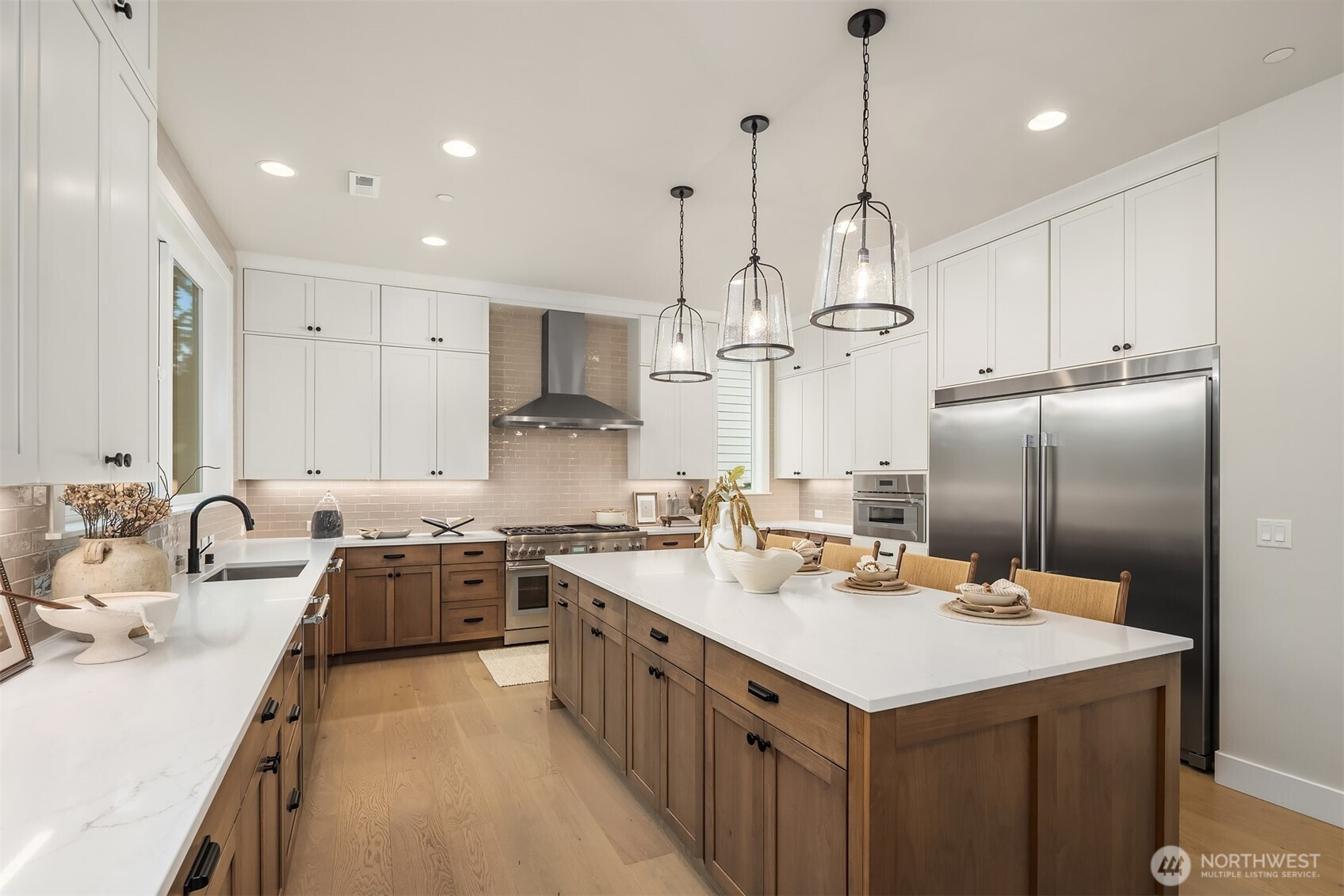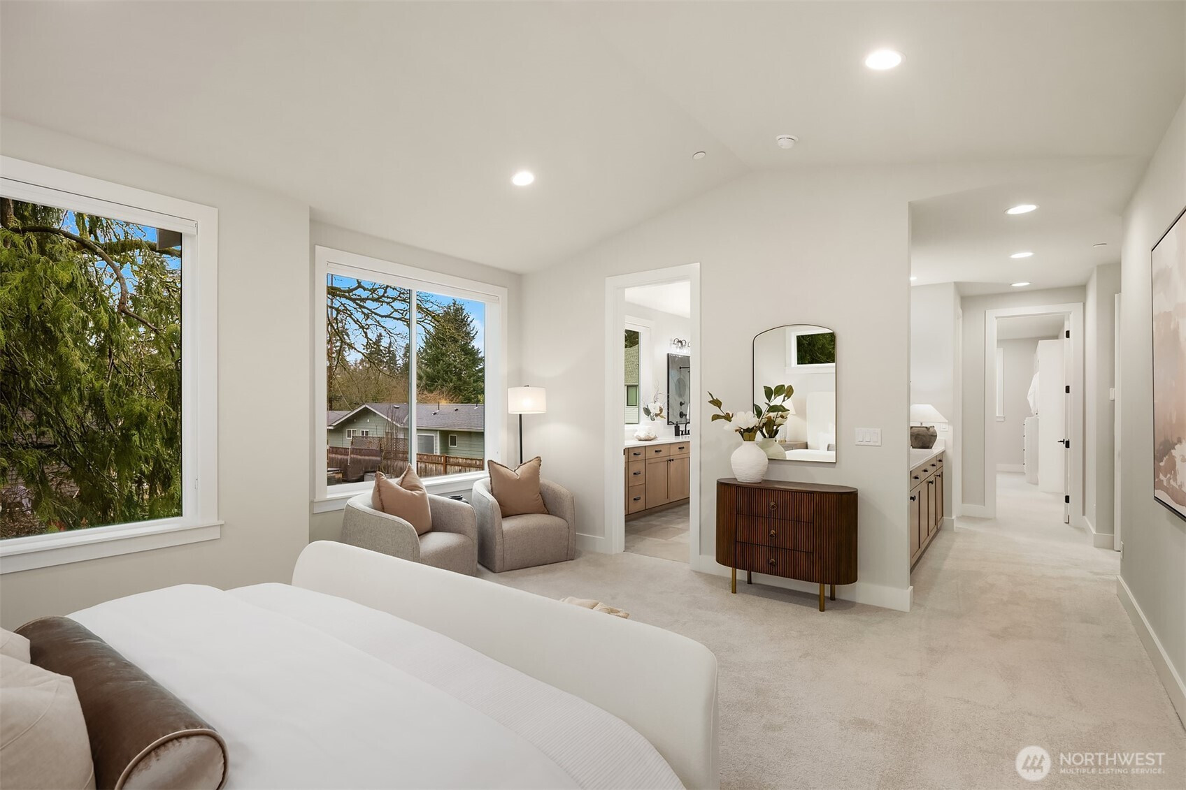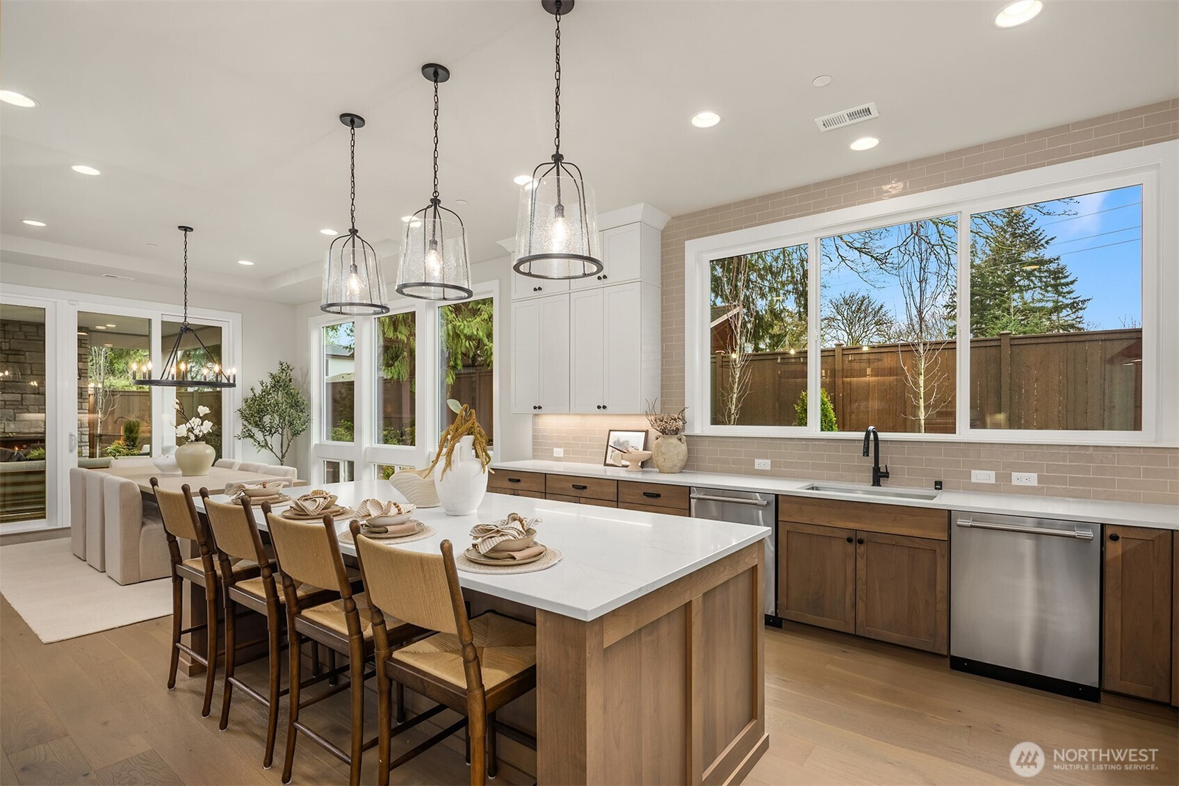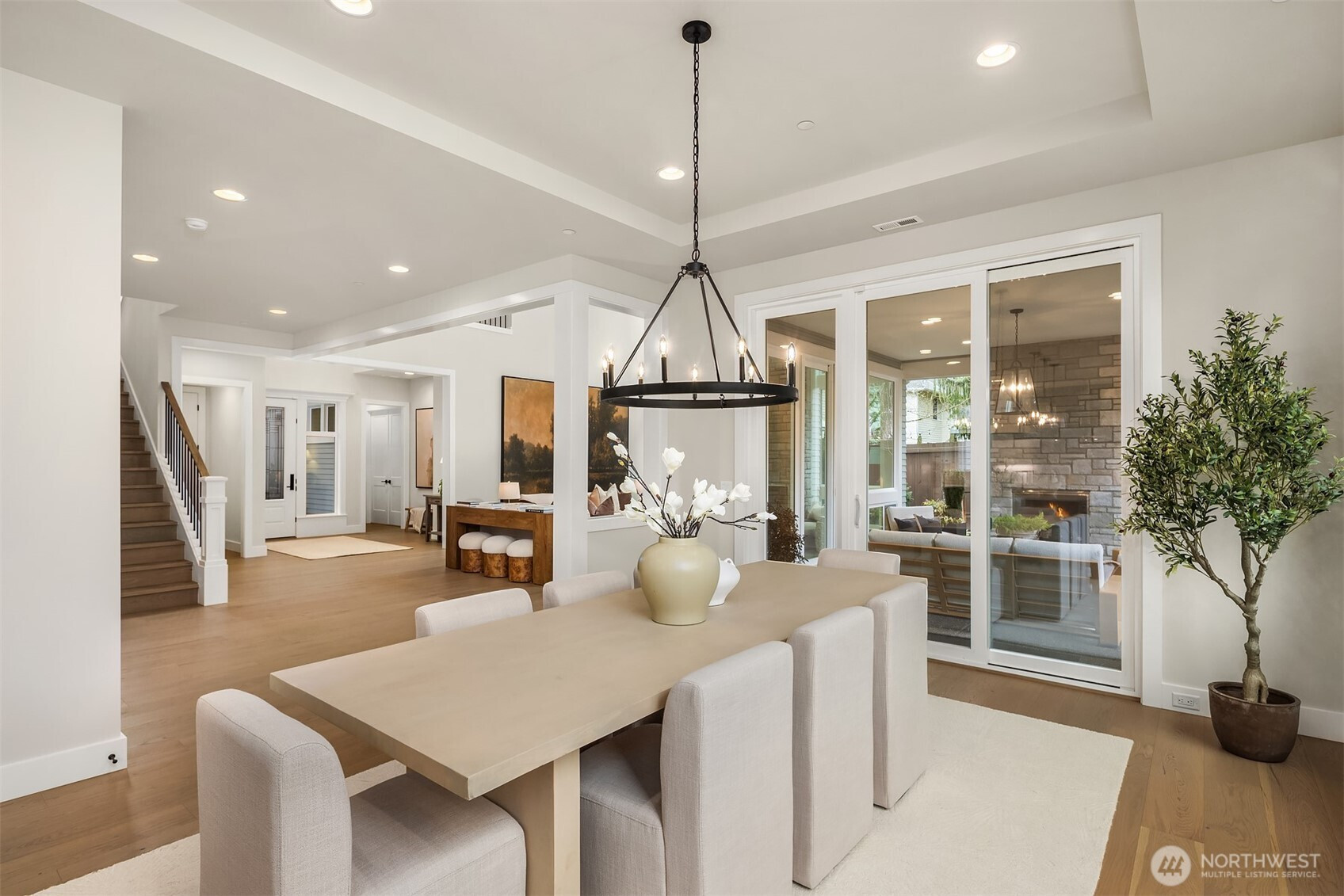 Murray Franklyn proudly introduces Jutta’s Garden & our stunning NEW Martinsville plan. This exceptional 5-bedroom, 4.5-bath home with a main-floor den blends comfort, flexibility, and modern elegance. Premium finishes include slab-quartz countertops in the kitchen and all baths, a Frigidaire full-size refrigerator and freezer, wide-plank engineered hardwoods, and stately 8-foot interior doors. The spa-inspired primary suite offers a mud-set shower and richly tiled flooring. Soaring windows fill the home with natural light, while the covered outdoor patio with fireplace creates a true indoor-outdoor retreat. All nestled in a beautiful new community with nearby parks and trails—just minutes to Redmond, Bellevue, and abundant local amenities.
