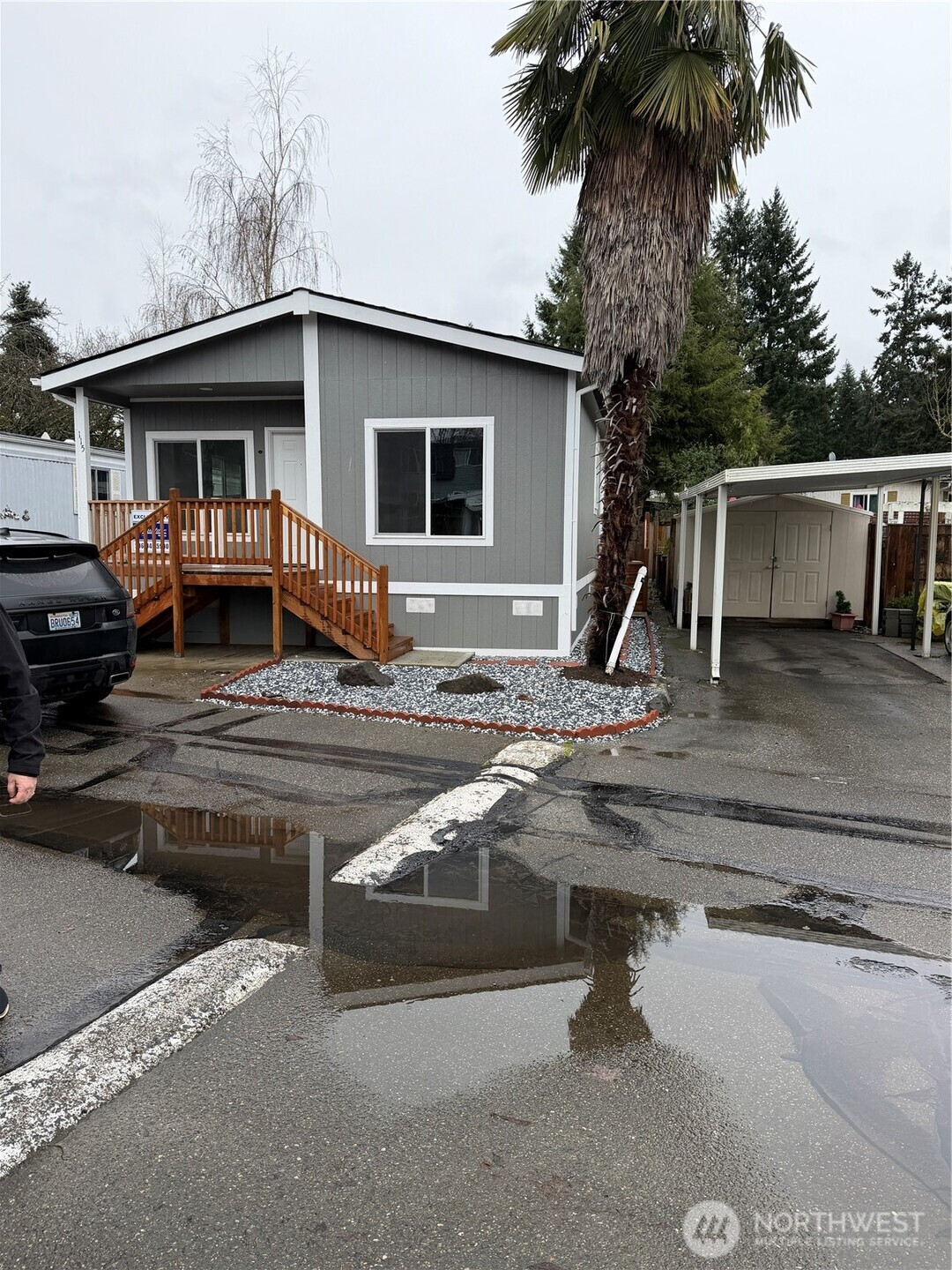 NEW HOME! Fully landscaped with a beautiful windmill palm tree, black and white decorative gravel, large accent rocks, and venetian red stepping stones. Laminate floors throughout resemble dark walnut and provide incredible contrast with the white walls and ceiling. The alder cabinets in the kitchen look perfect with the new counter tops. The kitchen island adds an abundance of counter space and the hanging lights add a level of modernity to the home. The house comes with brand new appliances and fixtures throughout including a washer, dryer, microwave, large farm sink, garbage disposal, dish washer, and refrigerator. The bathrooms have excellent counters, large cabinets, and the master bath has a spacious shower bath. The home is 2x6 wall construction, sheetrock throughout, vaulted ceilings, trimmed out window sills with vinyl dual pane windows. Lots of insulation including R40 in the ceiling, R21 in the walls, and R33 in the floors, making this an ideal and energy efficient home. The community has access to the marina and boat launch on the Sammamish River which lets out into Lake Washington 0.67 miles downstream. Residents also have access to the community clubhouse next to the marina.