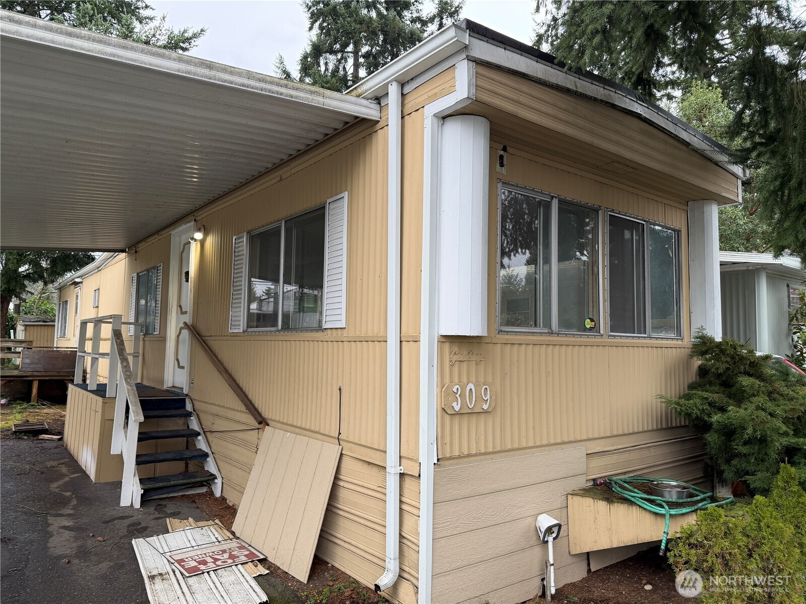 This is a fixer upper with a lot of potential! This unit comes with a covered carport and a small storage shed in the back yard. All appliances are without warranty. This unit has a washer, dryer, refrigerator, oven, microwave, and kitchen ceiling fan. Enjoy the beautiful green cabinets and small subway tile backsplash. Comes with a large living area with four large windows. House is sold, AS-IS WHERE-IS. But there is a lot of potential to make this a nice home. This home needs some love but when finished boasts an incredible location. Just 8 minutes from St. Edward State Park, 5 min from the Inglewood golf club, 4 min from Kenmore Rowing, and 3 min from Kenmore Lanes Bowling. With access to both the Sammamish River and the incredible Lake Washington via the communities private water front, boat launch, and marina this home is an ideal location for homebuyers. There is major potential to build equity with this home.