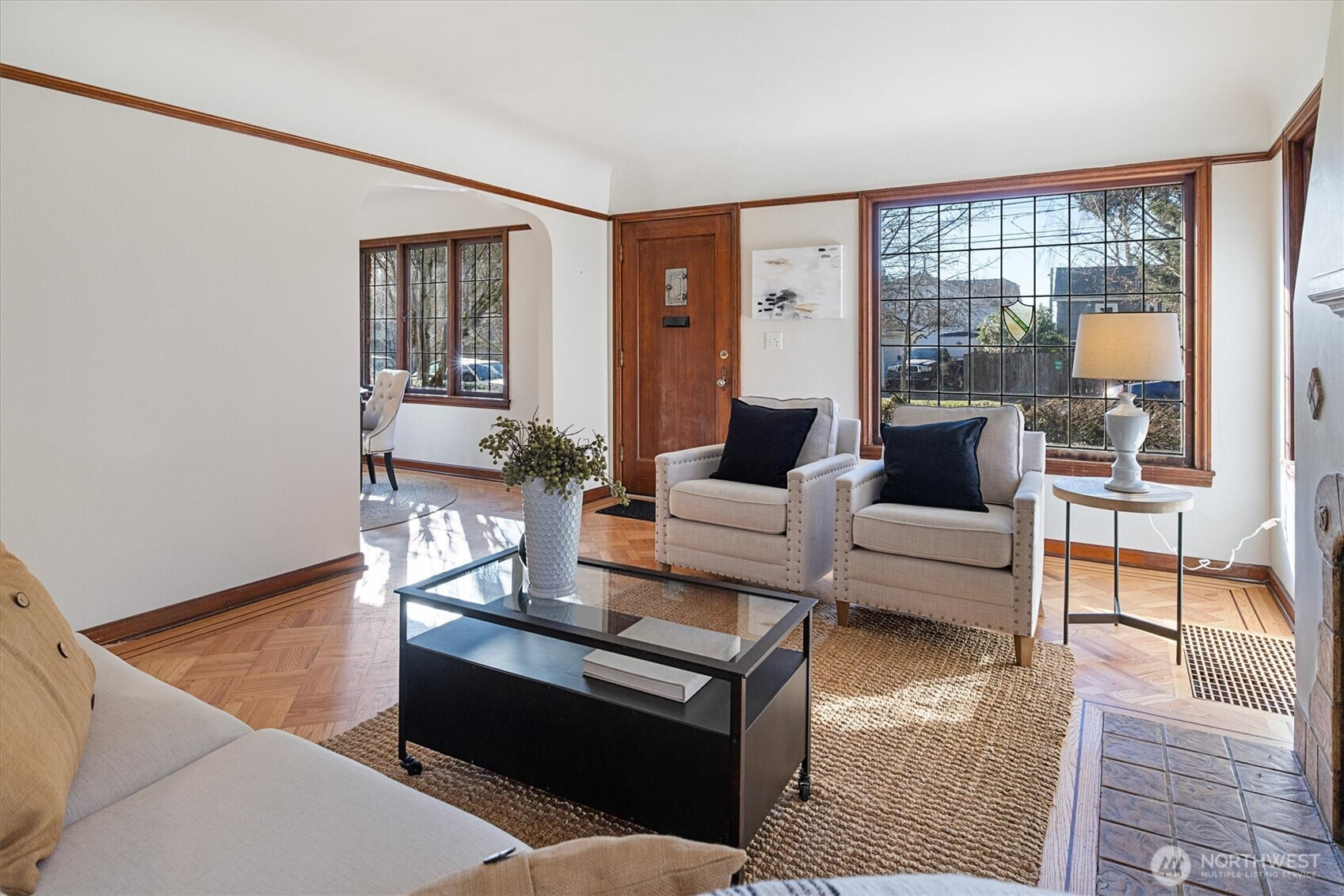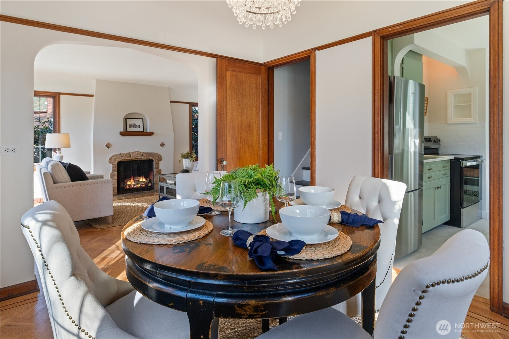 Exquisite craftsman gem! As you step inside, the timeless elegance of oak floors welcomes you, leading through a layout rich with coved ceilings, picture moldings, and stunning leaded glass windows that capture the essence of its era. The living room, anchored by an original period fireplace, creates an ambiance of warmth and charm, perfect for gatherings or quiet evenings. The spacious formal dining room promises memorable dinners, while the updated kitchen boasts new quartz countertops and a chic subway tile backsplash, making it a delight for any culinary enthusiast. This home's layout is thoughtfully designed, featuring four bedrooms with two on the main level, a secluded retreat on the top floor, and another in the lower level, providing versatility and privacy. EXPANSION POTENTIAL in high ceiling attic! Turn it into an office, study, den, workout room, artist studio, potential to be anything you want! The newer detached garage and the expansive level lot set this property apart in the Ravenna landscape, offering ample outdoor space for recreation and gardening. Located within walking distance to light rail, Whole Foods, cafes, and more, this home scores a remarkable 93 on the bike score, making it a haven for both convenience and lifestyle. Only minutes away from UW, downtown, Amazon, and 520, its location is unparalleled. Furthermore, residing in the #1 sought-after school cluster enhances its appeal.