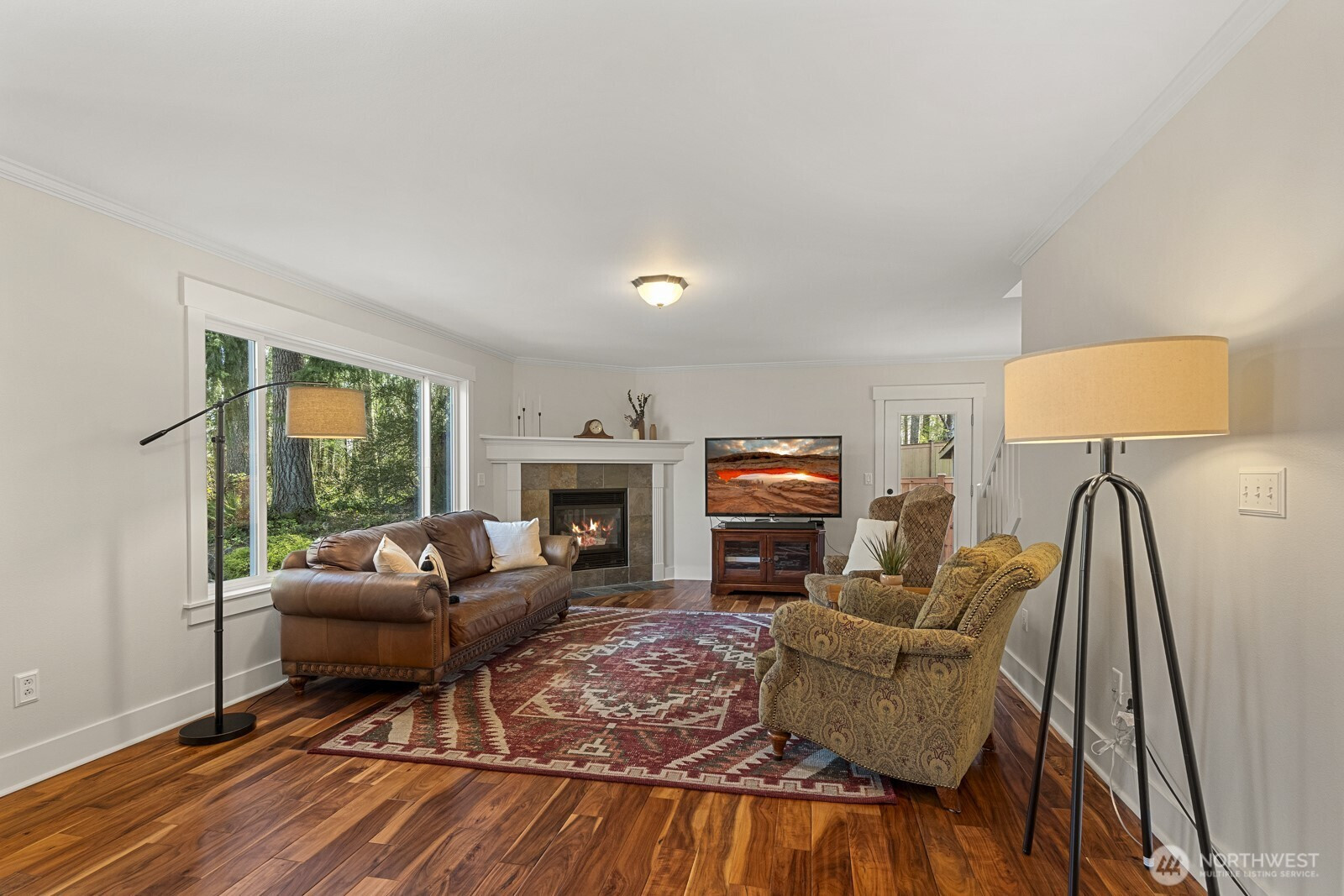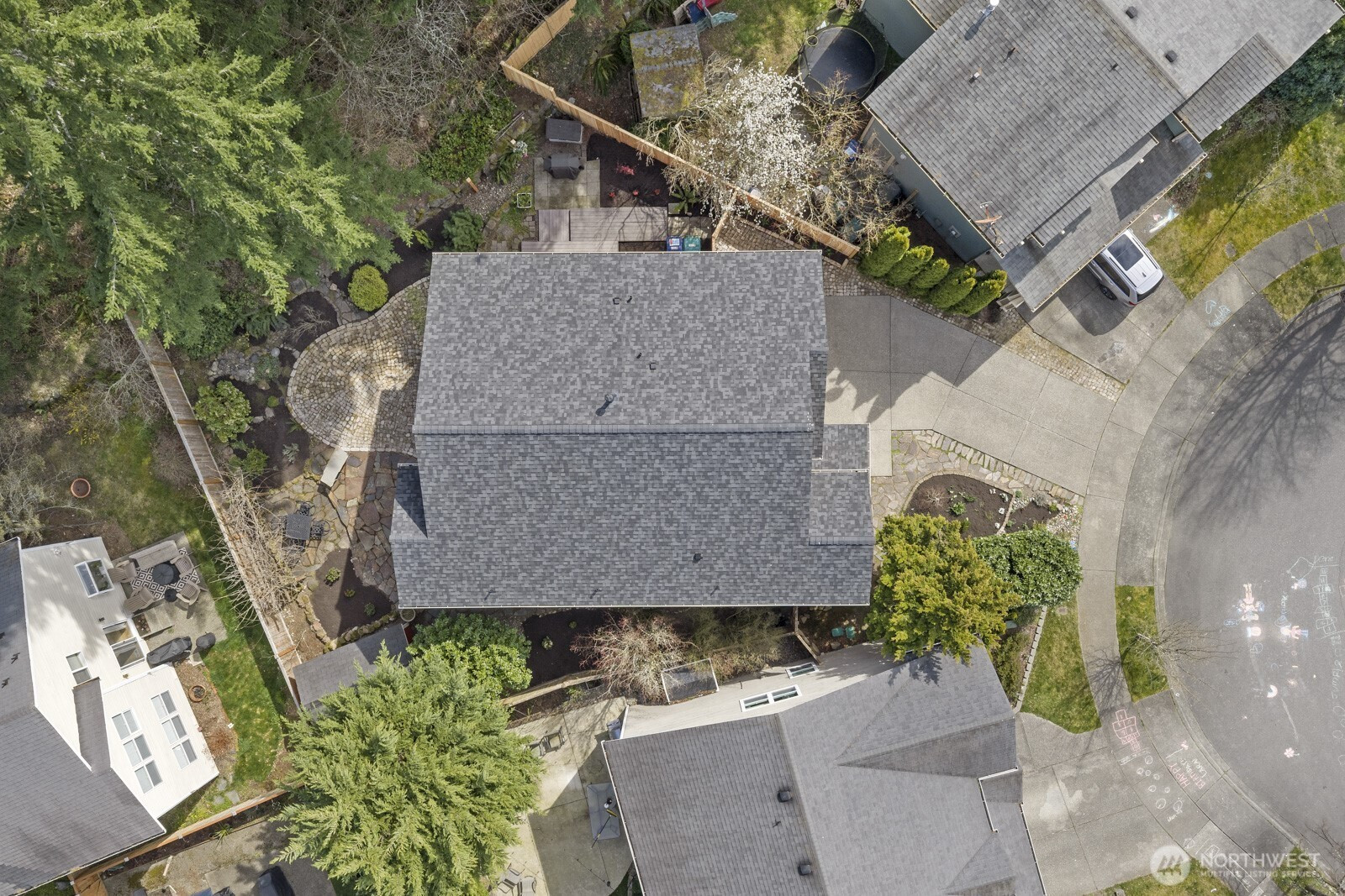 Standout Snoqualmie Ridge gem. First time on the market! Upgraded and move-in ready. This quality home sits on a greenbelt lot on a quiet cul-de-sac. Centrally located within walking distance to shops, parks, dining, Cascade View Elementary, and more. Thoughtful upgrades shine throughout with acacia wood floors on both levels, crown molding, wide trim and solid knotty alder doors with bronze hardware. New 50-year roof installed in 2023 with a transferable warranty. Updated chef’s kitchen features quartz counters and excellent workspace. Cozy gas fireplace adds warmth and charm. Great floor plan with 4 bedrooms plus a bonus room. Spacious primary suite includes wooded views, remodeled bath, and walk-in closet. The Greenbelt lot offers peaceful wooded views and privacy. Relax or entertain on the Montana slate patio. Ample garden space. Two-car garage with ample driveway parking. Prized Snoqualmie Valley schools. Quick I-90 access makes commuting a breeze. Welcome home!