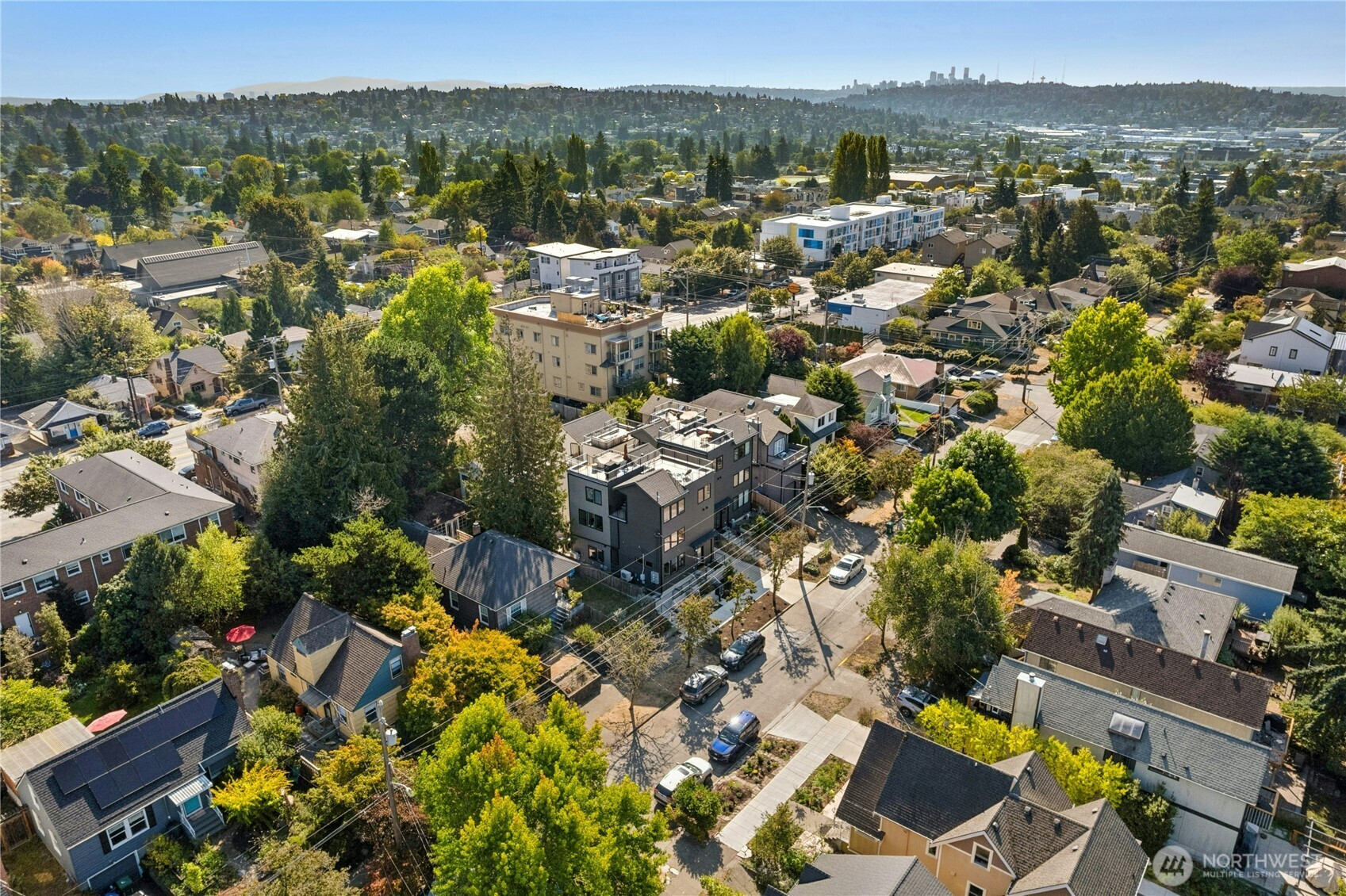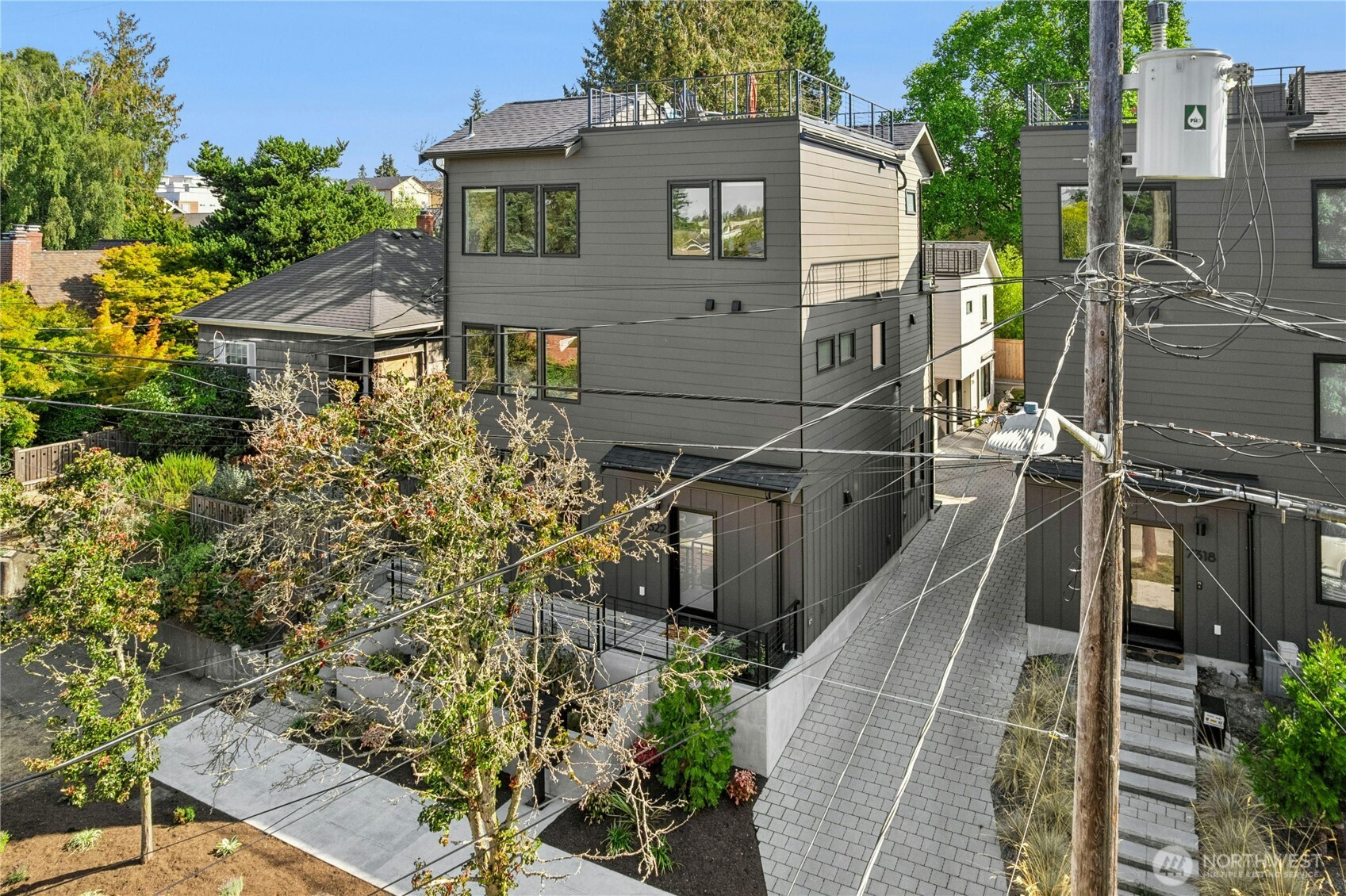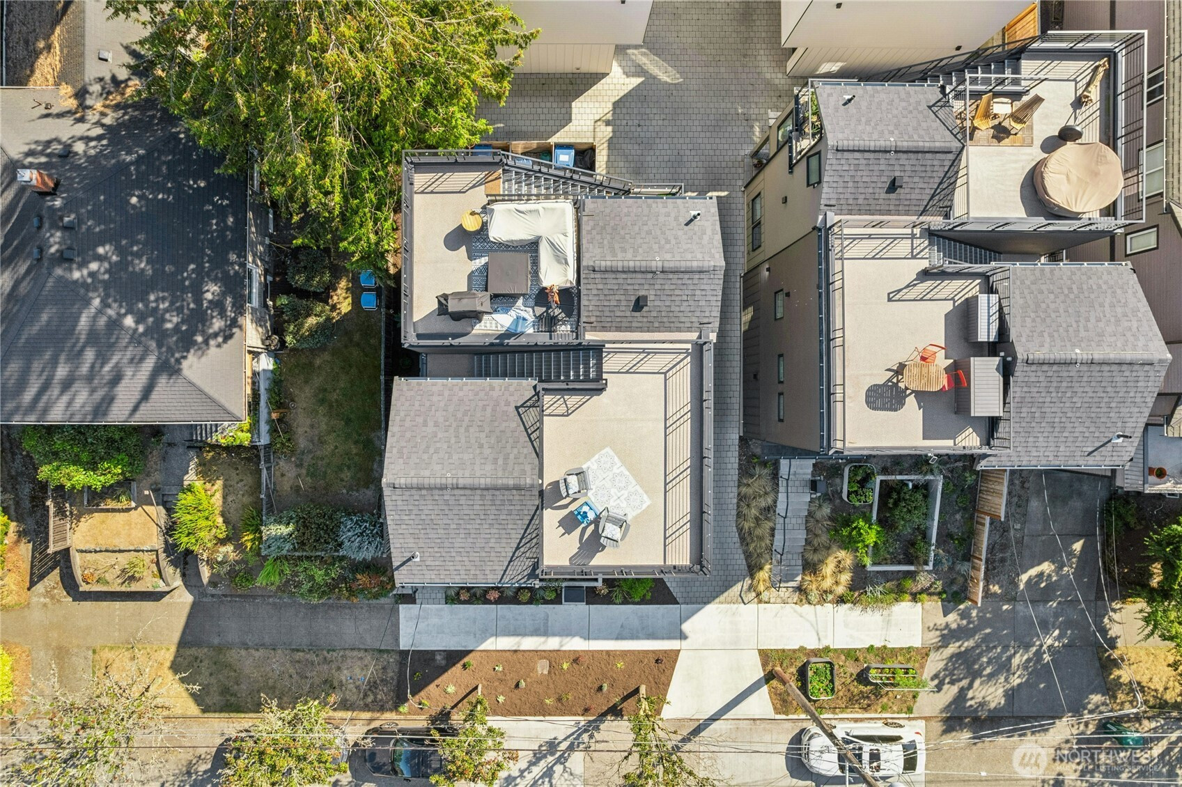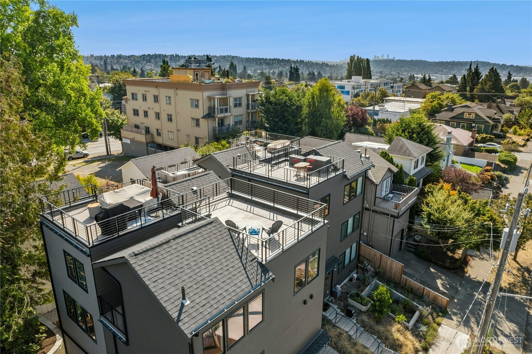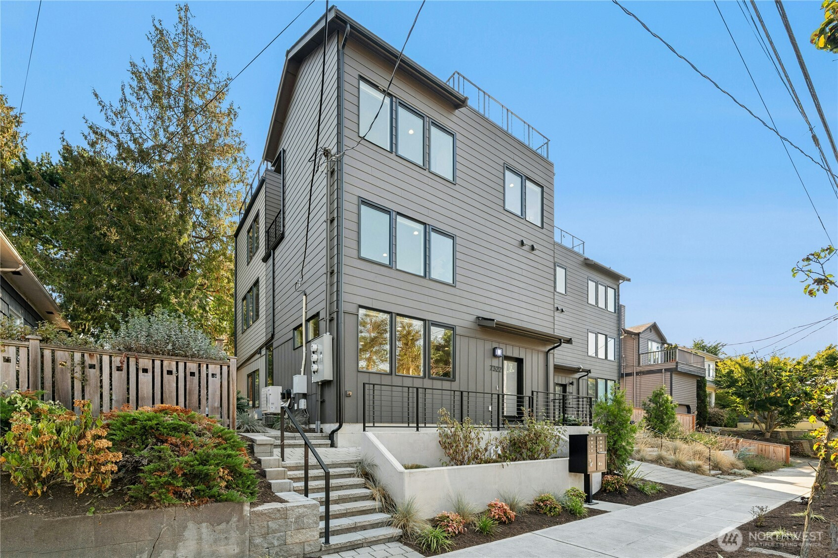 Experience modern living in this contemporary condo, set on a tree-lined street in a desirable residential neighborhood. Built with quality construction & thoughtful design, this home offers the feel of a single-family residence with the ease of condo living. The main living area is conveniently located on the first floor, while bedrooms above provide comfort & privacy. A designated laundry room adds everyday convenience, and mini-splits on every level ensure year-round comfort. Enjoy sweeping views of the city skyline, Puget Sound, and even the Space Needle fireworks from the rooftop deck. With only six homes in the community, you’ll appreciate the sense of space & exclusivity. Off-street parking with EV charging completes this rare find.