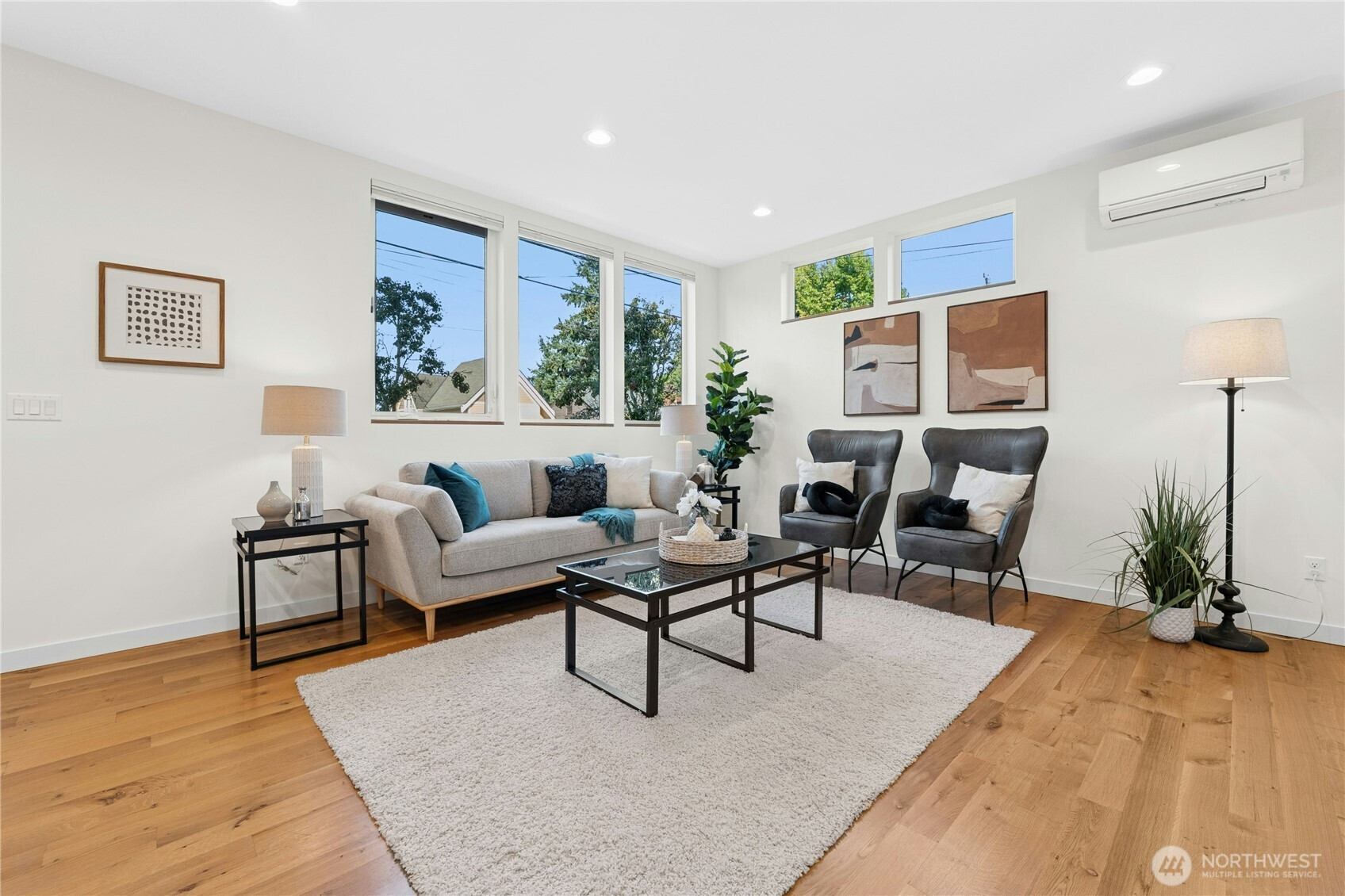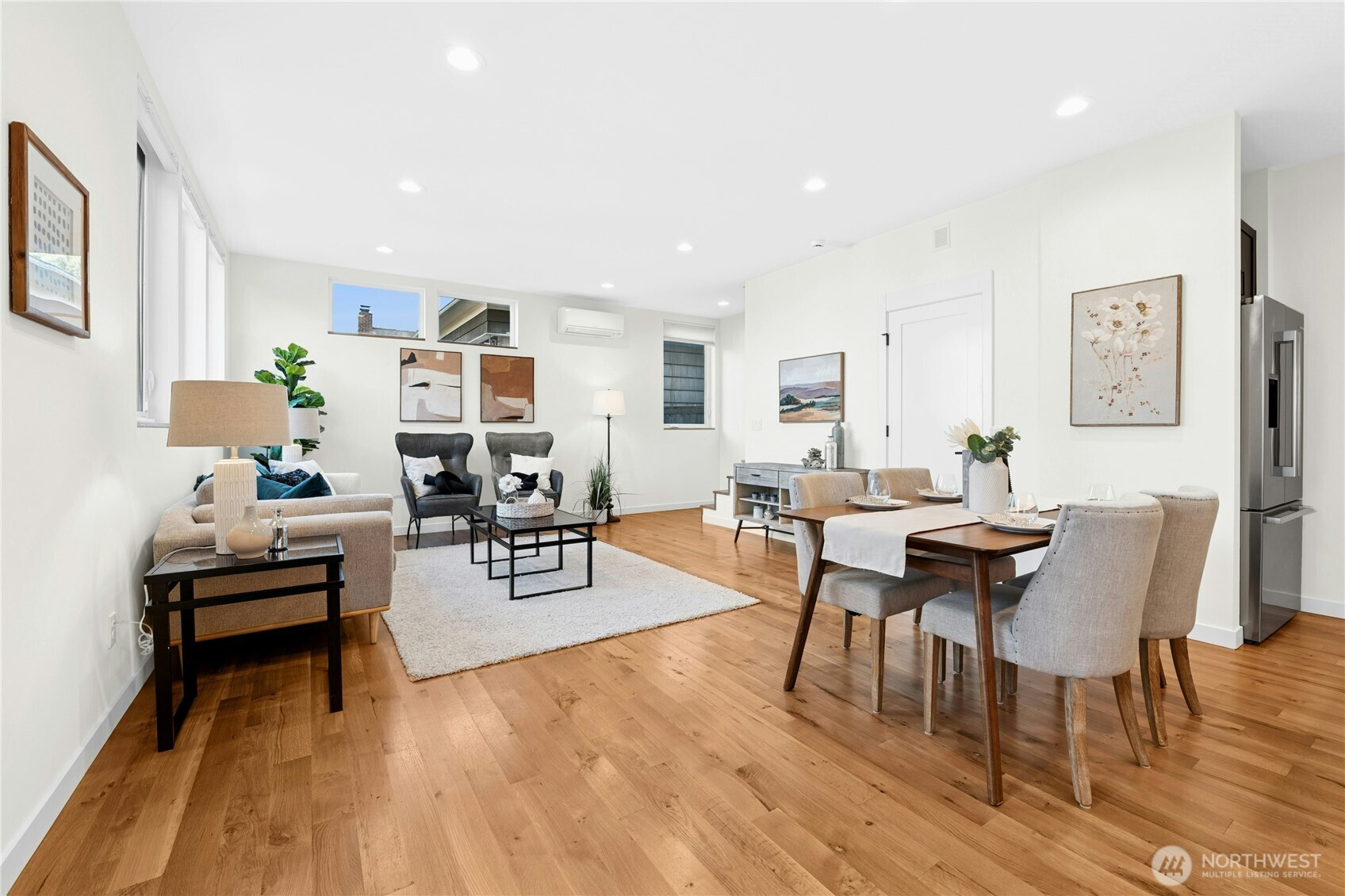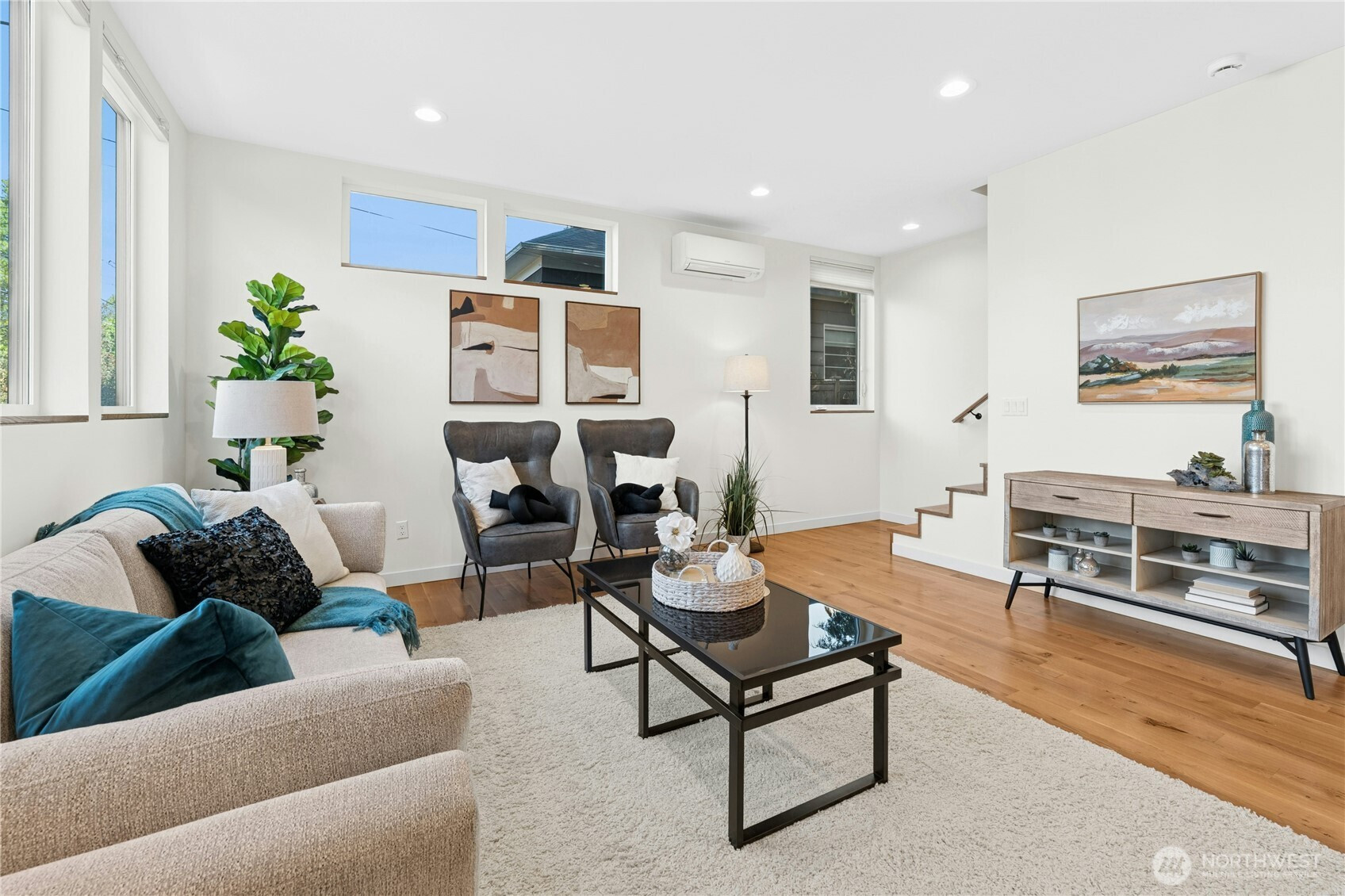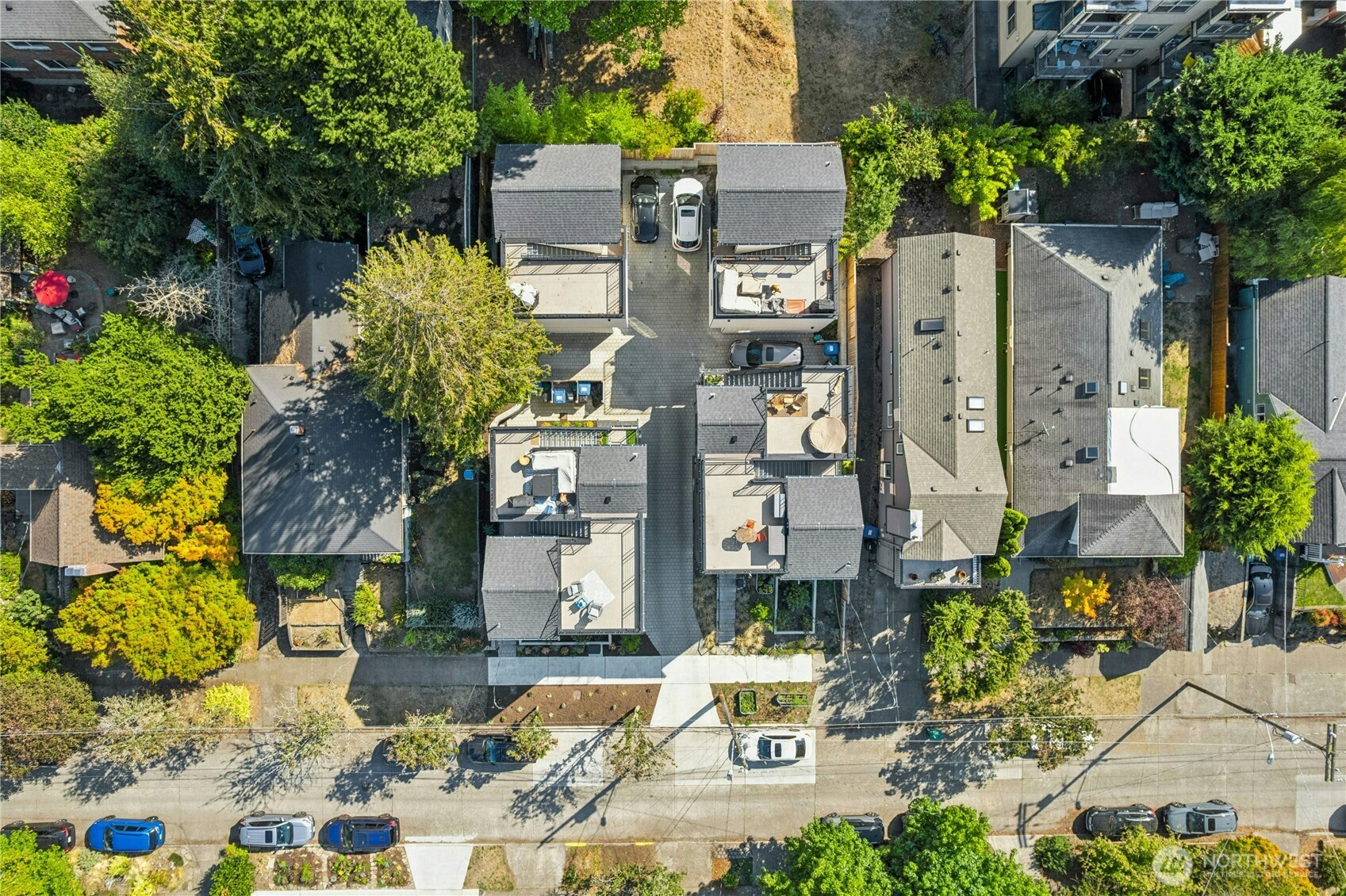Experience modern living in this contemporary condo, set on a tree-lined street in a desirable residential neighborhood. Built with quality construction & thoughtful design, this home offers the feel of a single-family residence with the ease of condo living. The main living area is conveniently located on the first floor, while bedrooms above provide comfort & privacy. A designated laundry room adds everyday convenience, and mini-splits on every level ensure year-round comfort. Enjoy sweeping views of the city skyline, Puget Sound, and even the Space Needle fireworks from the rooftop deck. With only six homes in the community, you’ll appreciate the sense of space & exclusivity. Off-street parking with EV charging completes this rare find.