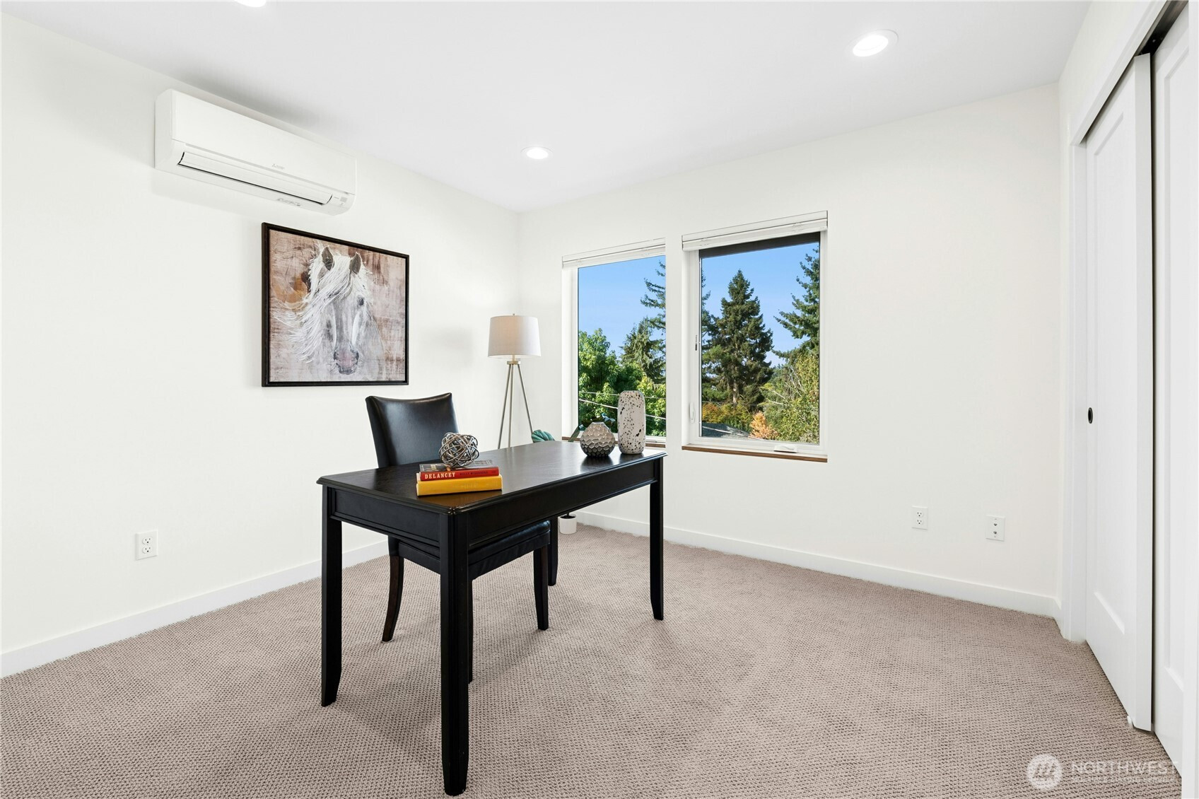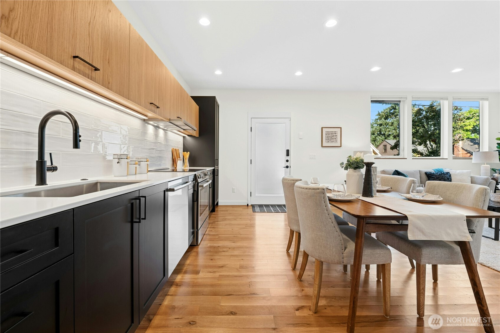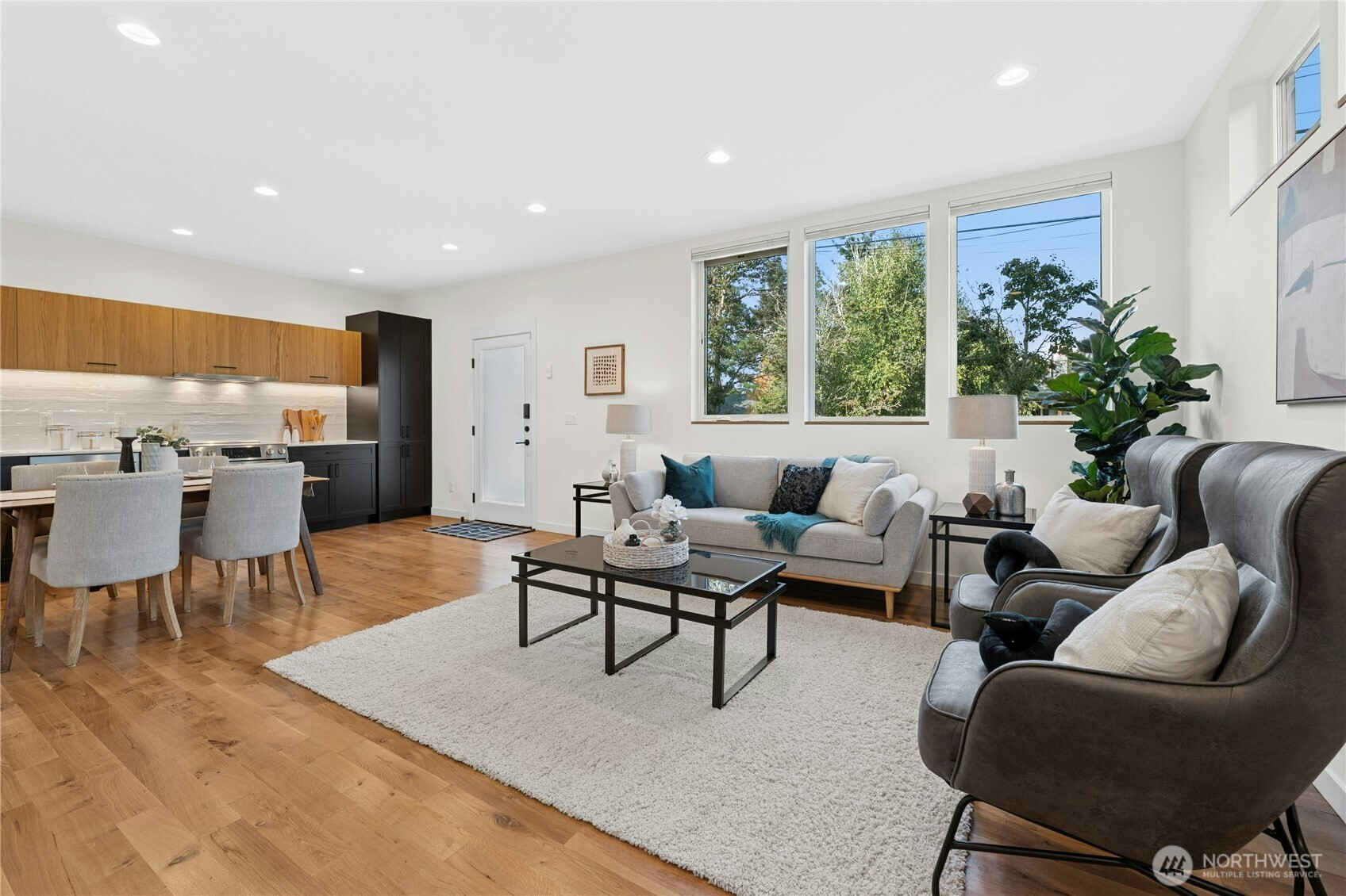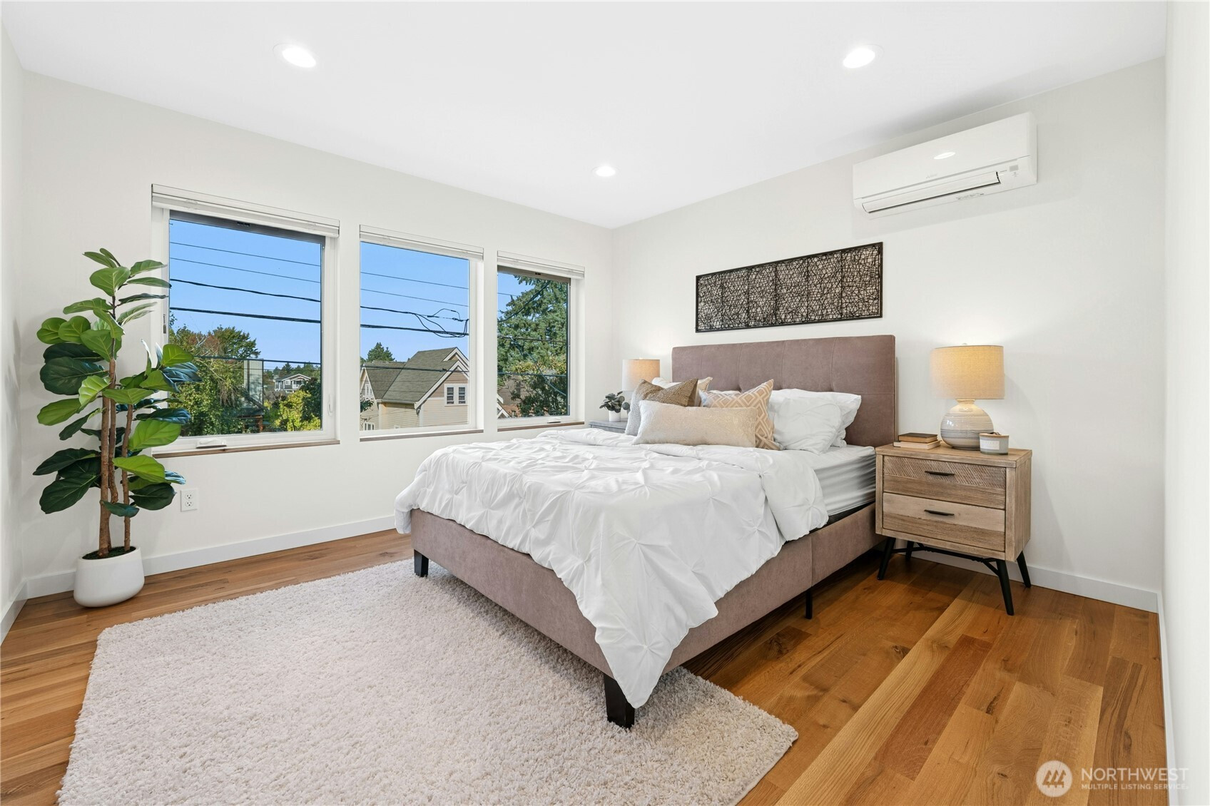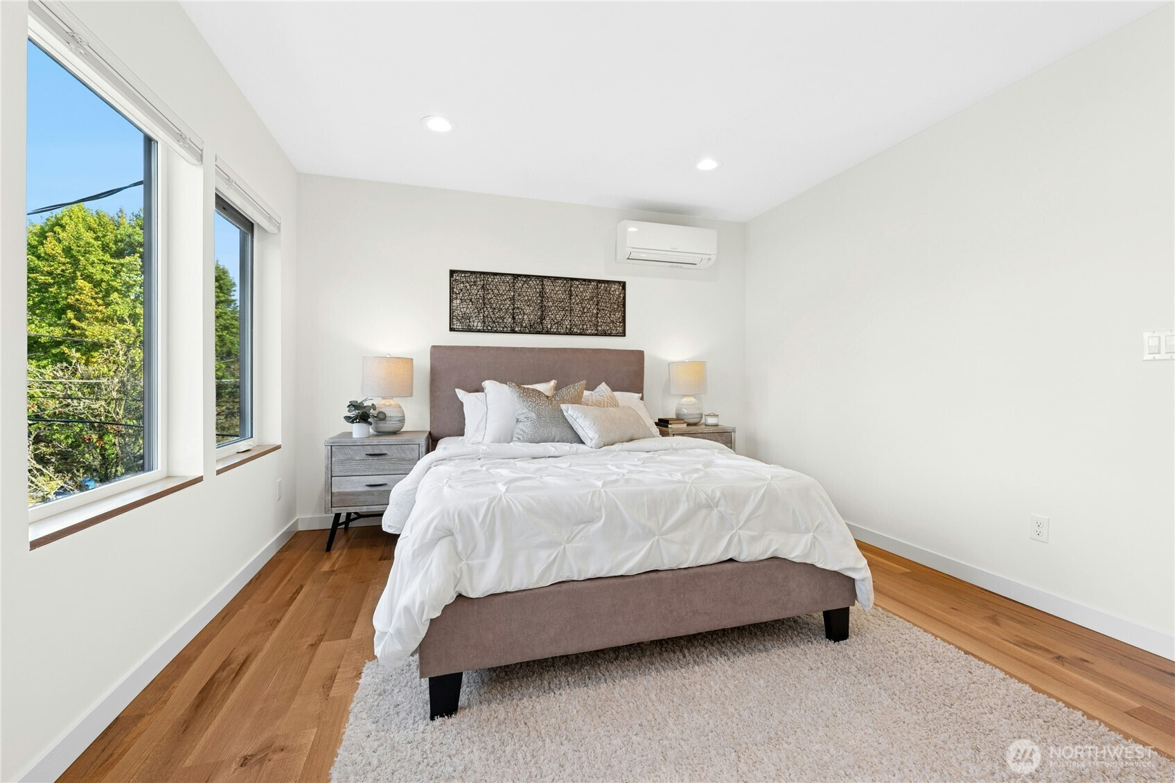 Experience modern living in this contemporary condo, set on a tree-lined street in a desirable residential neighborhood. Built with quality construction & thoughtful design, this home offers the feel of a single-family residence with the ease of condo living. The main living area is conveniently located on the first floor, while bedrooms above provide comfort & privacy. A designated laundry room adds everyday convenience, and mini-splits on every level ensure year-round comfort. Enjoy sweeping views of the city skyline, Puget Sound, and even the Space Needle fireworks from the rooftop deck. With only six homes in the community, you’ll appreciate the sense of space & exclusivity. Off-street parking with EV charging completes this rare find.