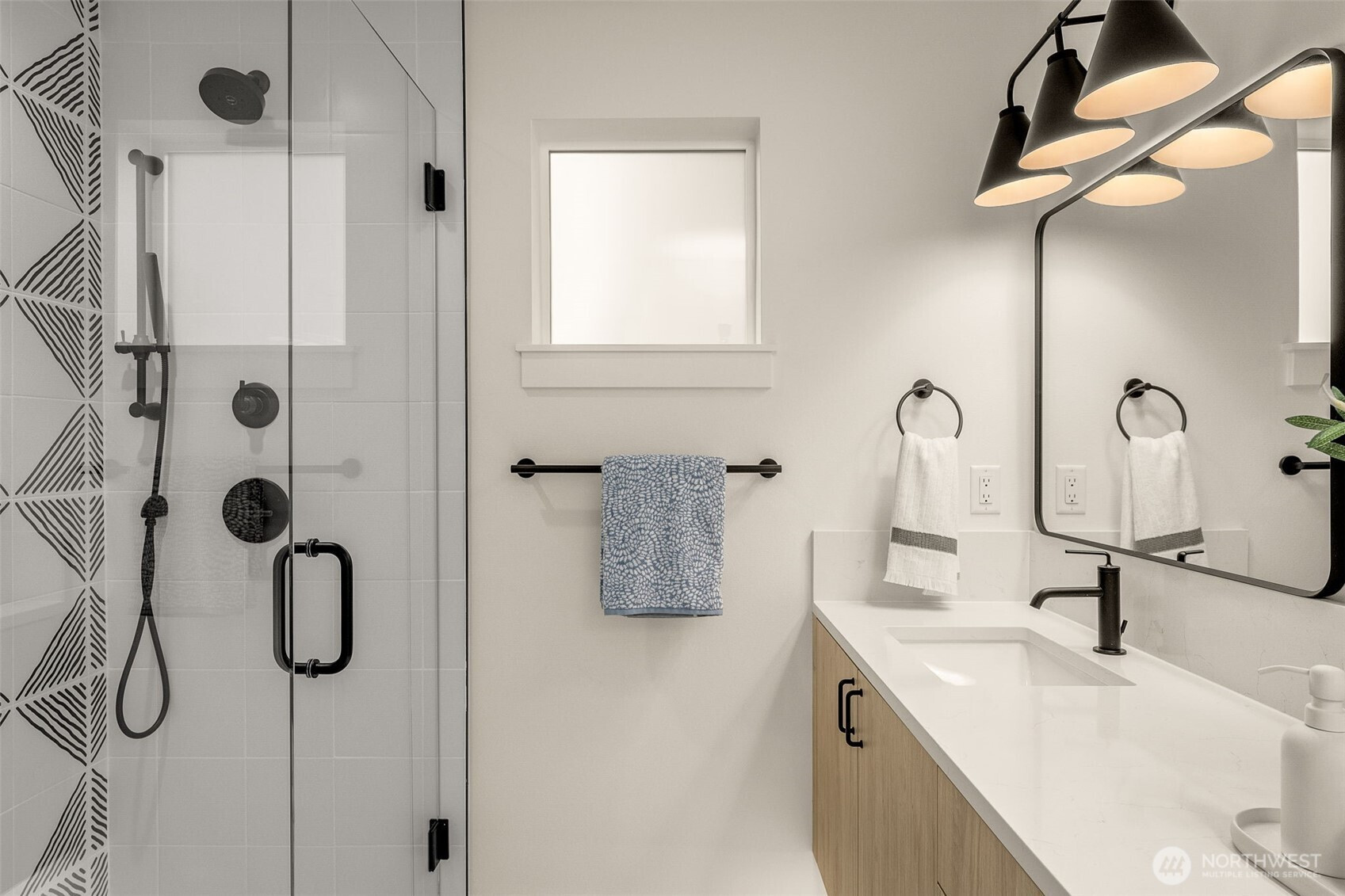 Welcome to Ashwood Place, a boutique three-home community in Seattle’s sought-after Ravenna neighborhood. This beautifully designed new construction home offers a perfect blend of modern style, comfort, and functionality, with elevated finishes and clean, contemporary design throughout. The open-concept main level is filled with natural light and features a designer kitchen with sleek cabinetry, quartz countertops, and premium appliances, seamlessly flowing into the living and dining areas for effortless entertaining. High ceilings and expansive windows enhance the bright, airy feel, while thoughtful layout design maximizes both space and livability. Lower level has two additional bedrooms that provide flexibility for guests, work-from-home needs, or additional living space. The primary suite on the main level serves as a private retreat with a spa-inspired bath and a spacious walk-in closet. Enjoy a fully fenced yard and private outdoor space, ideal for relaxing, pets, or hosting gatherings. Other highlights include an EV ready 1-car garage, quality craftsmanship, energy-efficient systems, and low-maintenance living designed for today’s lifestyle. Ideally located near Ravenna Park, University Village, Green Lake, and neighborhood cafés, with convenient access to the University of Washington, Light Rail, and major commuter routes.