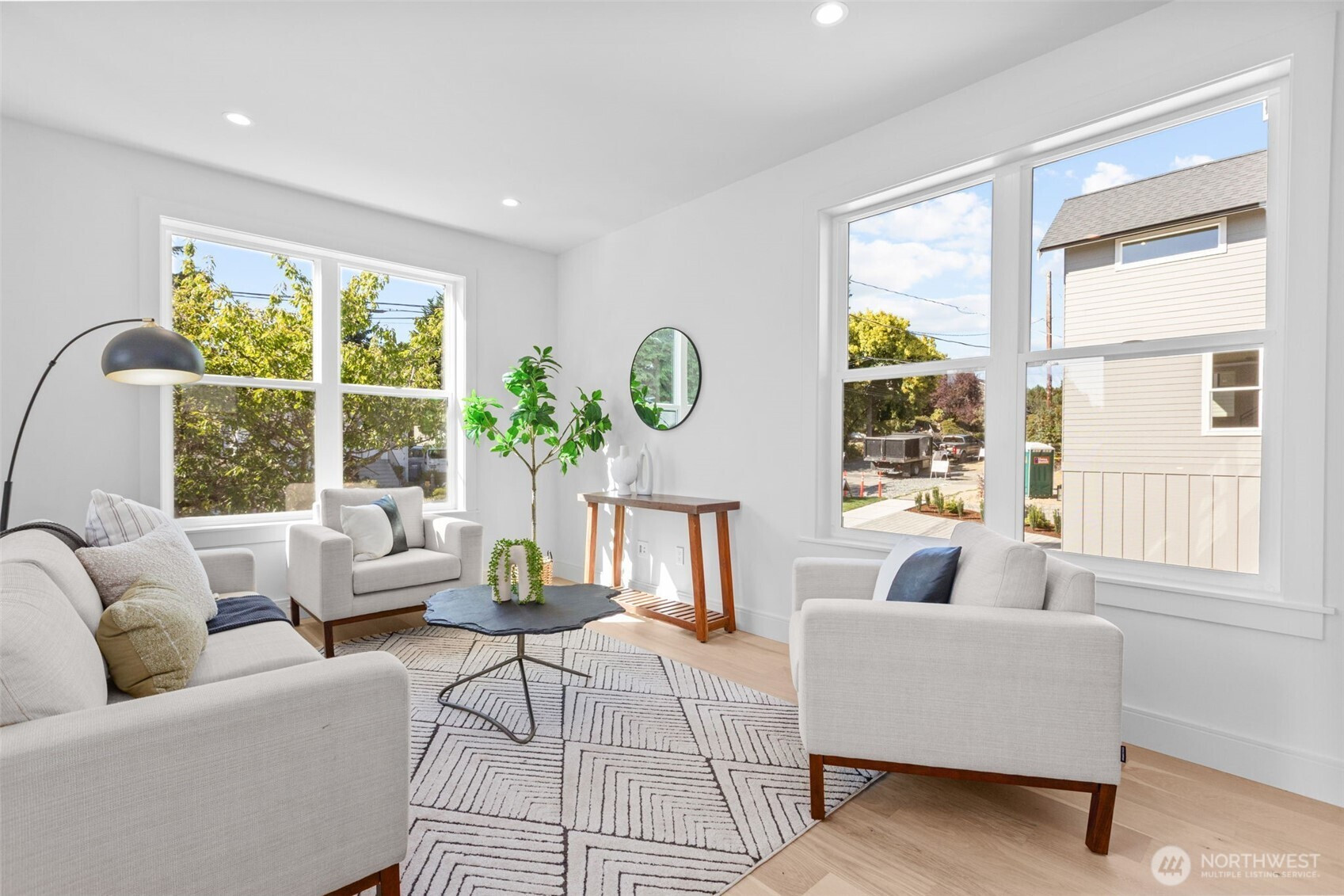 Just steps from the beloved Loyal Heights Park, this 3 bedroom, 3.25 bath home with an oversized garage showcases exceptional build quality and a bright, functional layout tailored for modern living. The chef’s kitchen stands out with high-end finishes, a 36" range, & large pantry offering plenty of space to create & entertain. Natural light pours into every room, accentuating the thoughtful design throughout. The primary suite is a true retreat with dual sinks and a full walk-in shower that feels like a private spa. With ample storage and parking, while a private deck invites relaxation and outdoor living. All of this in a quiet neighborhood, yet only minutes from Ballard’s vibrant shops, restaurants, and nightlife. This could be the one! **Photos are of similar unit**