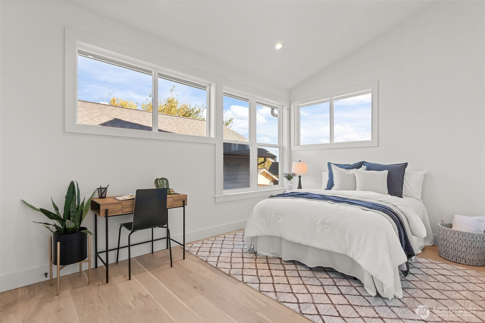Nestled just steps from Loyal Heights Playfield, this charming 2 bed, 1.5 bath home welcomes you with warmth, light, and thoughtful design. The open-concept main floor features a stunning chef’s kitchen with a 36" range, oversized island, and elegant finishes—perfect for cooking, entertaining, or simply gathering with friends. Natural light pours through large windows, enhancing the bright, airy feel throughout. Upstairs, vaulted ceilings add space and serenity to both bedrooms. A cozy deck invites moments of relaxation year-round. With dedicated parking, 1,066 sq ft of smartly used space, and proximity to Ballard’s favorite coffee shops, restaurants and parks, this home blends modern comfort with neighborhood charm.