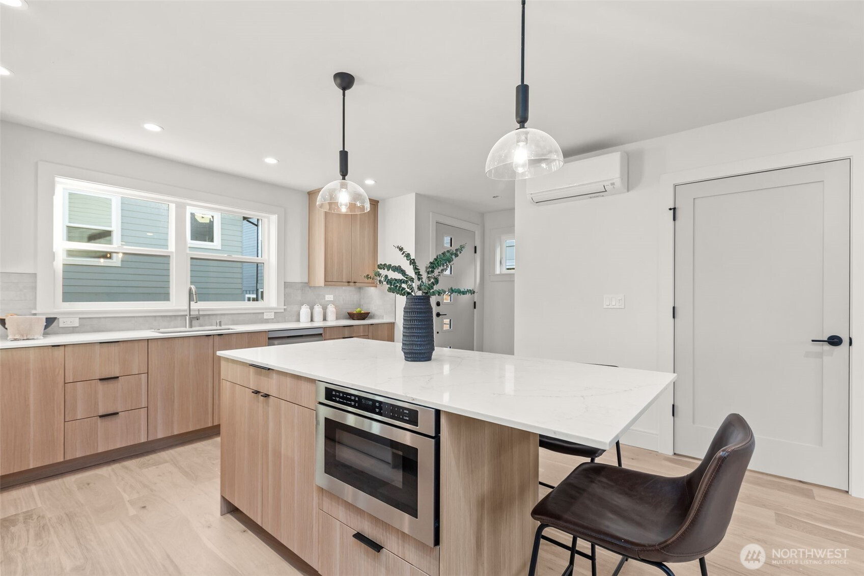 The perfect fit in Loyal Heights! This new construction home showcases exceptional quality and craftsmanship throughout. The open-concept design highlights stunning finishes and a functional layout that naturally flows from room to room. The luxurious 36" range and oversized center island will elevate your time spent in the kitchen, while the inviting living room will create a cozy gathering place for all. The yard & patio provide the perfect setting for year-round outdoor entertaining. With 1047sf across two stories this home features: 2 bed 1.5 bath, dedicated parking & steps from Loyal Heights Playfield. This quiet & friendly neighborhood offers both privacy & a sense of community with easy access to everything Ballard has to offer.