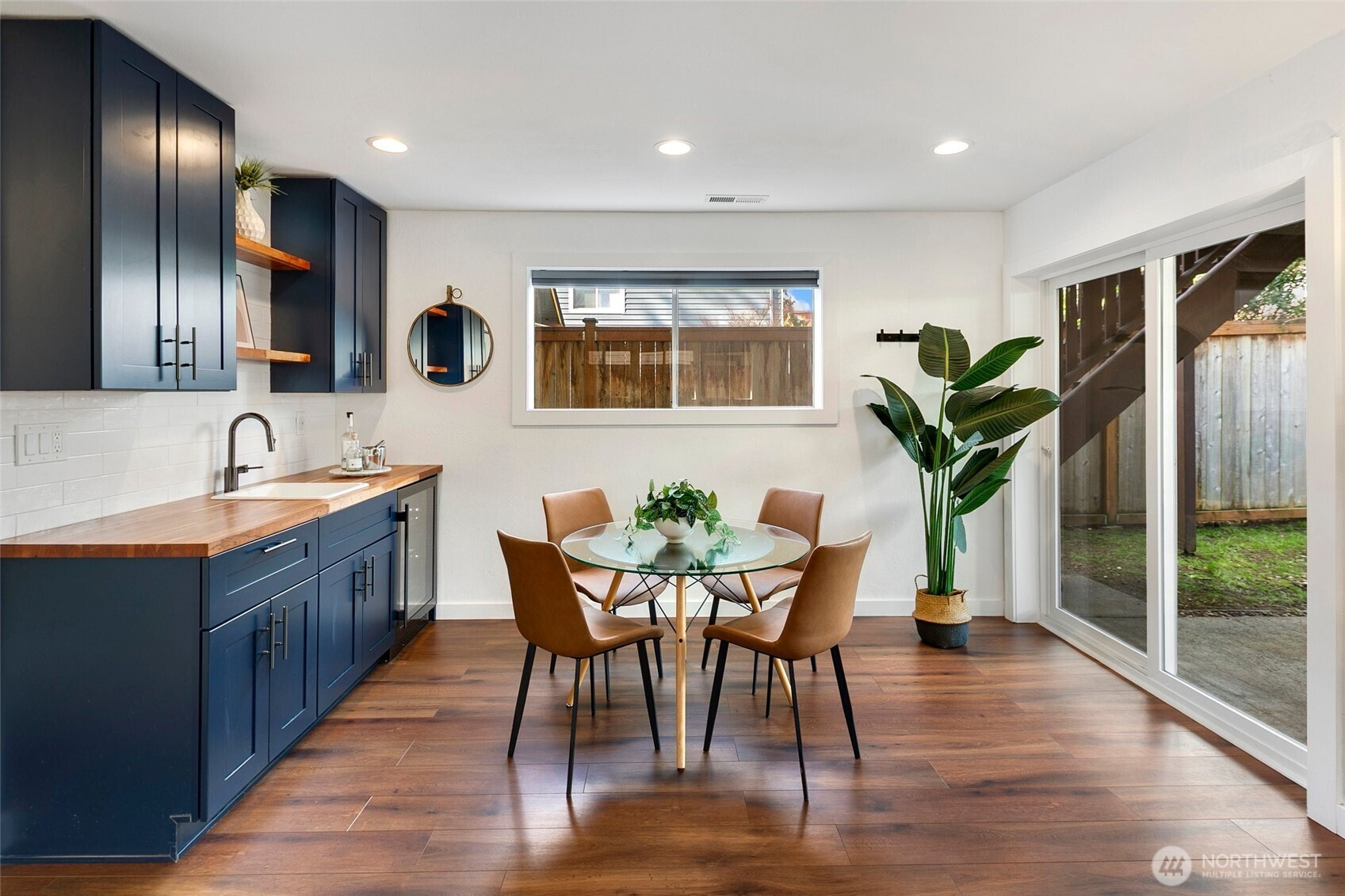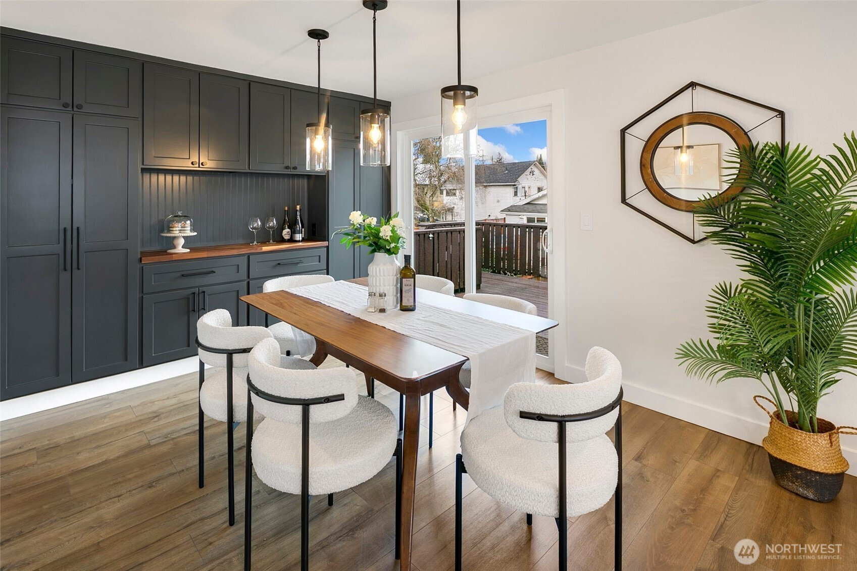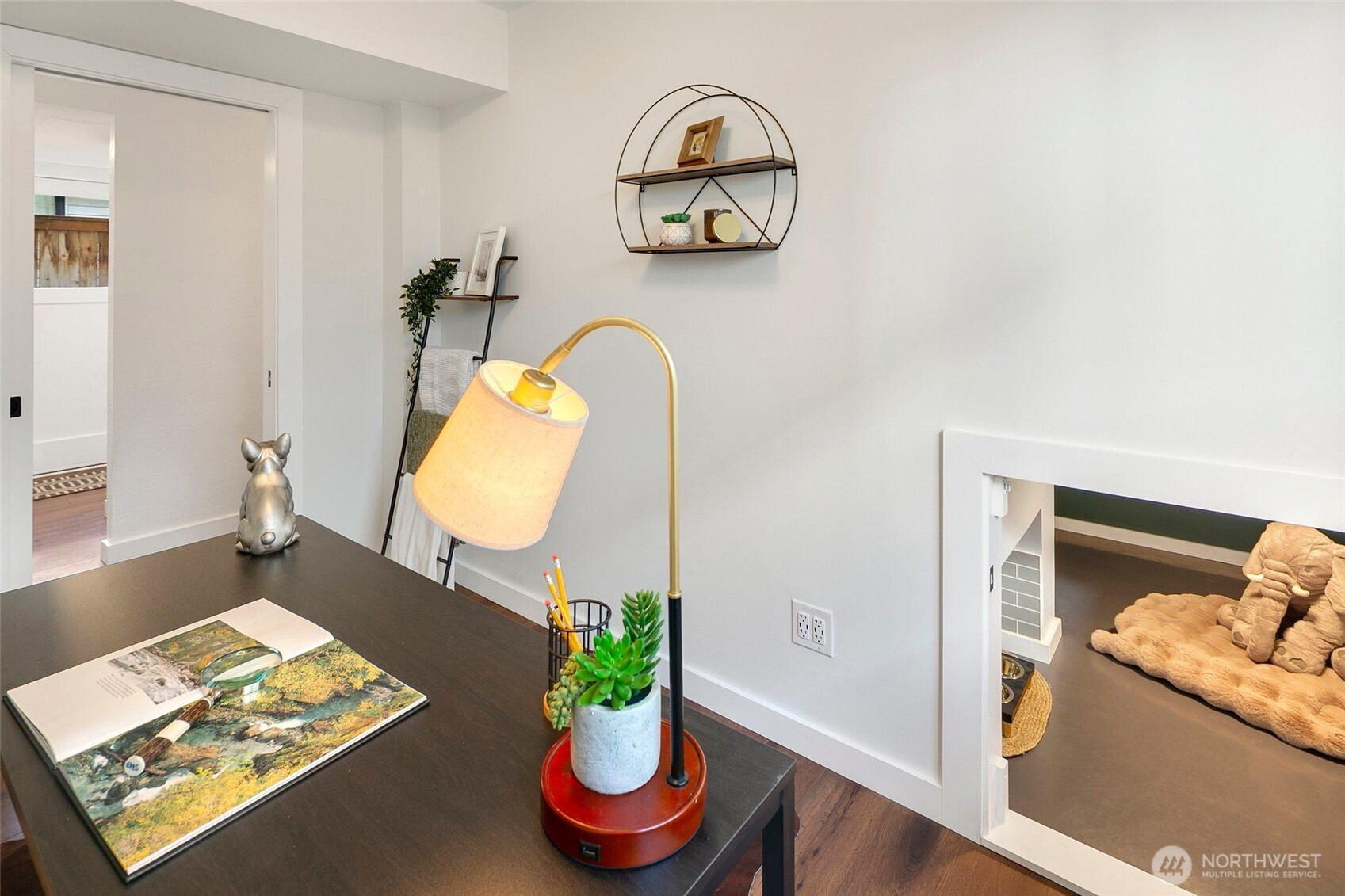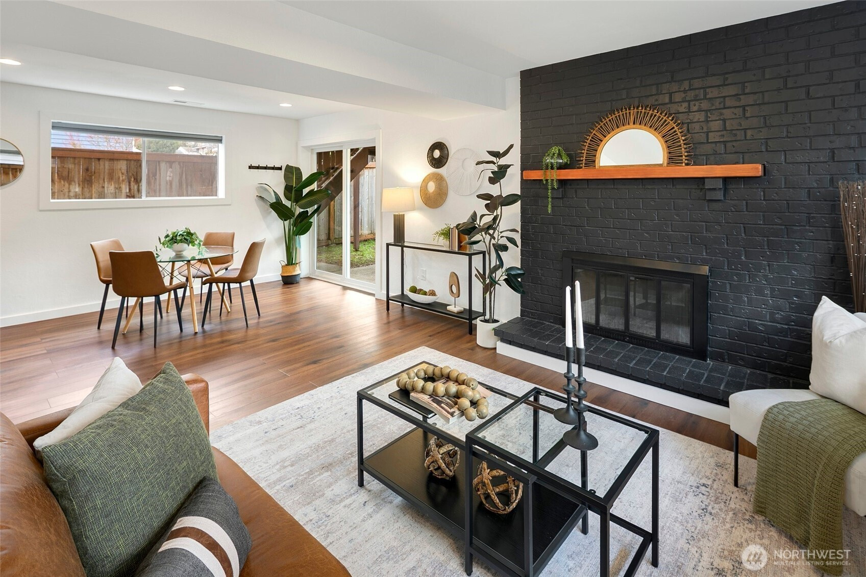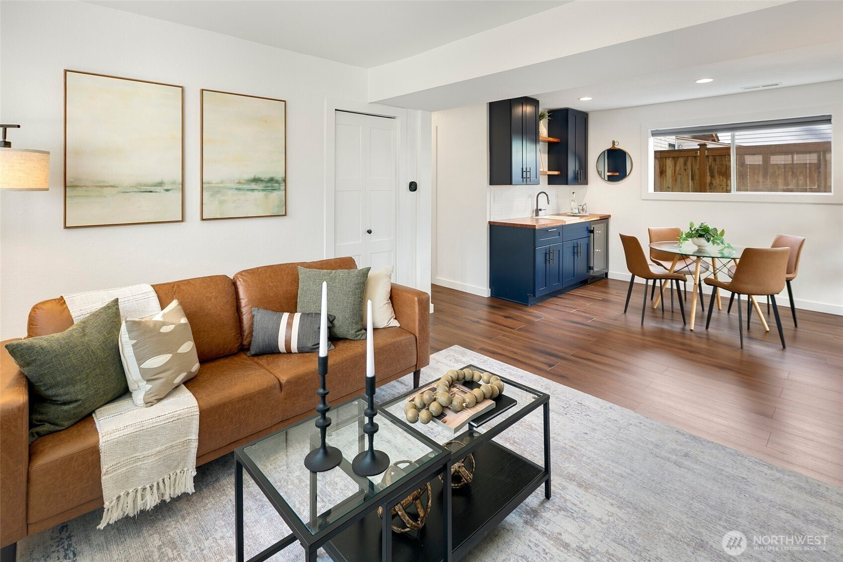 Reimagined Greenwood beauty with designer-level finishes throughout. Sun-drenched interiors and warm wide-plank flooring set the tone, while a striking statement fireplace anchors the main living space. The updated kitchen shines with crisp white cabinetry, stainless appliances, open shelving, and stylish accents that blend modern elegance with everyday functionality. Three bedrooms and two beautifully refreshed bathrooms on the main level include a serene primary suite with en-suite bath. The lower level offers exceptional versatility with a spacious rec room featuring a dramatic second fireplace, custom navy wet bar with wood counters, and built-in shelving, ideal for entertaining, guests, or multi-generational living. A dedicated office and additional bath complete the space. Step outside to a charming back deck and fully fenced yard, perfect for gatherings or quiet mornings. A massive two-car garage provides abundant storage and convenience. All just minutes to Green Lake, Trader Joe’s, parks, and the vibrant dining scene that makes Greenwood so loved.